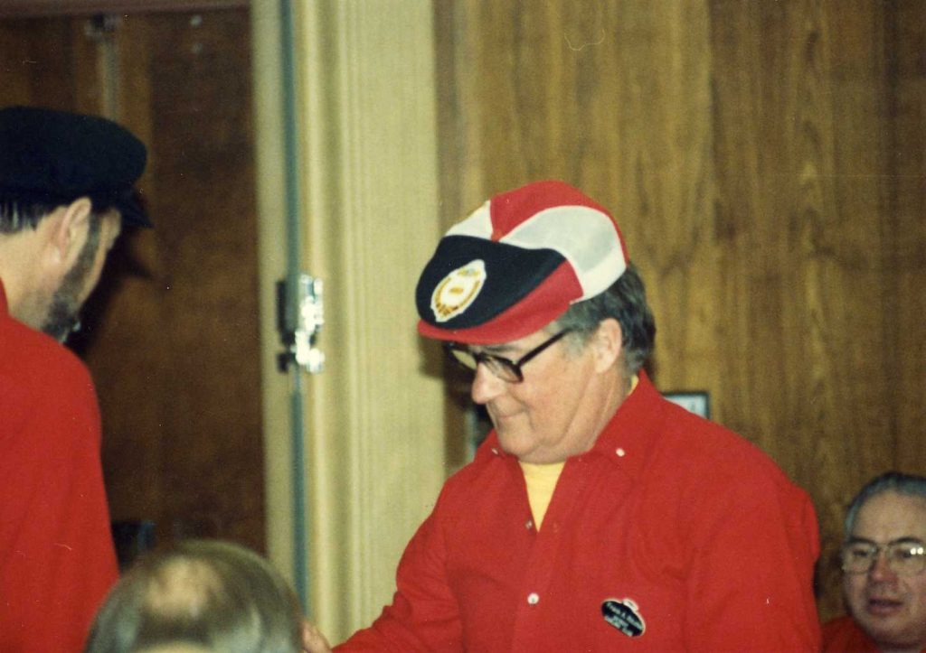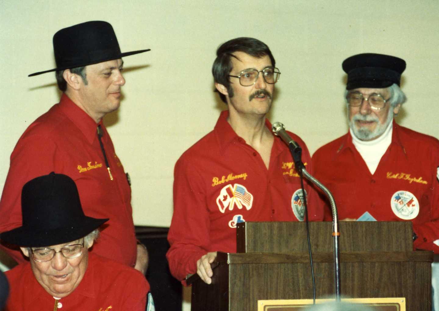 The rules committee reviews the weekend’s infractions. Seated is Vince Scherer. Standing: Don Fanstone (the Deacon), Bob Mooney and Carl Ingraham (the judge).