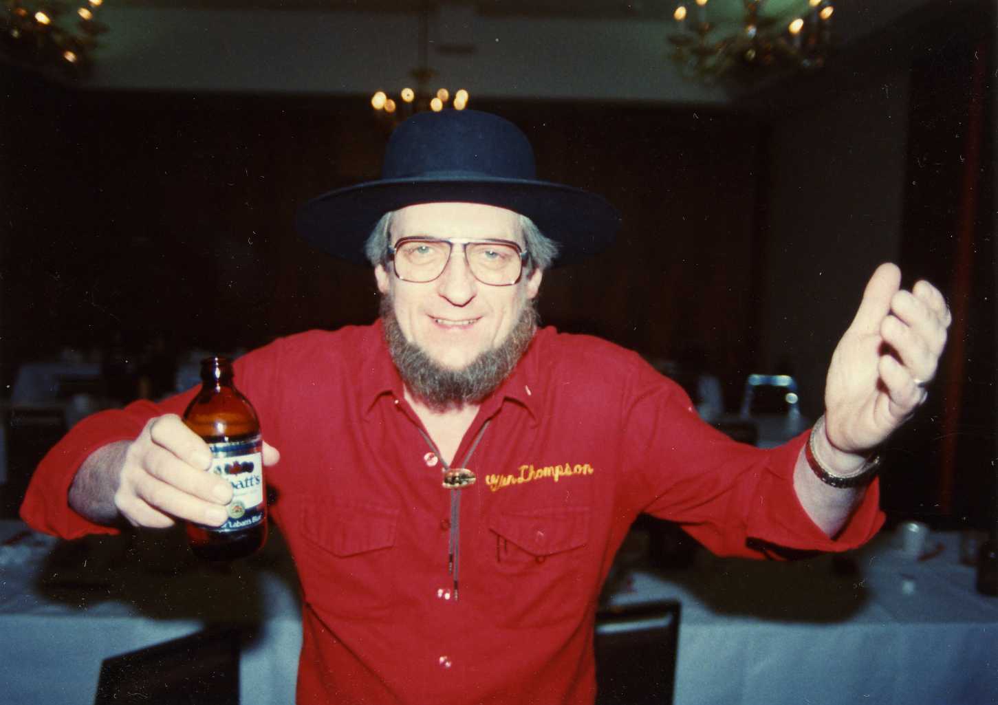 Glen Thompson of Detroit enjoying his Canadian beer. Note the stubby bottles which (alas) are no more.