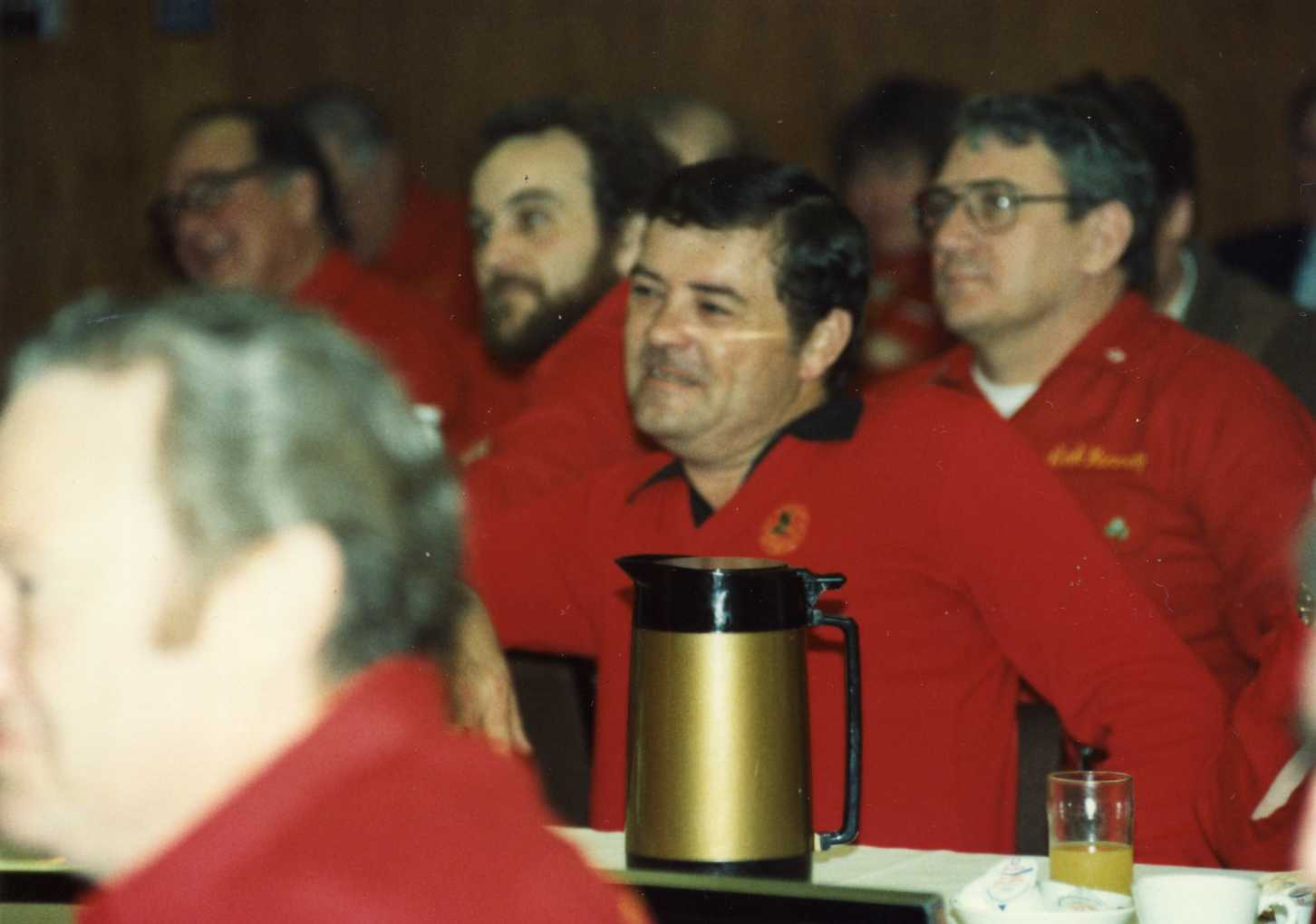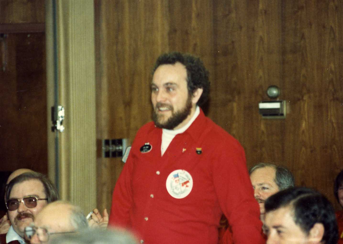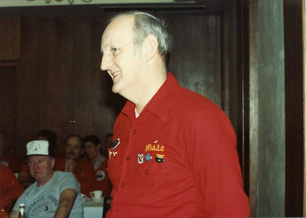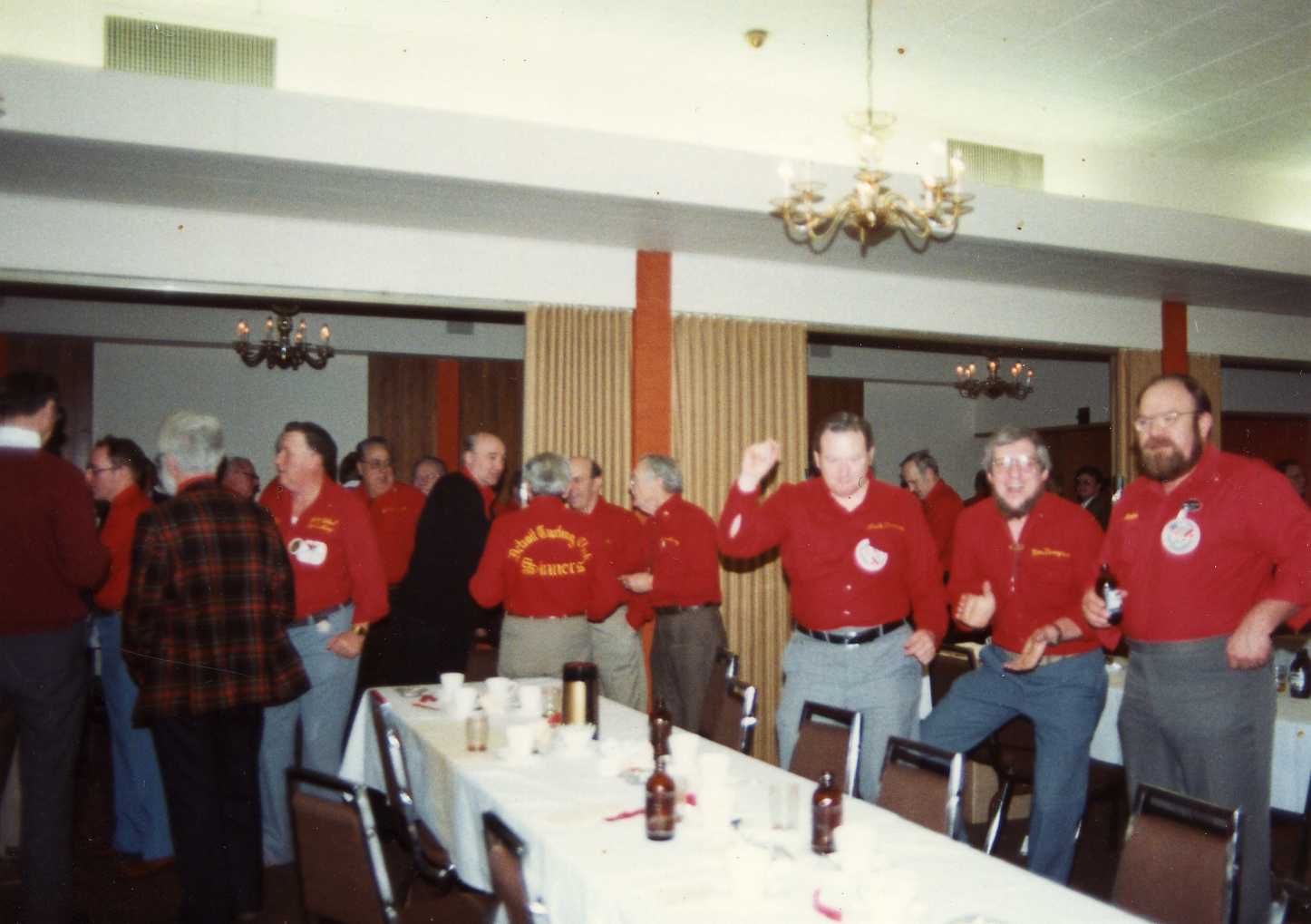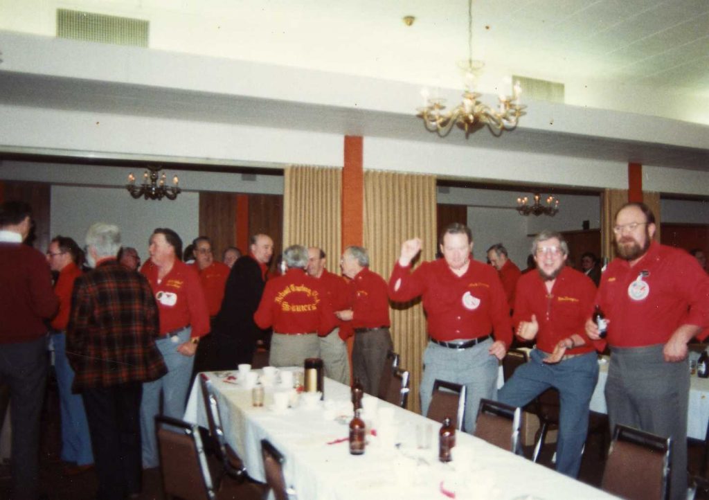 Joe and Ed Forwell are standing. From the bottom counterclockwise are: Will Oliver (back of his head), Dave Hesse, ?#1?, Bill Hess. (Mar 83)