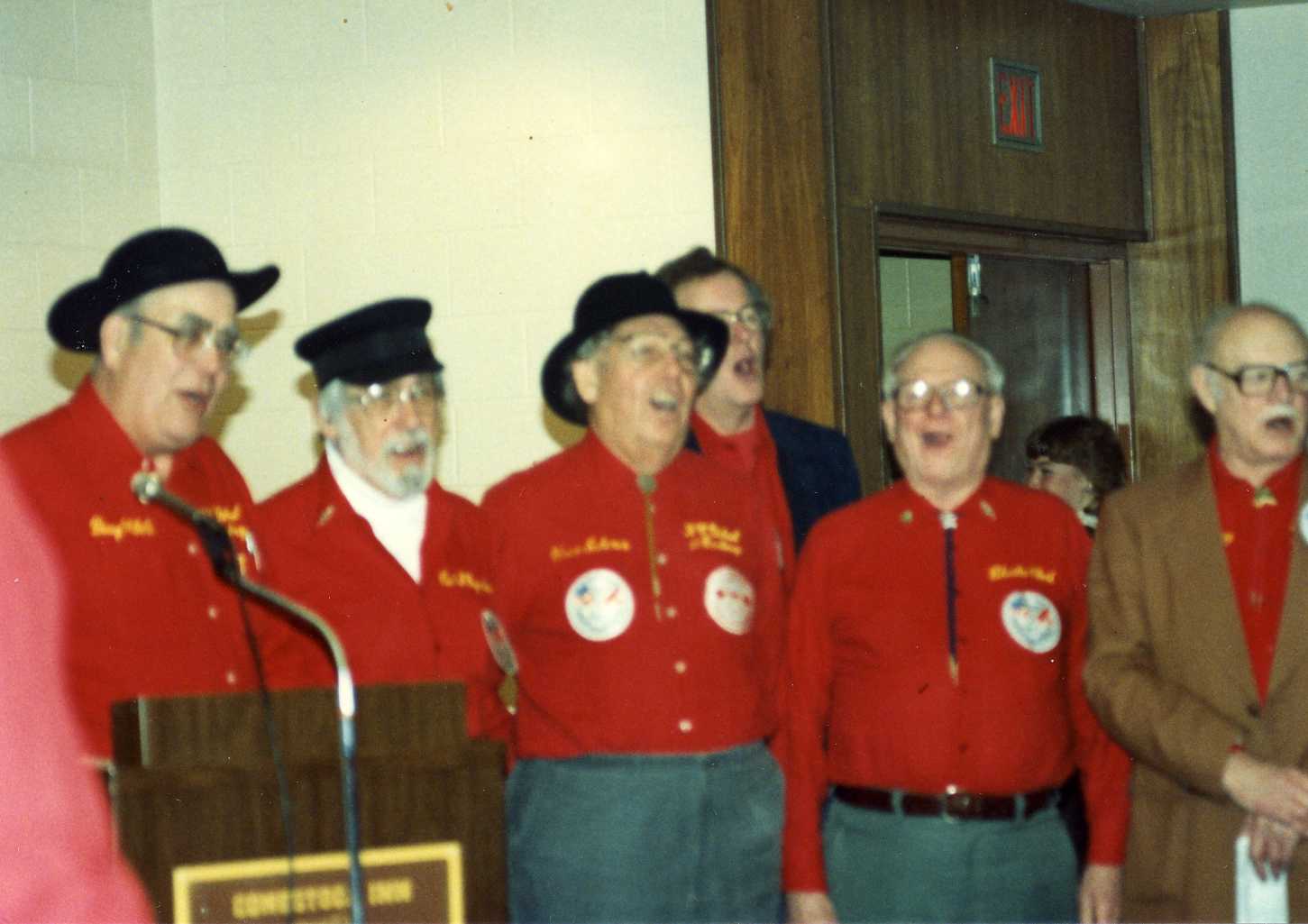 The choir sings “Softly & Tenderly”. Doug White, Carl Ingraham, Vince Scherer, Pat Bourke, Charlie Clark and Jack Blamey.