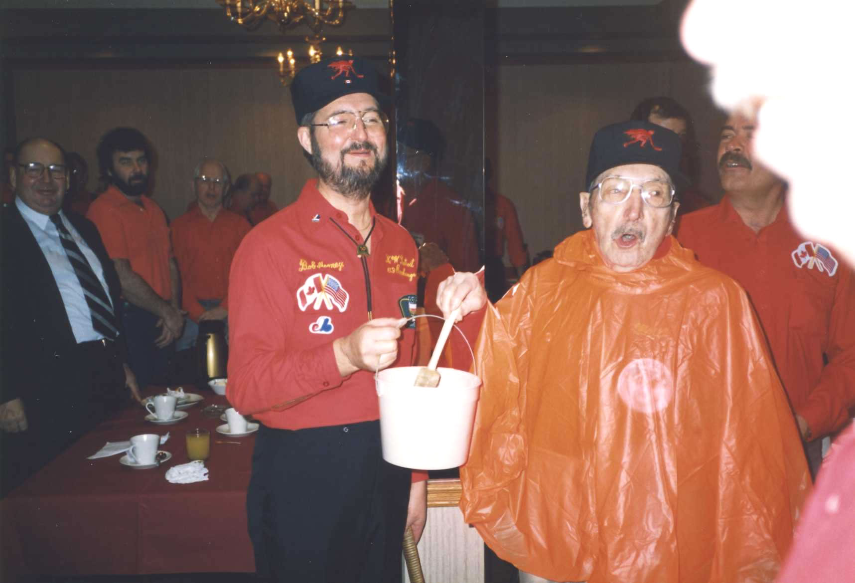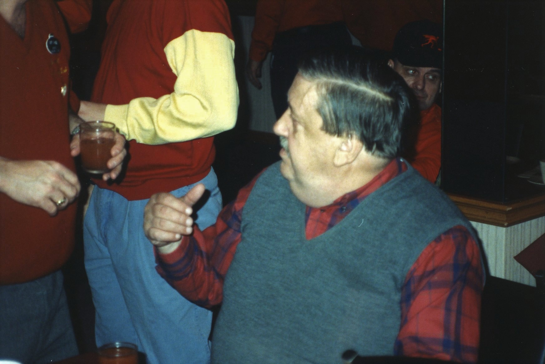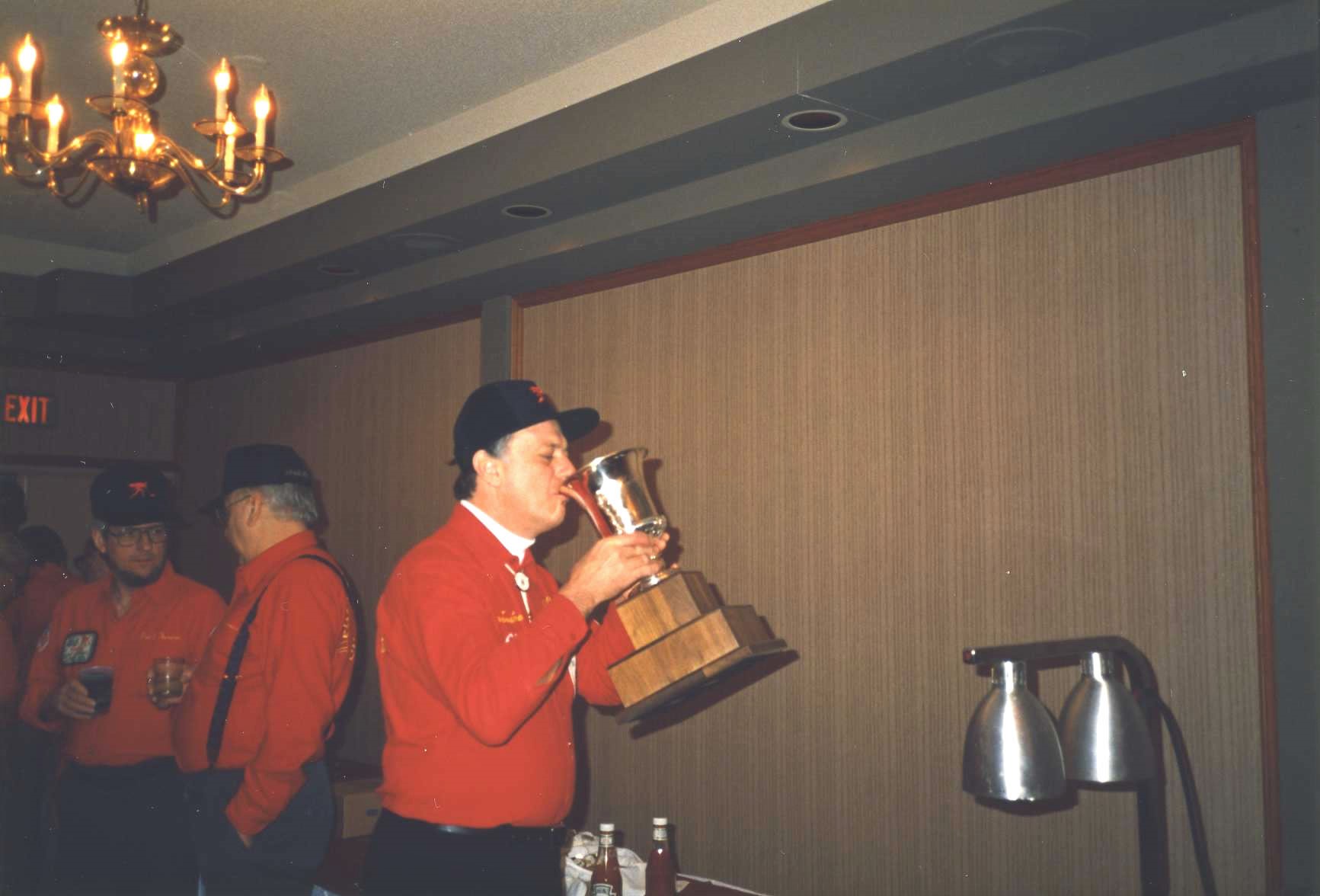 Don Fanstone drinks a toast in memory of Vince Scherer.