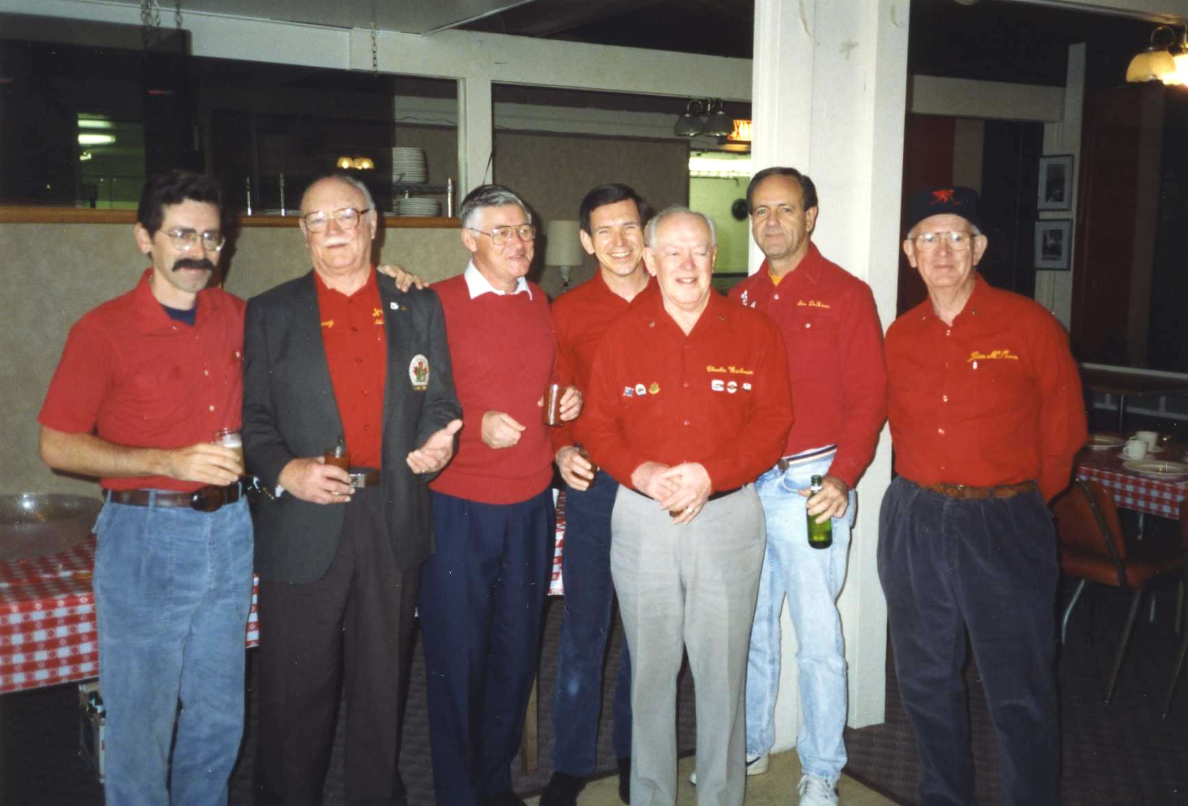 Carl Ingraham leads the choir: Joe Livermore, Carl, Gene Bauer, Bob Ireland, Earl Campbell, Alex Murray and Charlie Clark.
