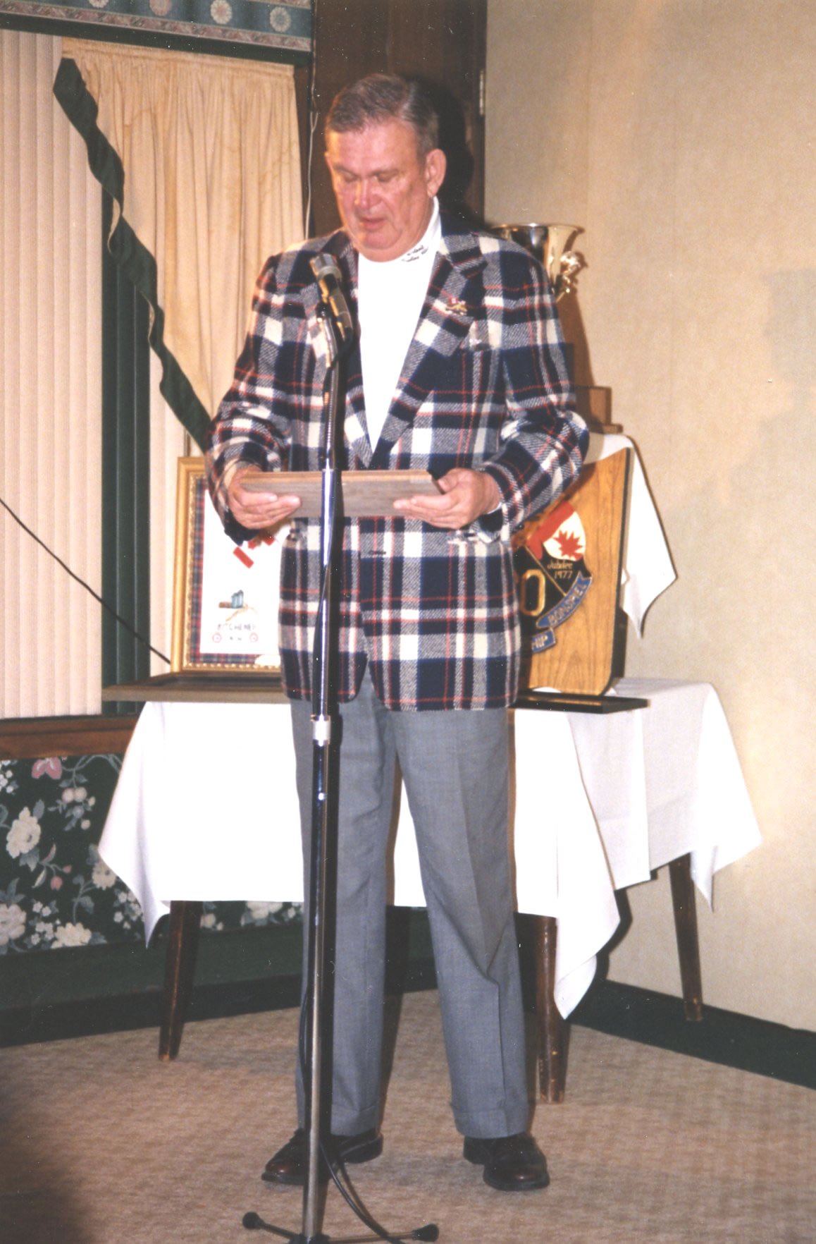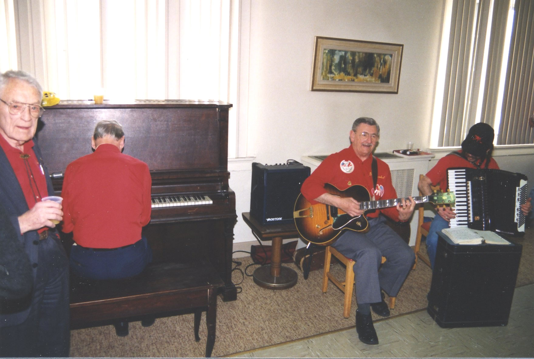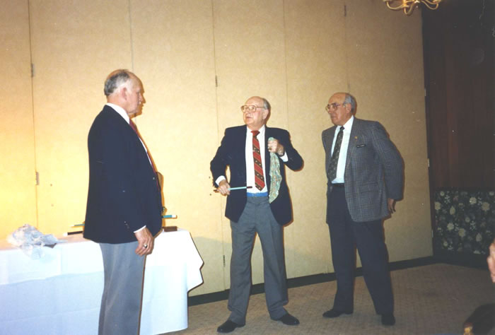 The band provides some background music. Cec Brodeur is on the piano, Don Reinhardt on the guitar with Gary Kreller on the accordian. Alex Murray is watching on the left.75th – March 1993