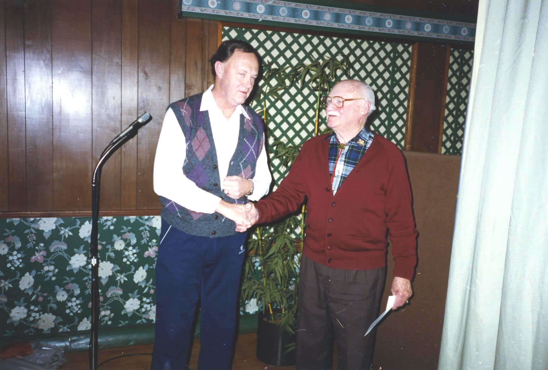 Ron Shane thanking Jack Blamey for his long years of dedication to the Exchange.