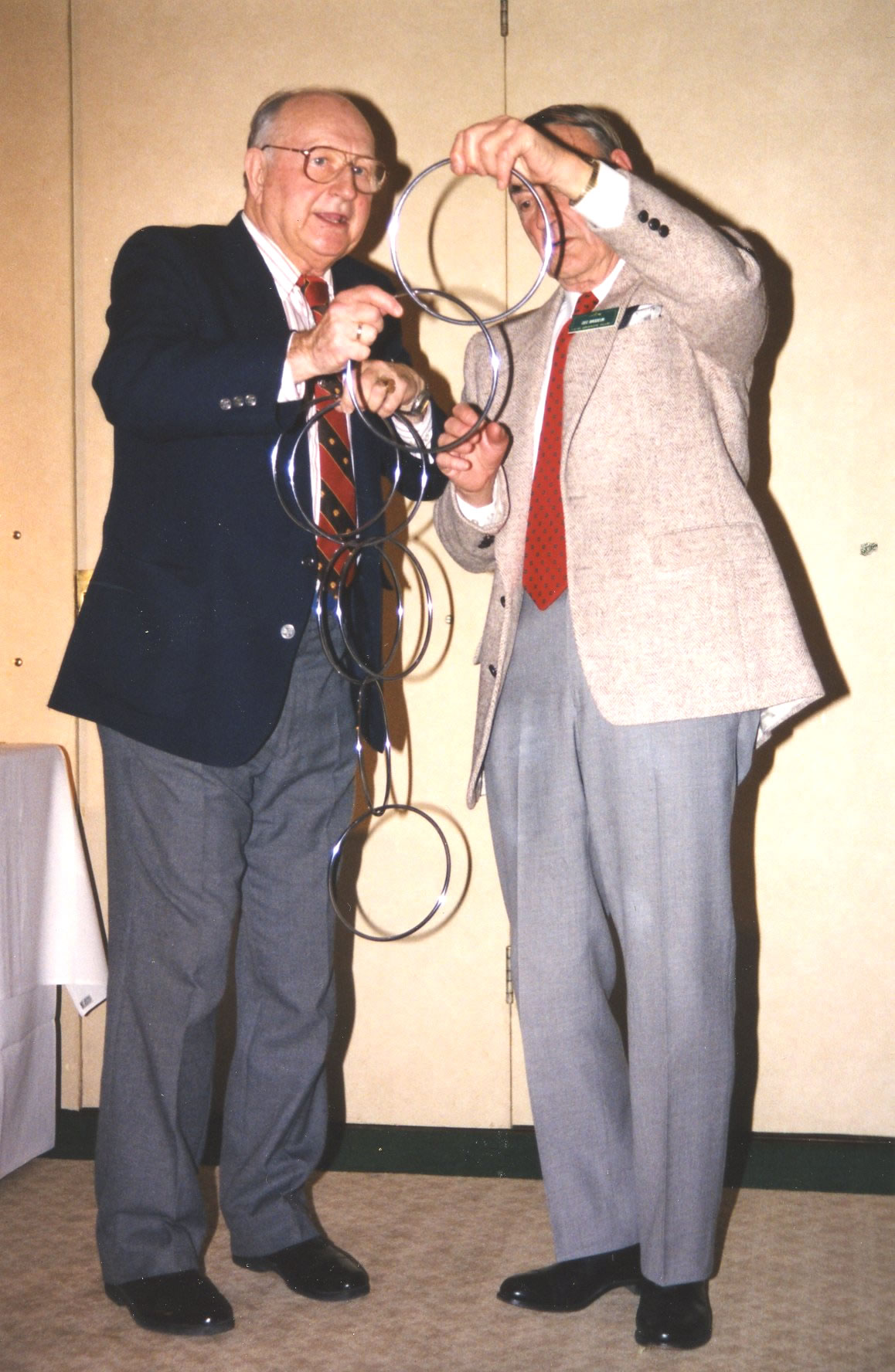 Here the magician is showing Cec Brodeur how to unlink the rings.75th – March 1993