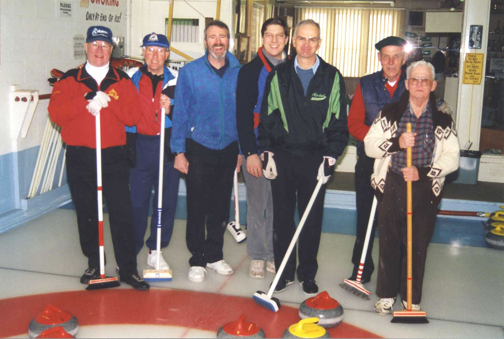 Gord McConnell, Bill Kennedy, Paul Badjero, ?#6?, Gord Lemon, Jim Smith and Merle Huss.