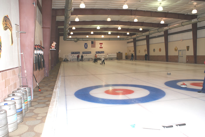 A view of the 4 bright sheets at the Detroit Curling Club.