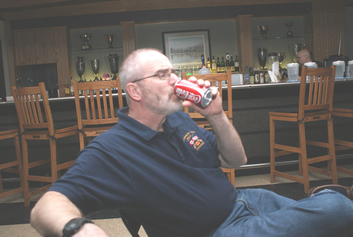 Mike Rogala was the master mixster for sinner’s breakfast. Leroy Bliven is holding down the bar.