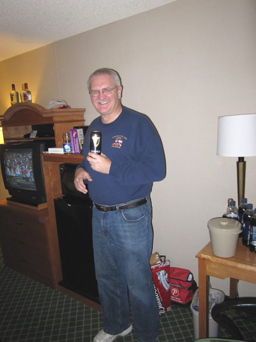Leroy Bliven presides over the Friday night hospitality at the hotel.
