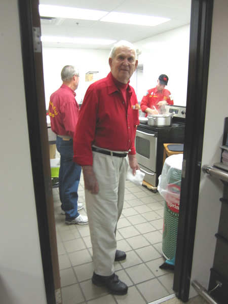 Ken Zryd taking a break from his kitchen duties at sinner’s breakfast on Sunday.