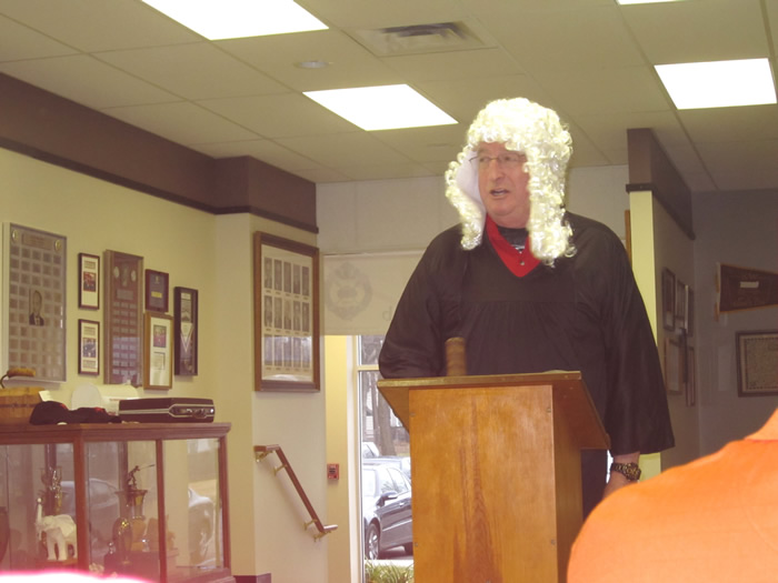The sherrif (Frank Duffey) sits back waiting for the judge to levy fines appropriate to the misdemeandours.