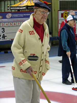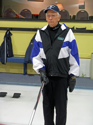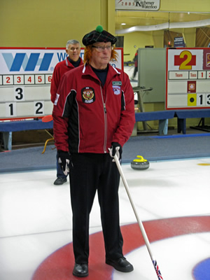 Jim Morris smiles after running from the Heidelberg Hotel to the Granite Club. Unfortunately, he missed a turn and ran all the way to Victoria Street before getting directions back to the club. He was a few minutes late for the curling!