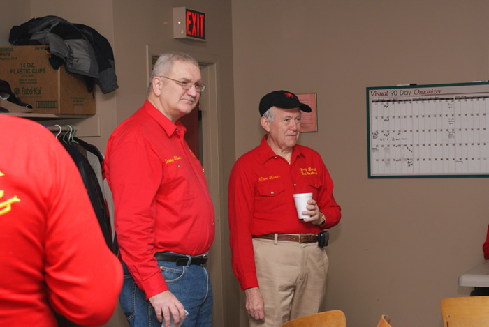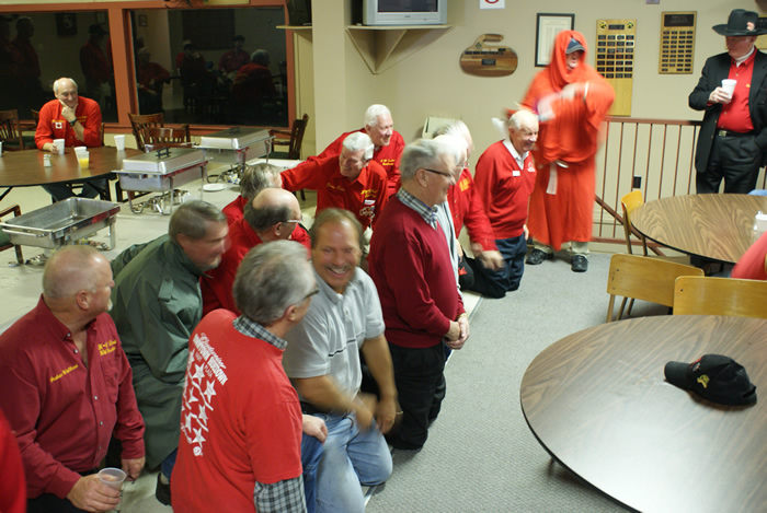Another picture of the initiation: In the front row are the new members: Doug Adams, Kevin Bradley, Ed Ferguson, Pete Sylvain (partial), Paul Carter (partial), Gerry Dolff.