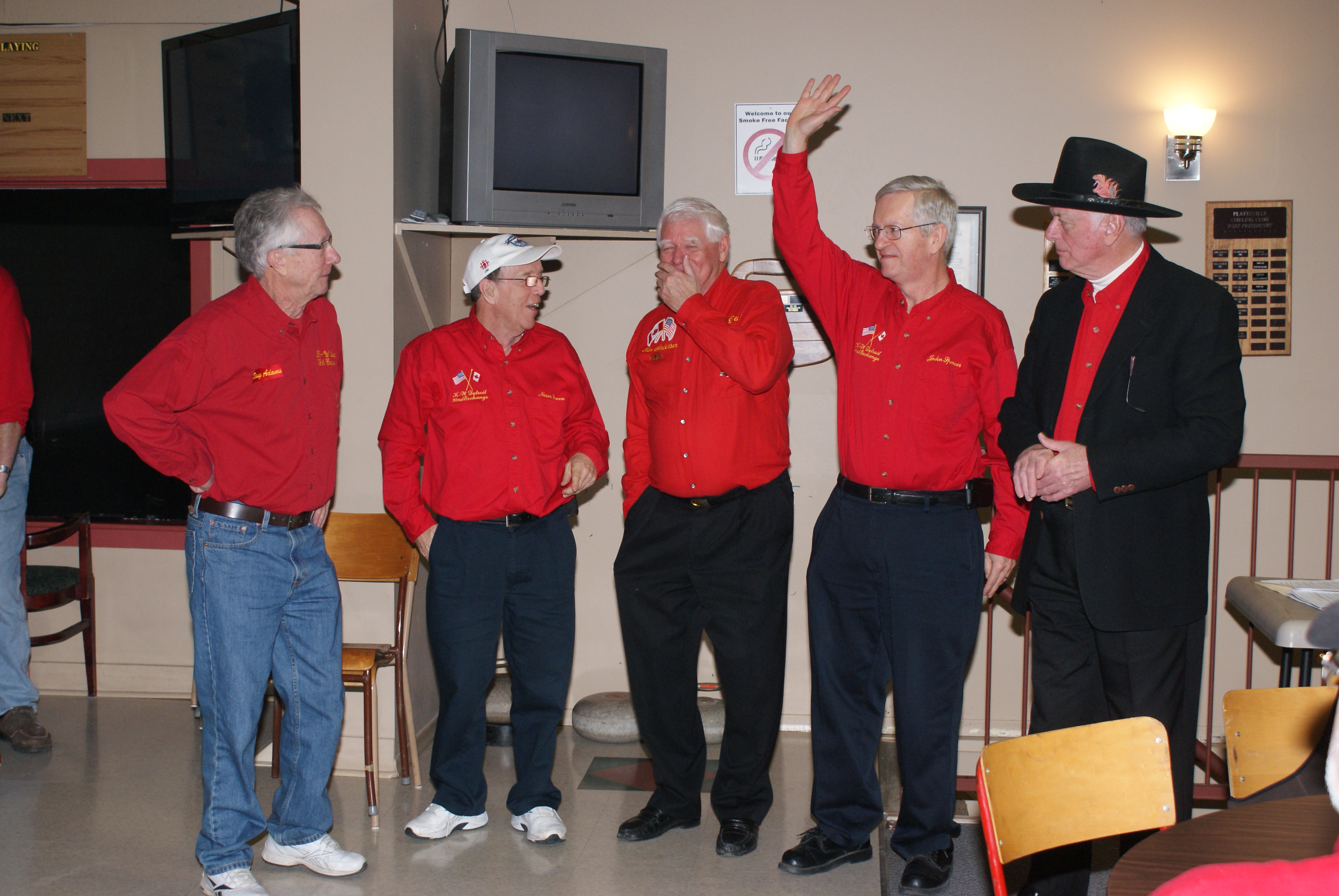 Doug Adams, Norm Green, Ian Anderson and John Spencer (with hand up) before the deacon Don Fanstone. Whatever these guys did, it seems that John was the ring leader!