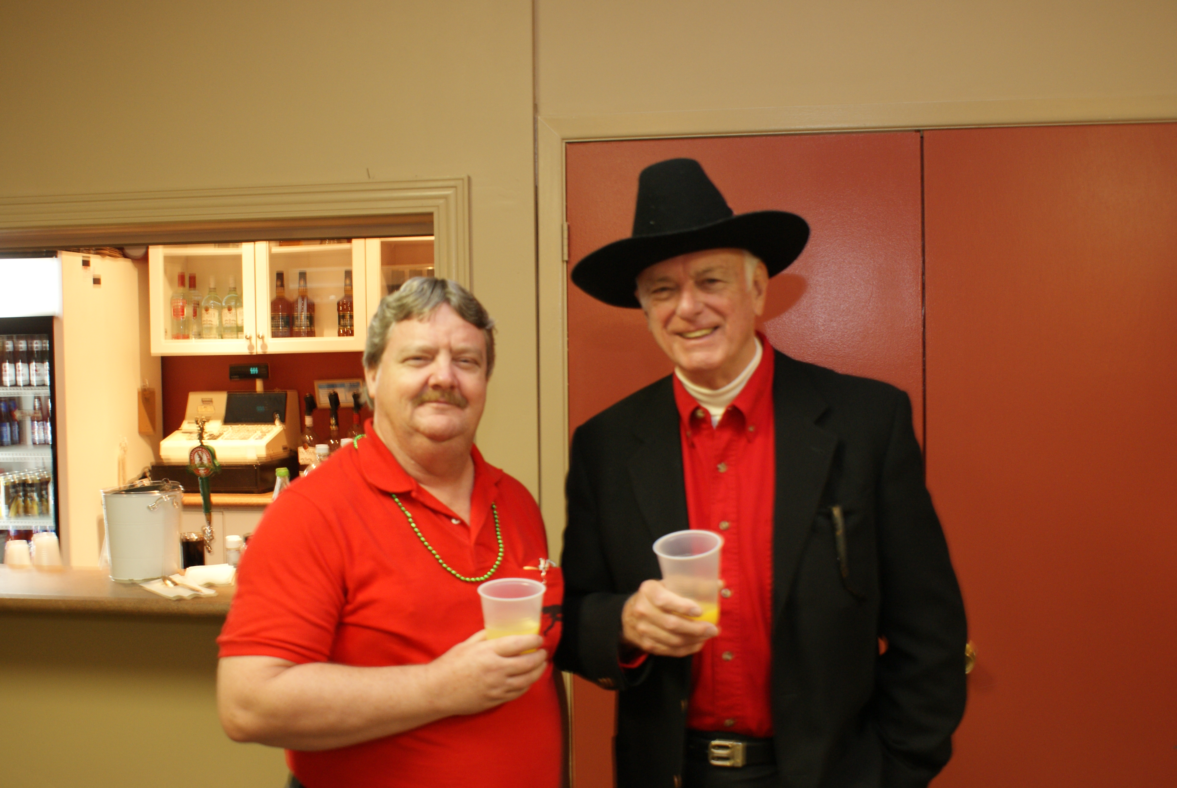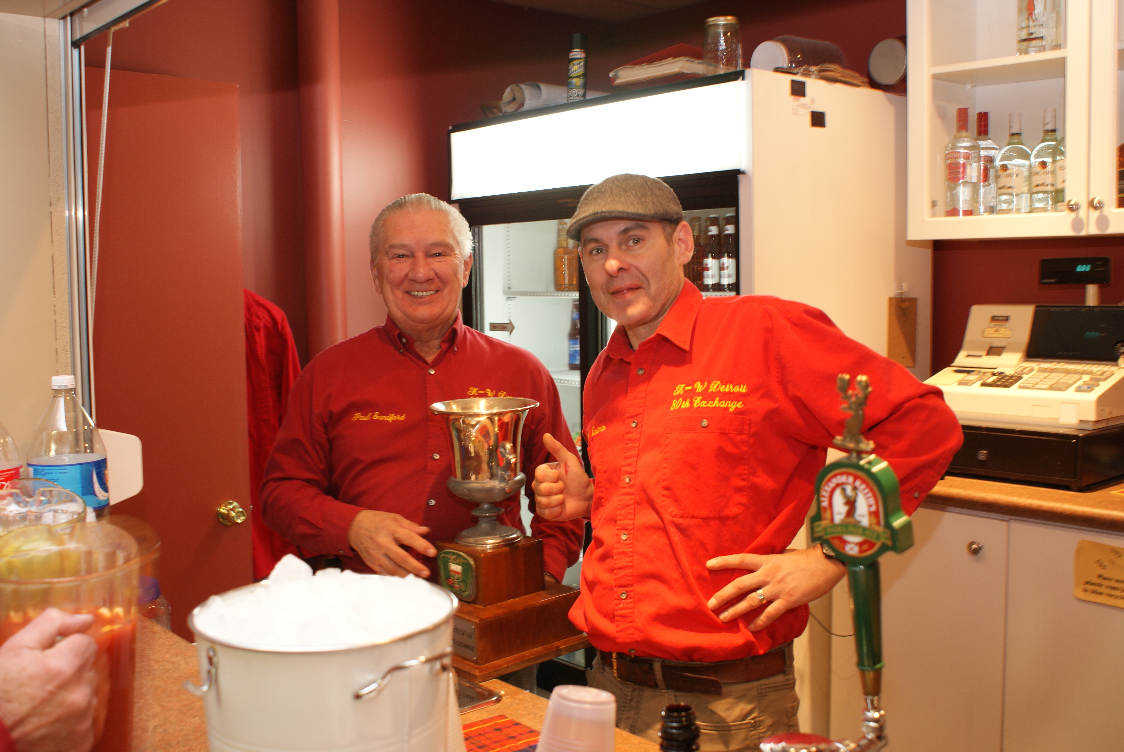 Paul Sandford and Frank Quinto prepare the drink to fill the Vince Scherer memorial trophy.