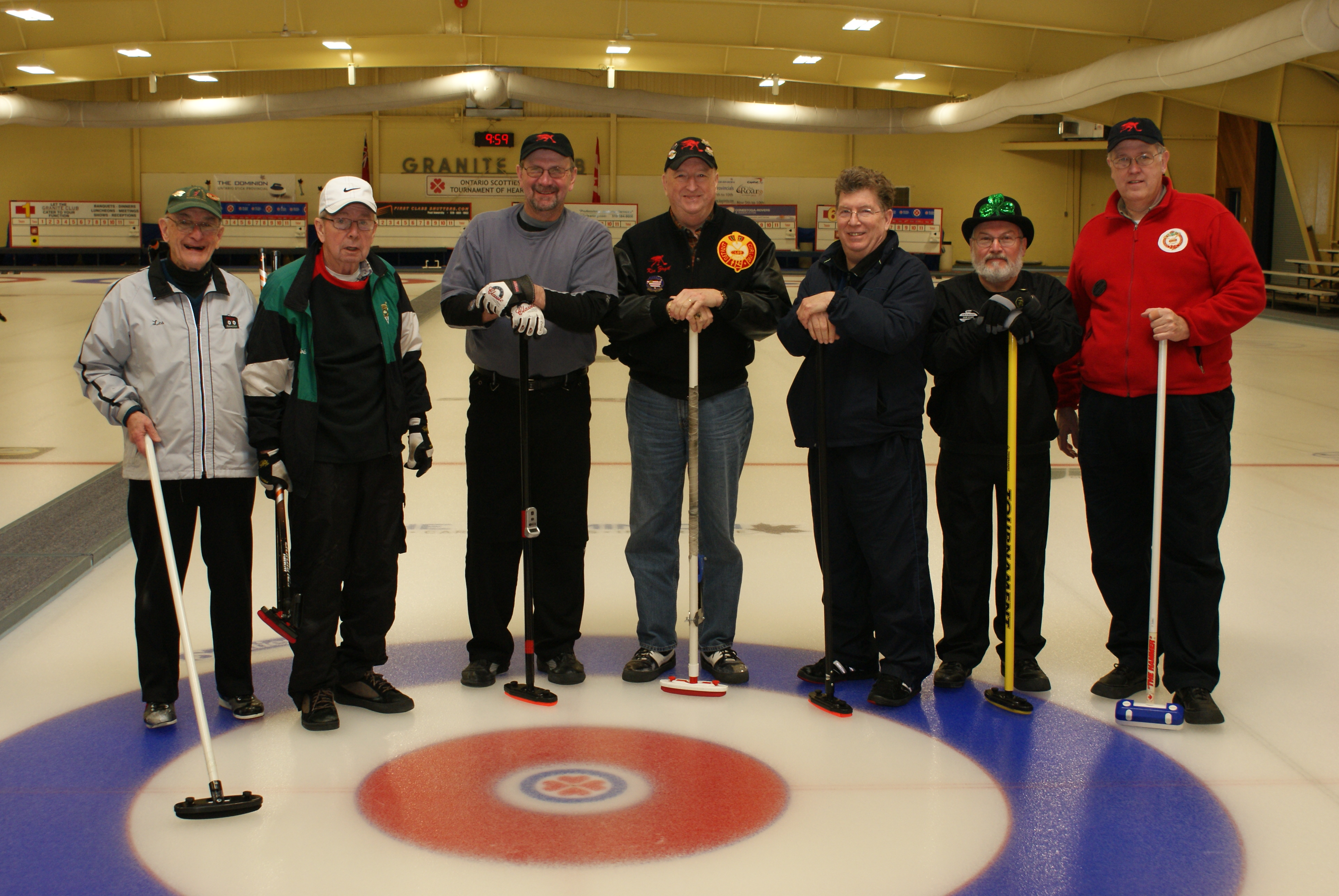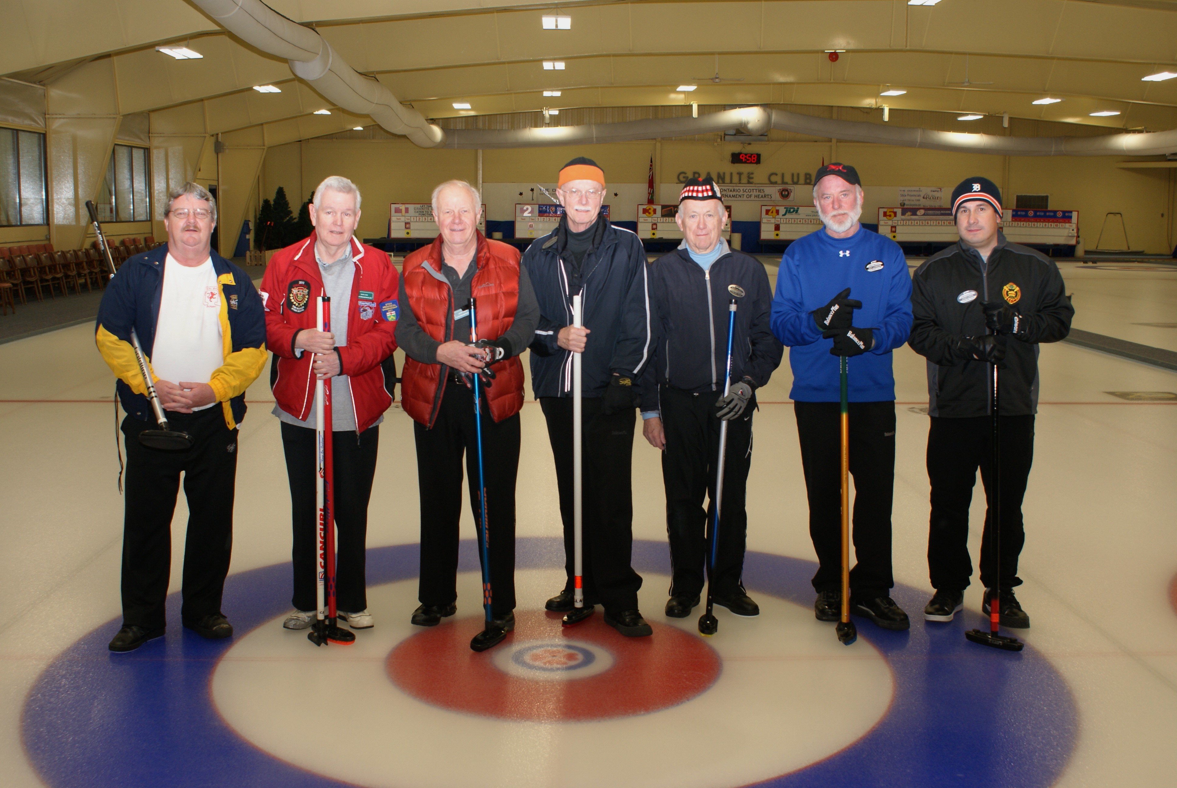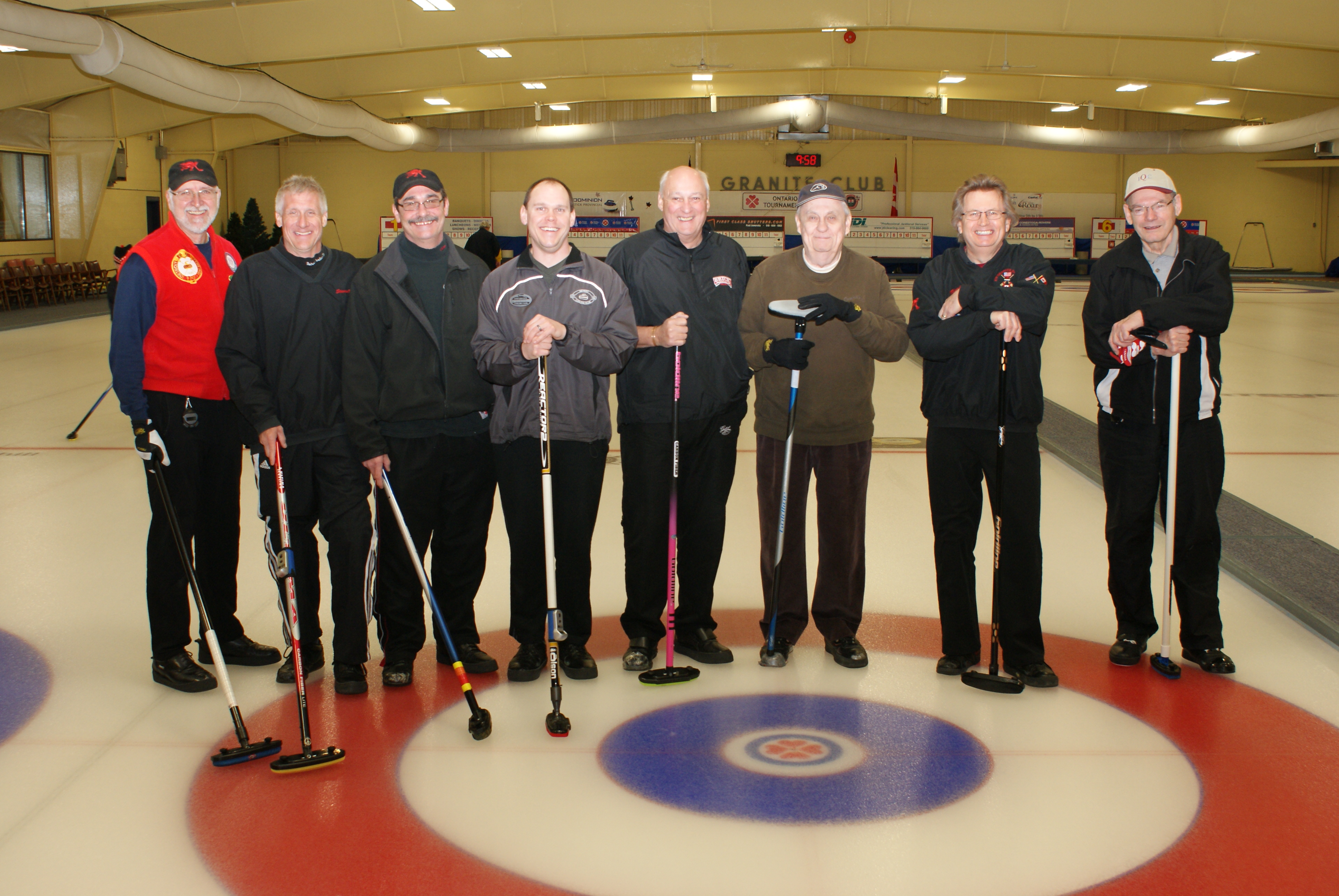A few of the new curlers showing a wide variety of dress codes. Apparently, only Keith MacKenzie got the email about what we were supposed to be wearing.