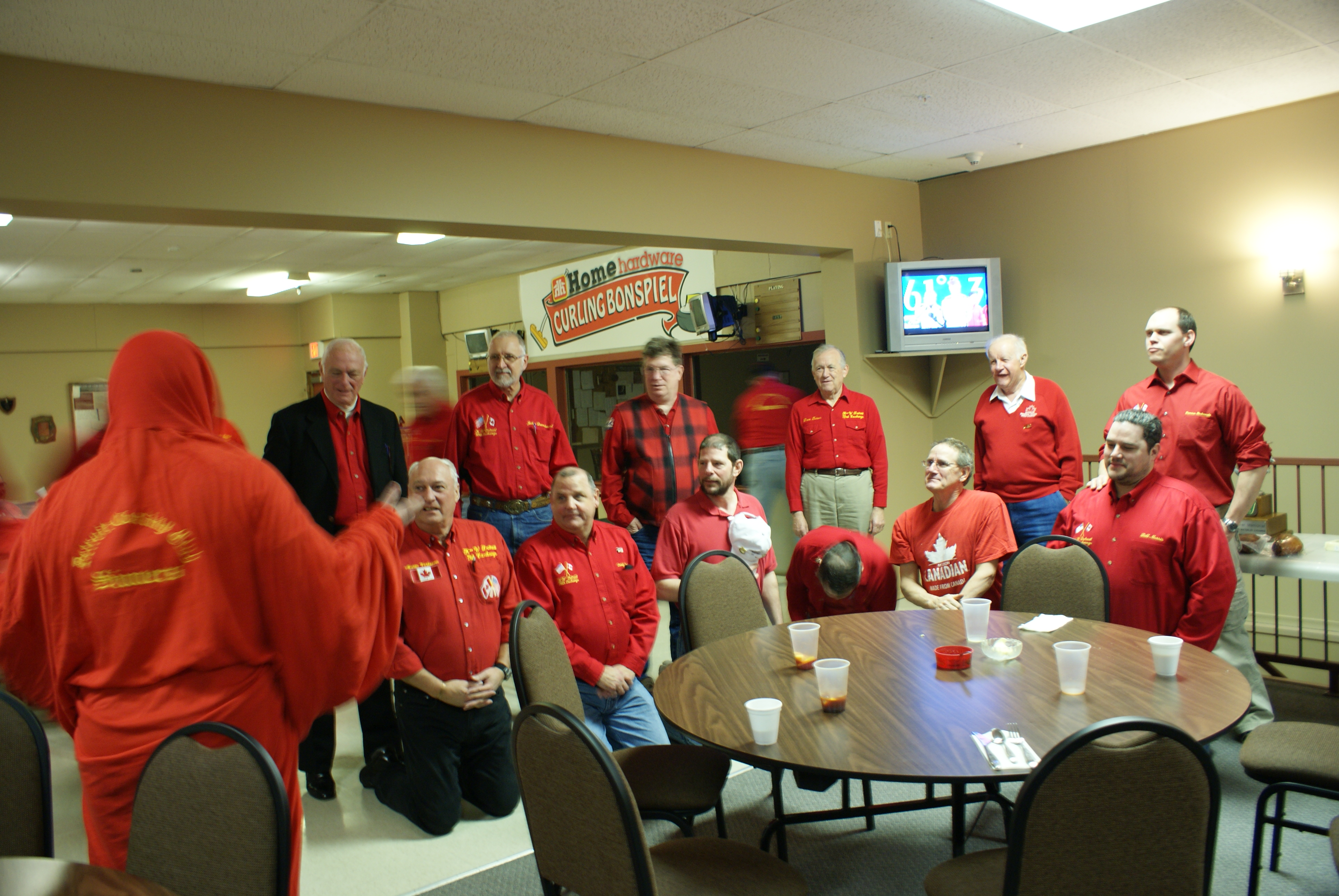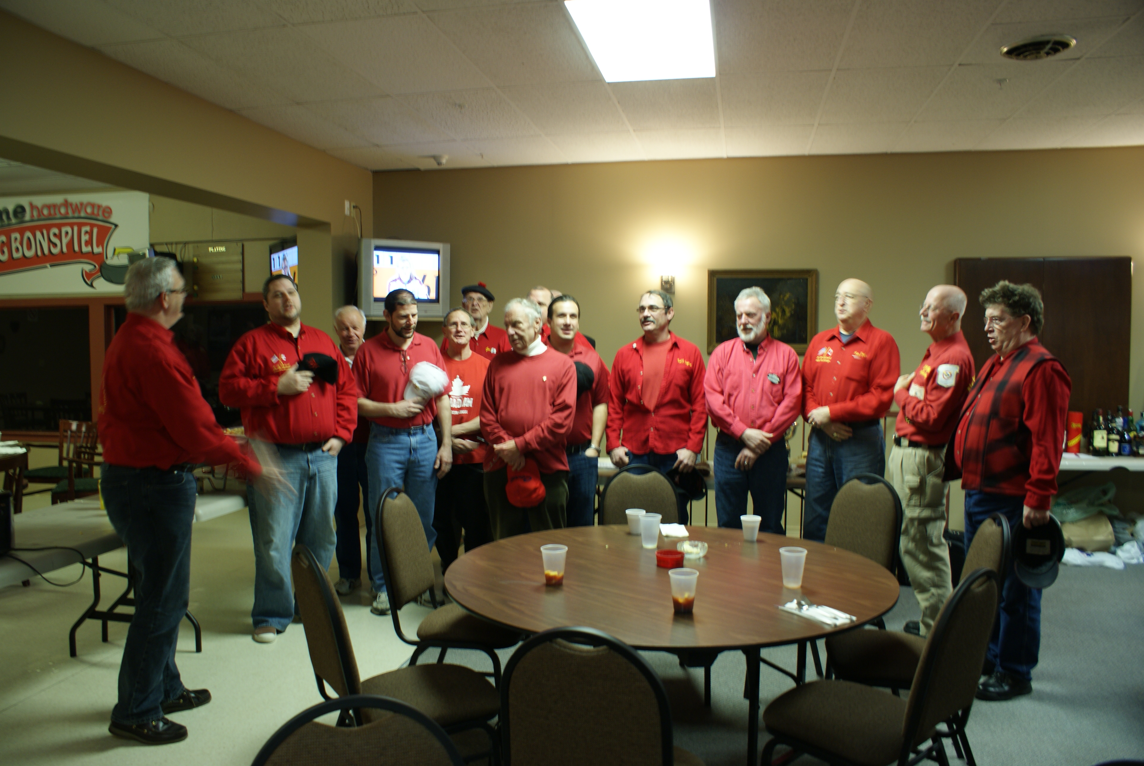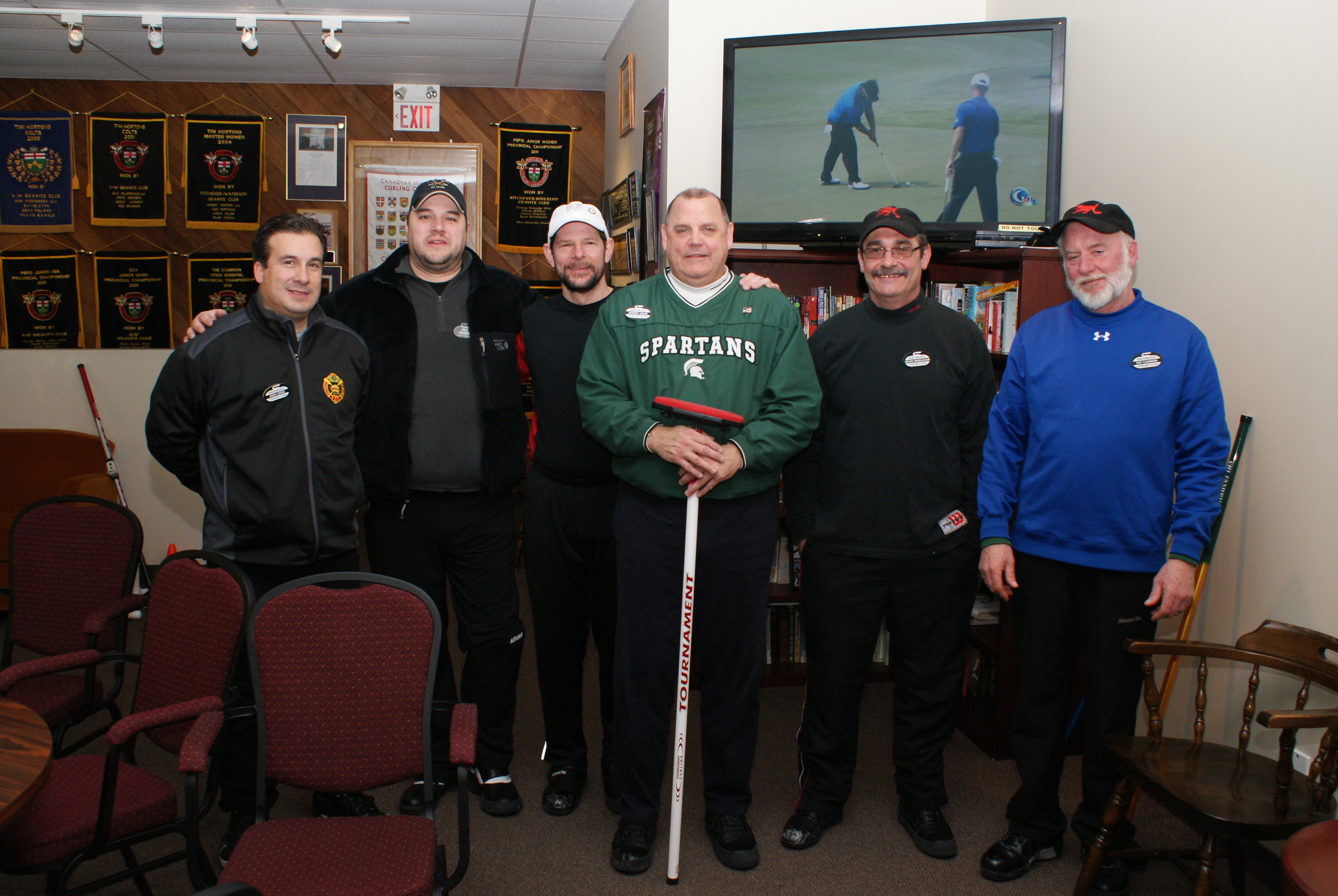 A few of the new curlers showing a wide variety of dress codes. Apparently, only Keith MacKenzie got the email about what we were supposed to be wearing.