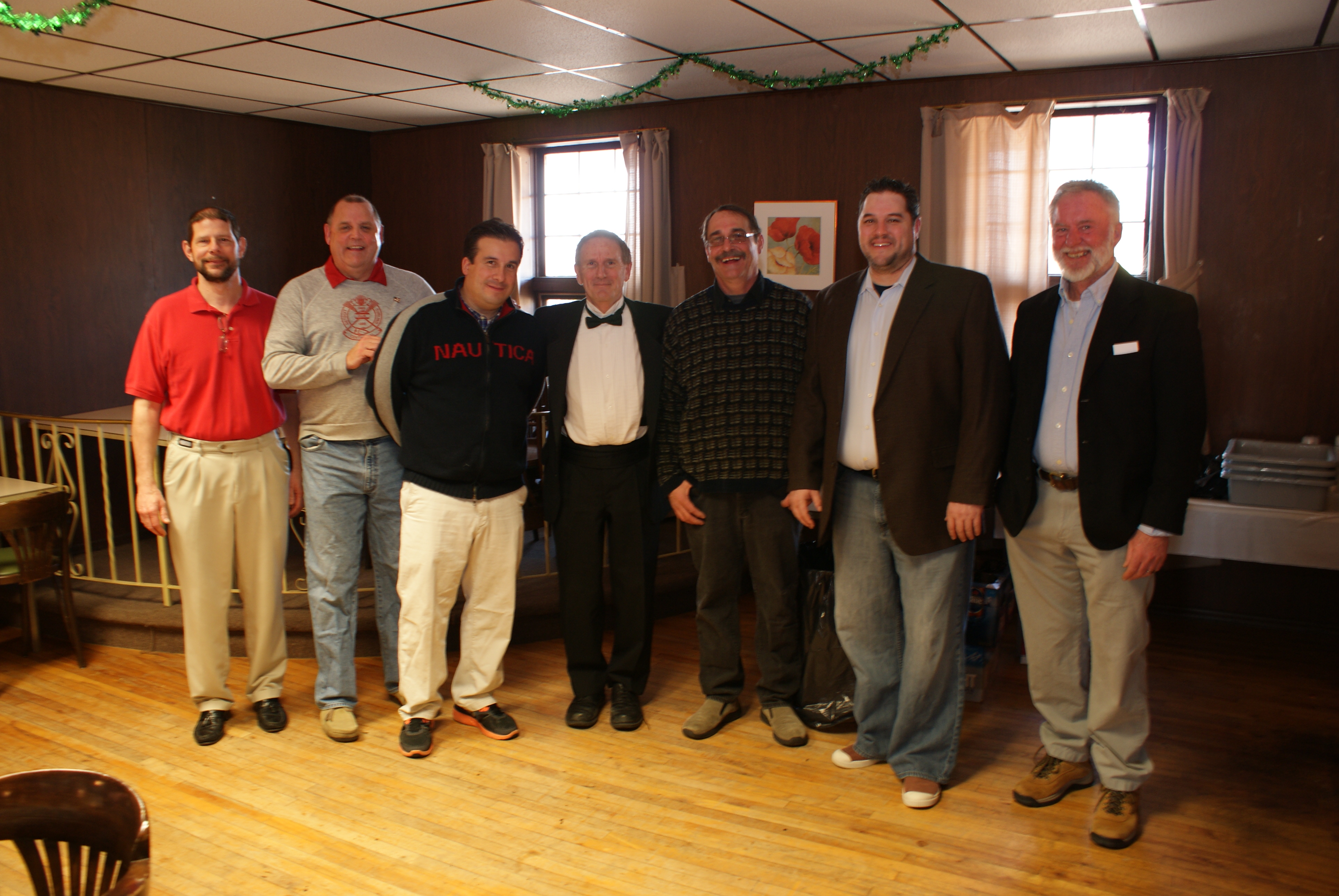 Kneeling from the left: Marty Verhoeven (Marty has been a long time exchange member, but apparently he never been formally welcomed), Gordy Loud, Paul Gaines, Kevin Ingraham (with head bowed), Keith McKenzie and Bill Morris.