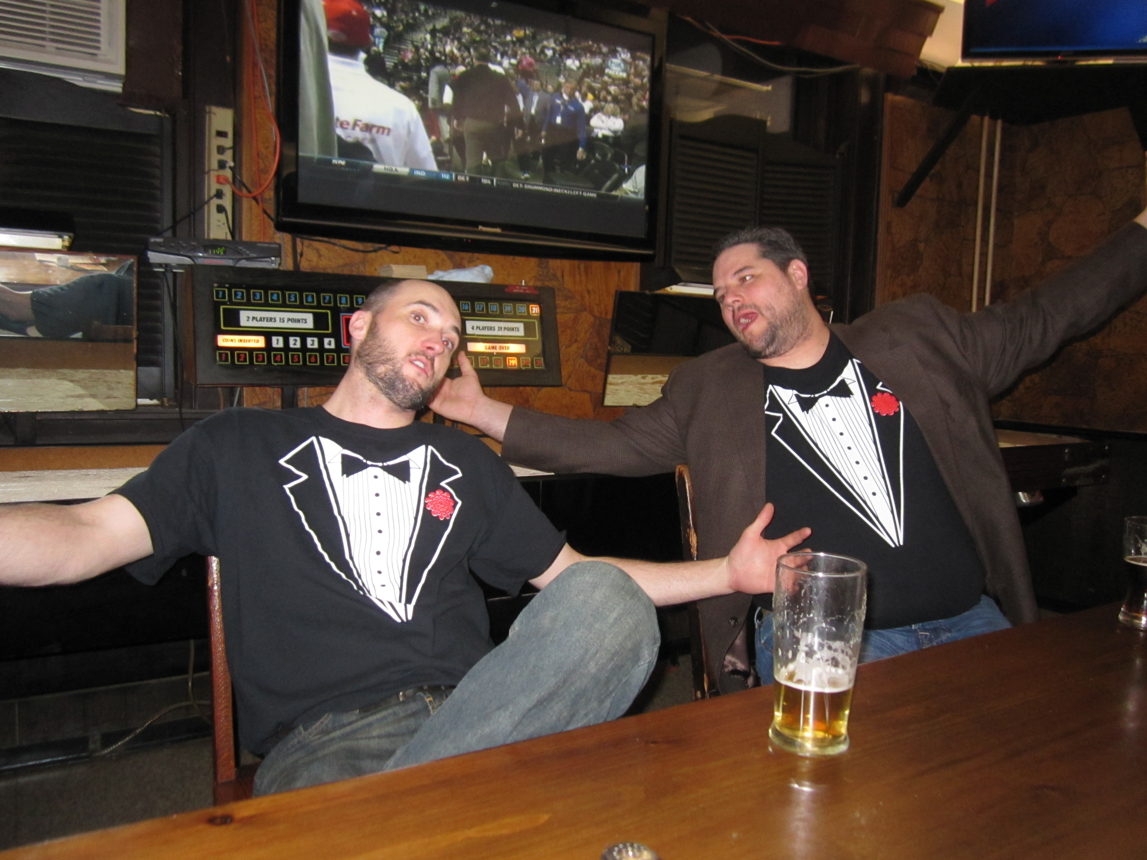 Wearing psuedo formal attire, Mike Yanska and Bill Morris serenade the crowd.