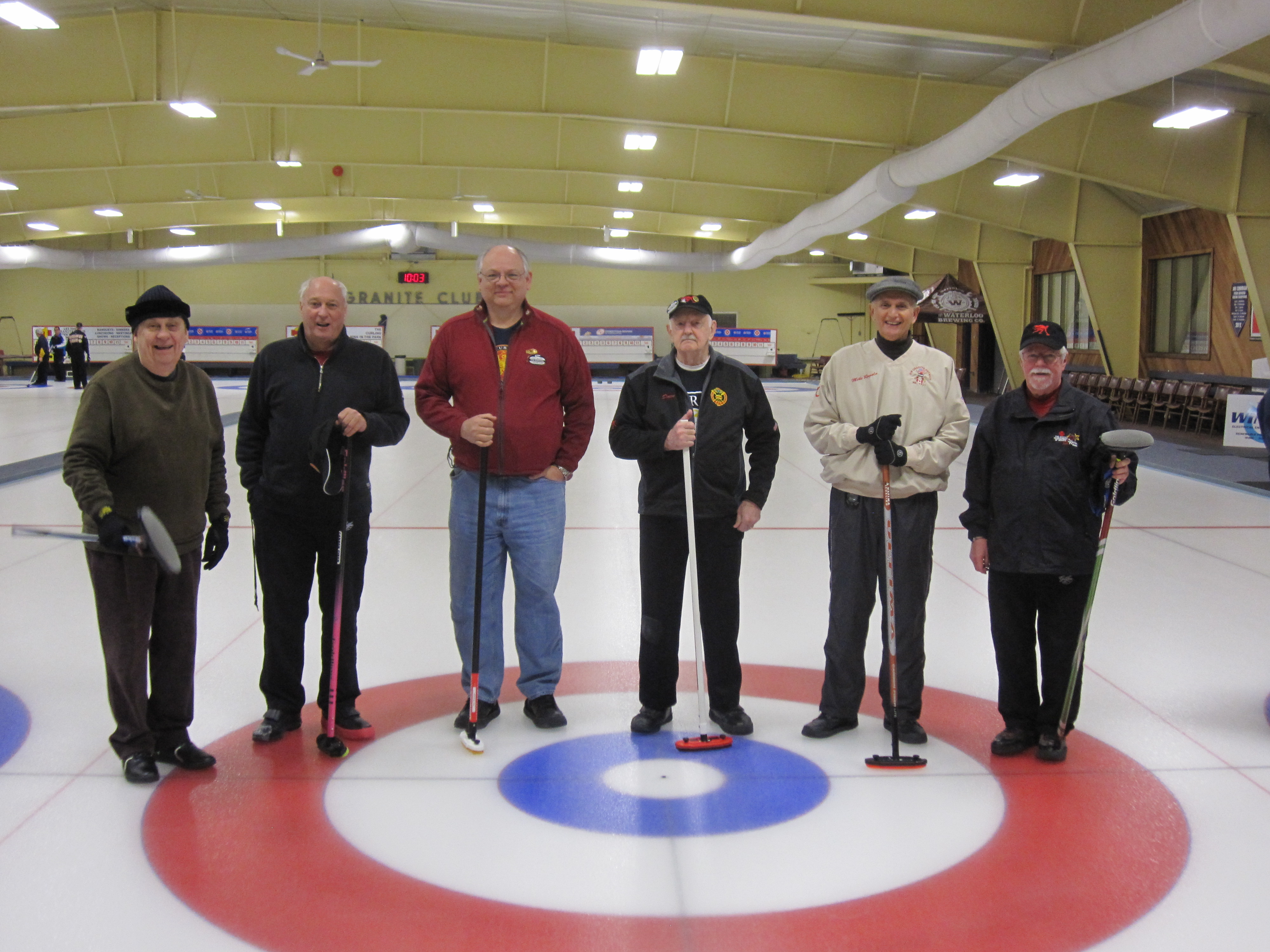 A happy group includes: Gerry Dolff, Don Warthman, Norm Green, Joe Buchanan, Gord McConnell and Les Saunders.