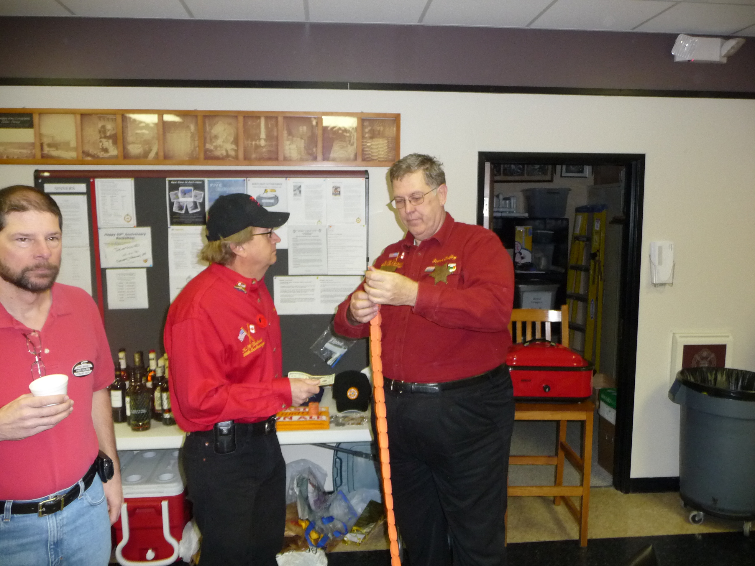Frank Duffey counts the raffle tickets for Mark Schumacher as Paul Gaines walks by.