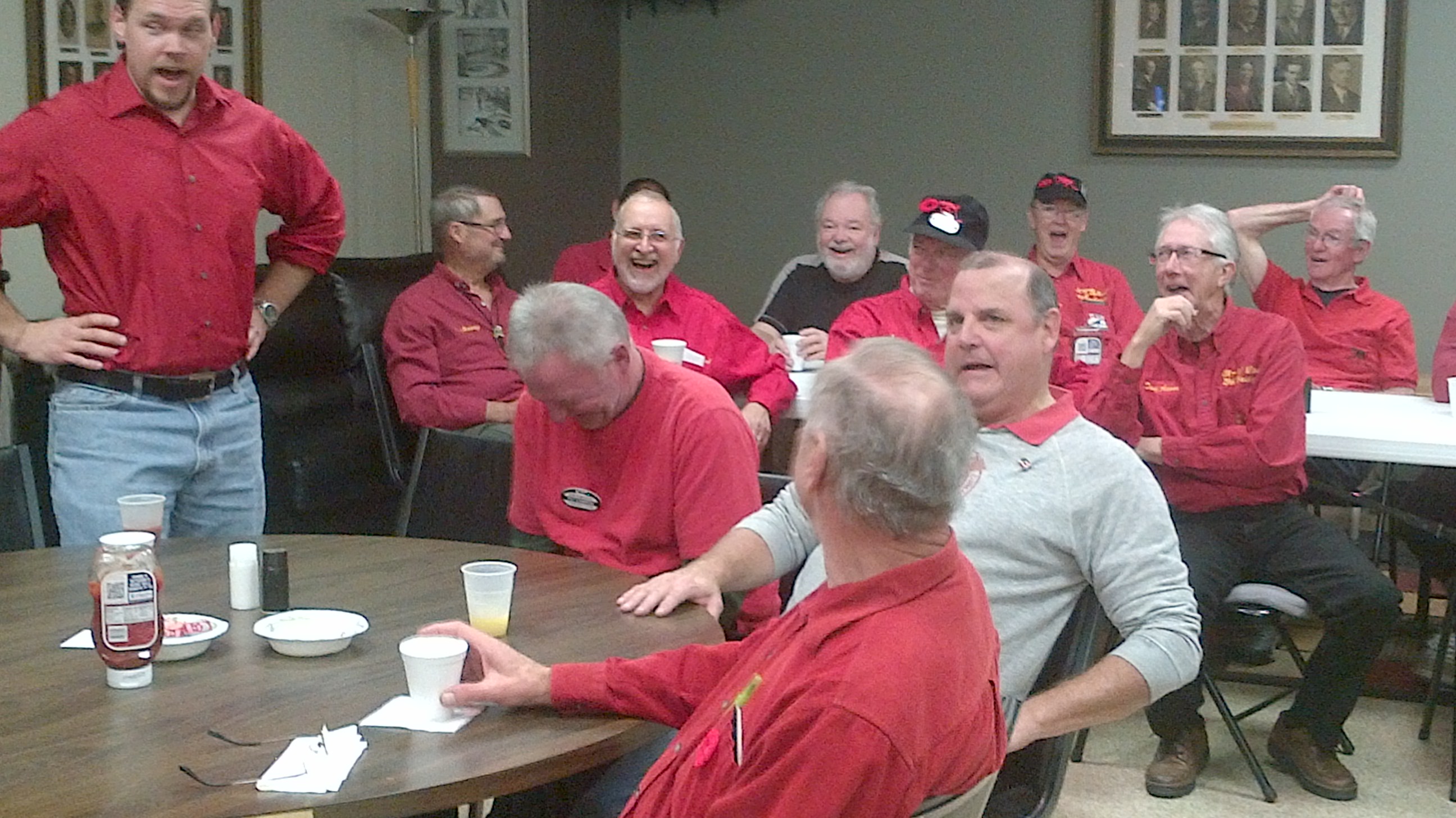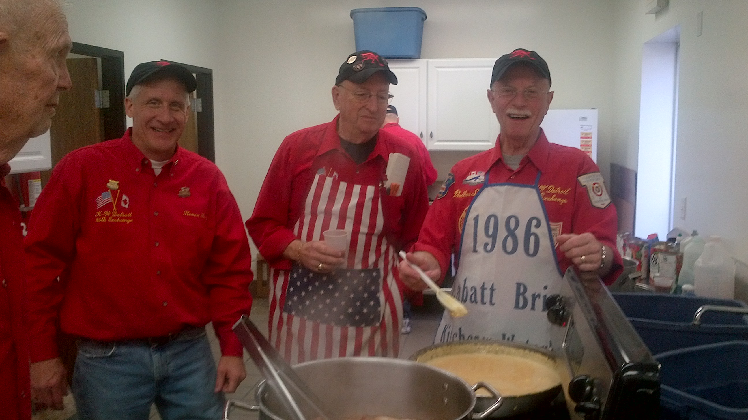 Waiting for breakfast are: Paul Sandford, Dave Hesse, Bob MacMillan, Leroy Bliven, Doug Adams and Scott Rogers.