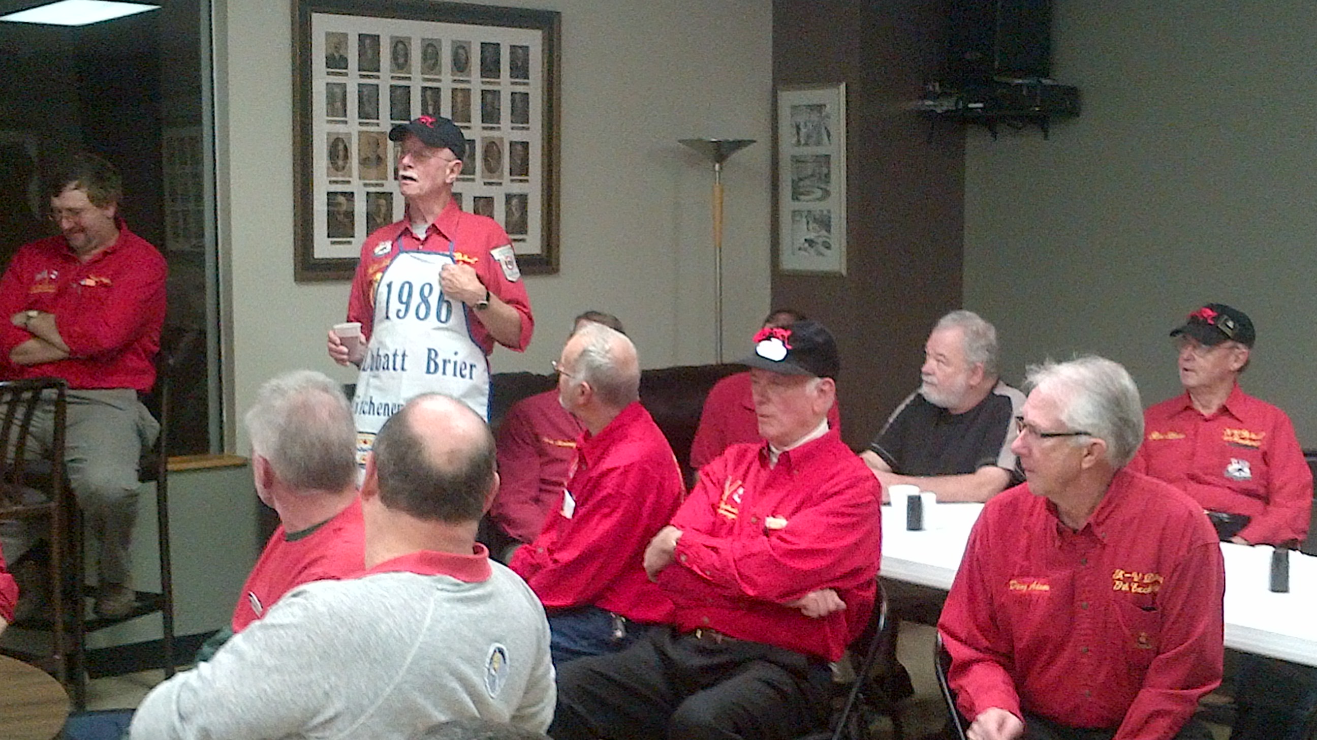 Back left is Cec Hofstetter. In front with backs to camera are Pat Cannon and Gordy Loud. The rest are: John Danckeart, Don Fanstone, Thom Pritchard, Doug Adams and Ron Shane.
