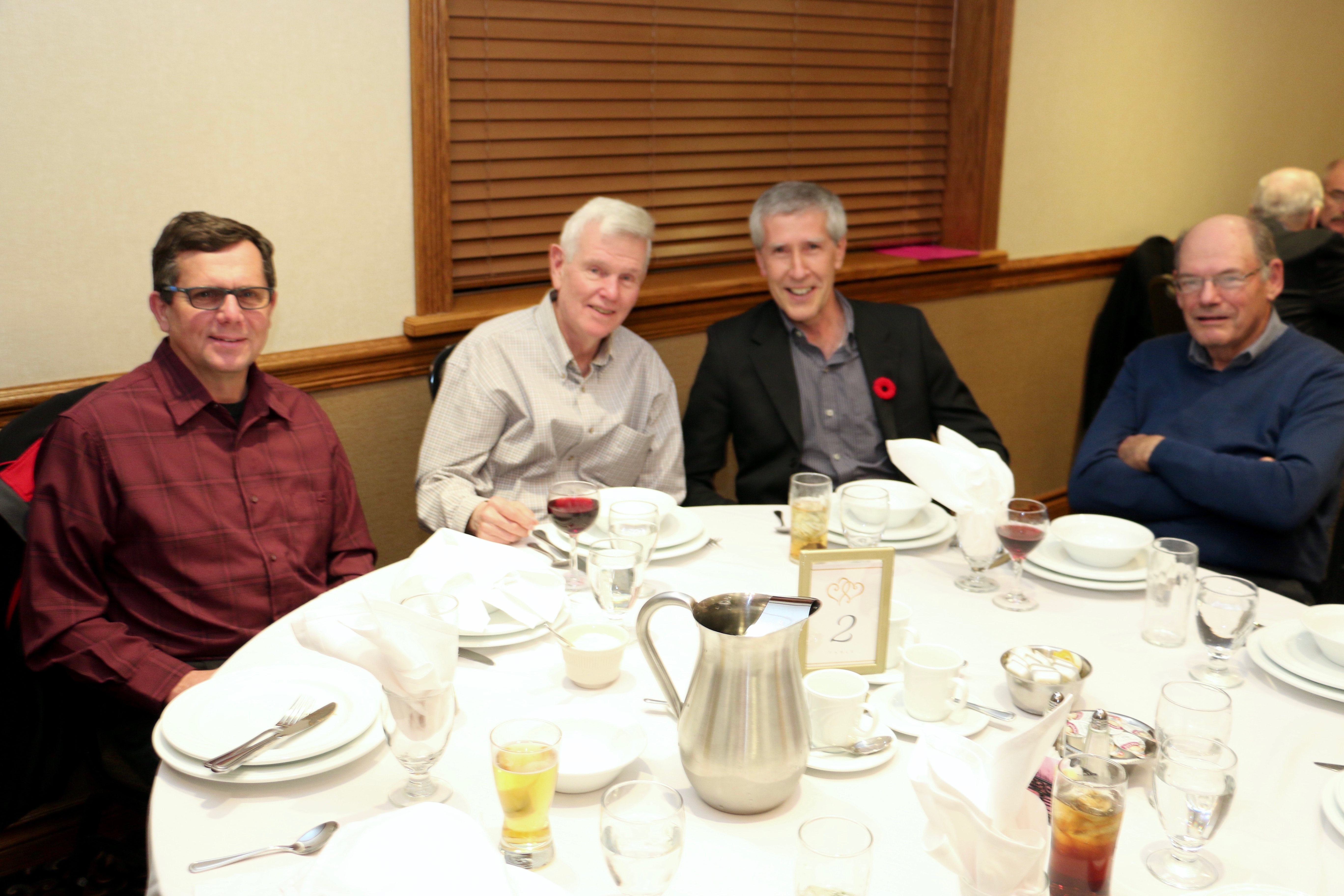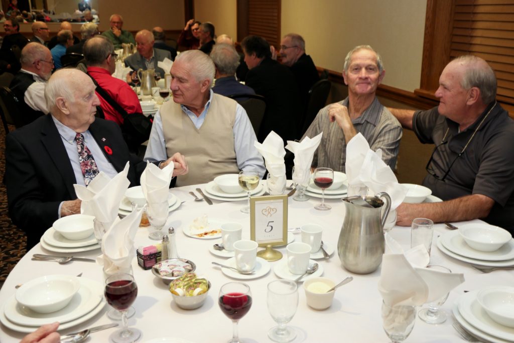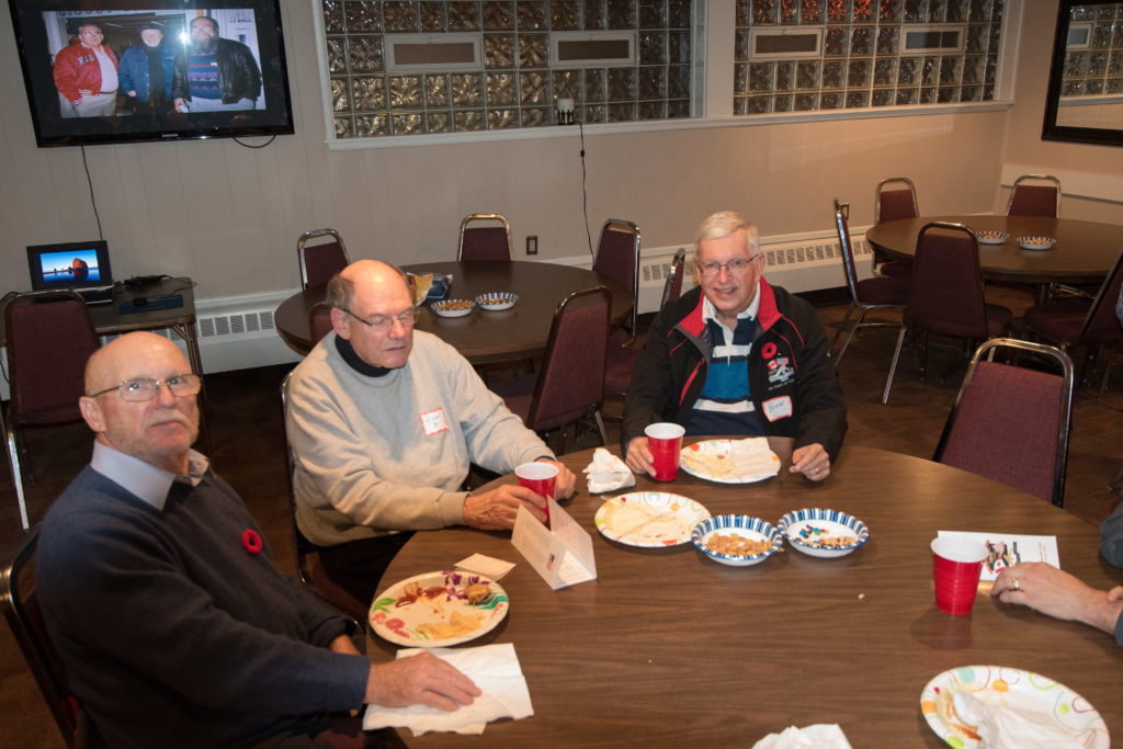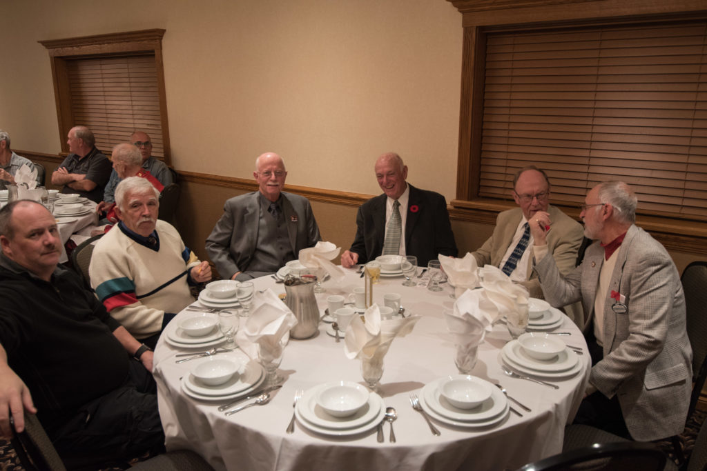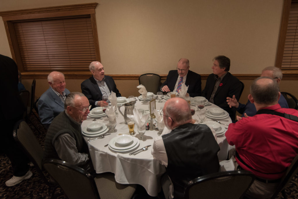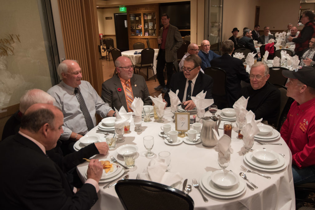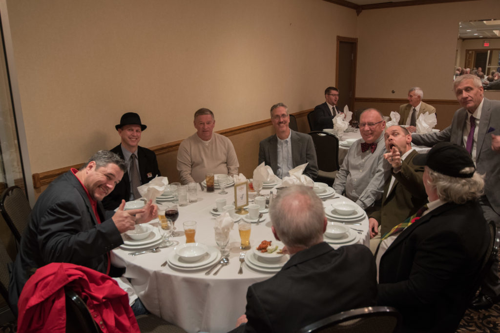 Cec & Dan enjoy the great corned beefClockwise from bottom left: Don Sloat, Dave Turner, John Danckeart, Peter Hartill, Herb Millard, and Brian Gleiser.Joe Bonfoey trying to make a point!Clockwise from bottom left: John Martin, Marcus Baker, Dallas Schneider, Paul Sandford, Bob Kennedy, Ken Zyrd and Marty VerhoevenDave Cain makes up teams.Clockwise from bottom left: Frank, Vack, Doug, John and Hugh.Josh and Duncan have a private chat.Sitting with Joe are Kevin, Luc and Matt.In Front: Kevin, Luc and Matt. Behind are Cec and Dan.Pat, Joe and BillGordy keeps Chuck and Leroy interested.Ron with Peter and DonVac is being introduced by Doug.It looks like Dallas is watching the footbal game.These guys don’t seem to be interested in the football game.Paul Gaines our master of ceremonies laughs at one of his jokesLuc another new exchange member is introduced by MattBob tells another storyGreat shoes Rick!