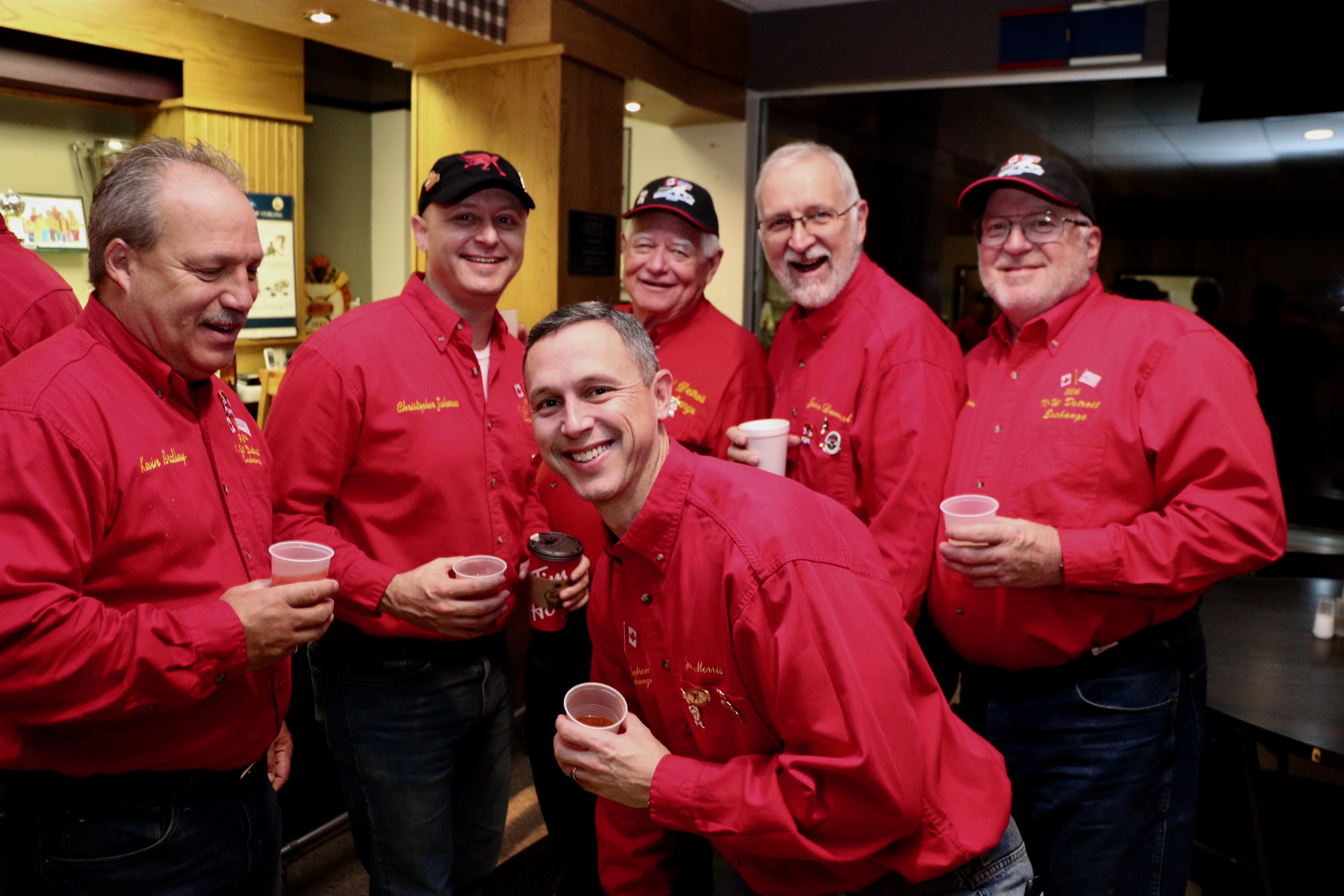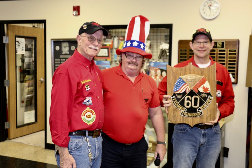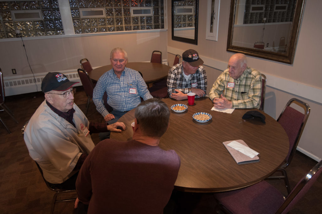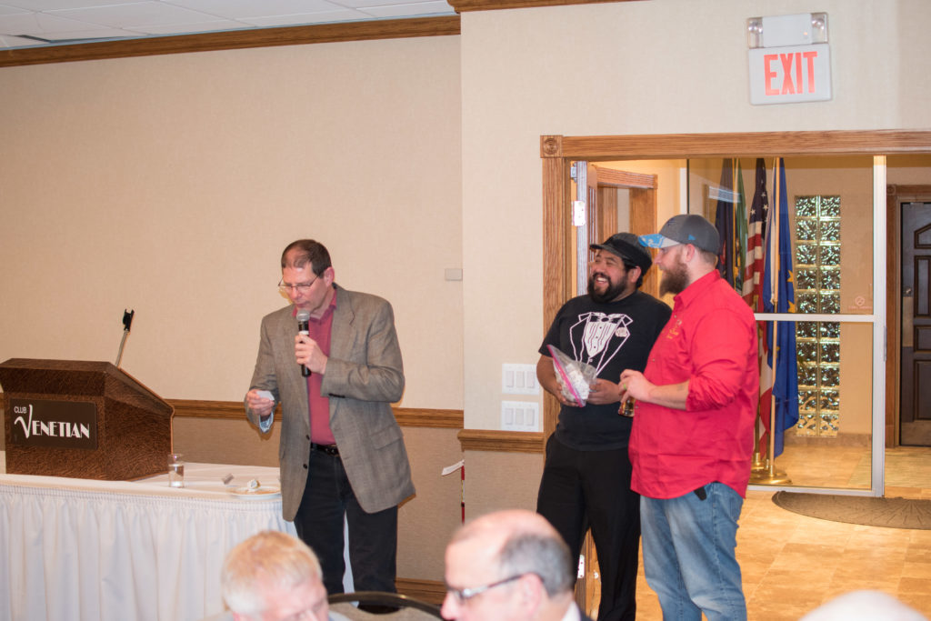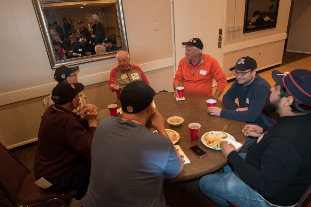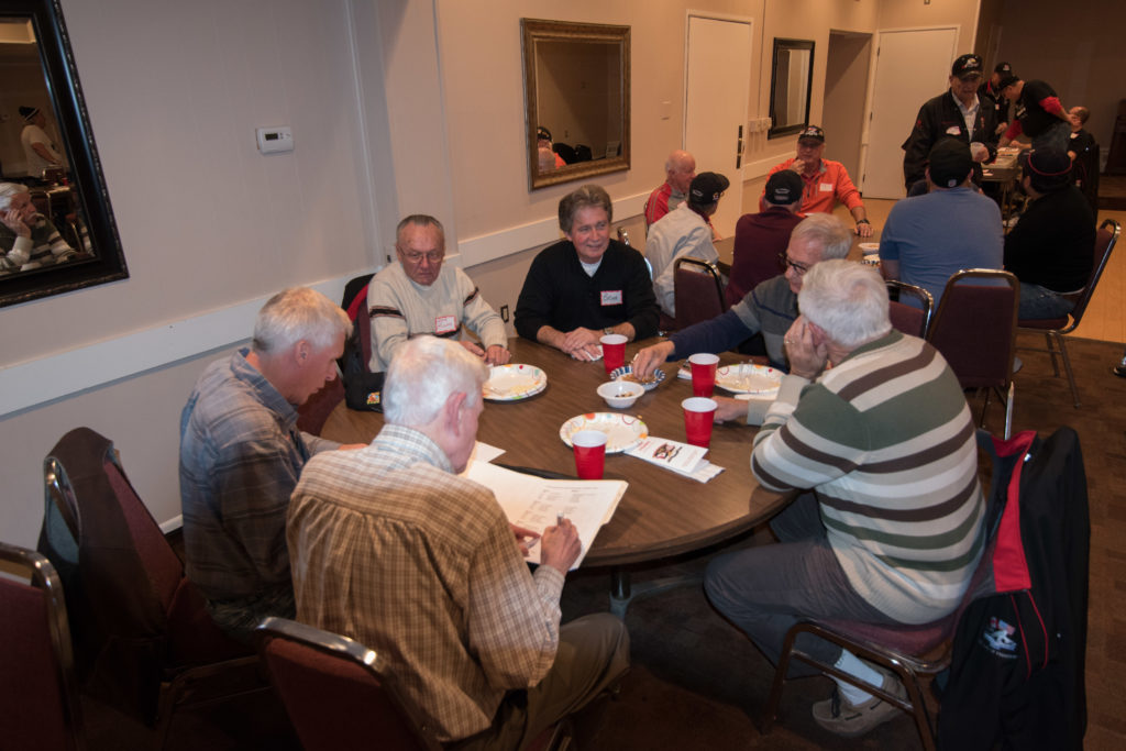 Cec & Dan enjoy the great corned beefClockwise from bottom left: Don Sloat, Dave Turner, John Danckeart, Peter Hartill, Herb Millard, and Brian Gleiser.Joe Bonfoey trying to make a point!Clockwise from bottom left: John Martin, Marcus Baker, Dallas Schneider, Paul Sandford, Bob Kennedy, Ken Zyrd and Marty VerhoevenDave Cain makes up teams.Clockwise from bottom left: Frank, Vack, Doug, John and Hugh.Josh and Duncan have a private chat.Sitting with Joe are Kevin, Luc and Matt.In Front: Kevin, Luc and Matt. Behind are Cec and Dan.Pat, Joe and BillGordy keeps Chuck and Leroy interested.Ron with Peter and DonVac is being introduced by Doug.It looks like Dallas is watching the footbal game.These guys don’t seem to be interested in the football game.Paul Gaines our master of ceremonies laughs at one of his jokesLuc another new exchange member is introduced by MattBob tells another storyGreat shoes Rick!