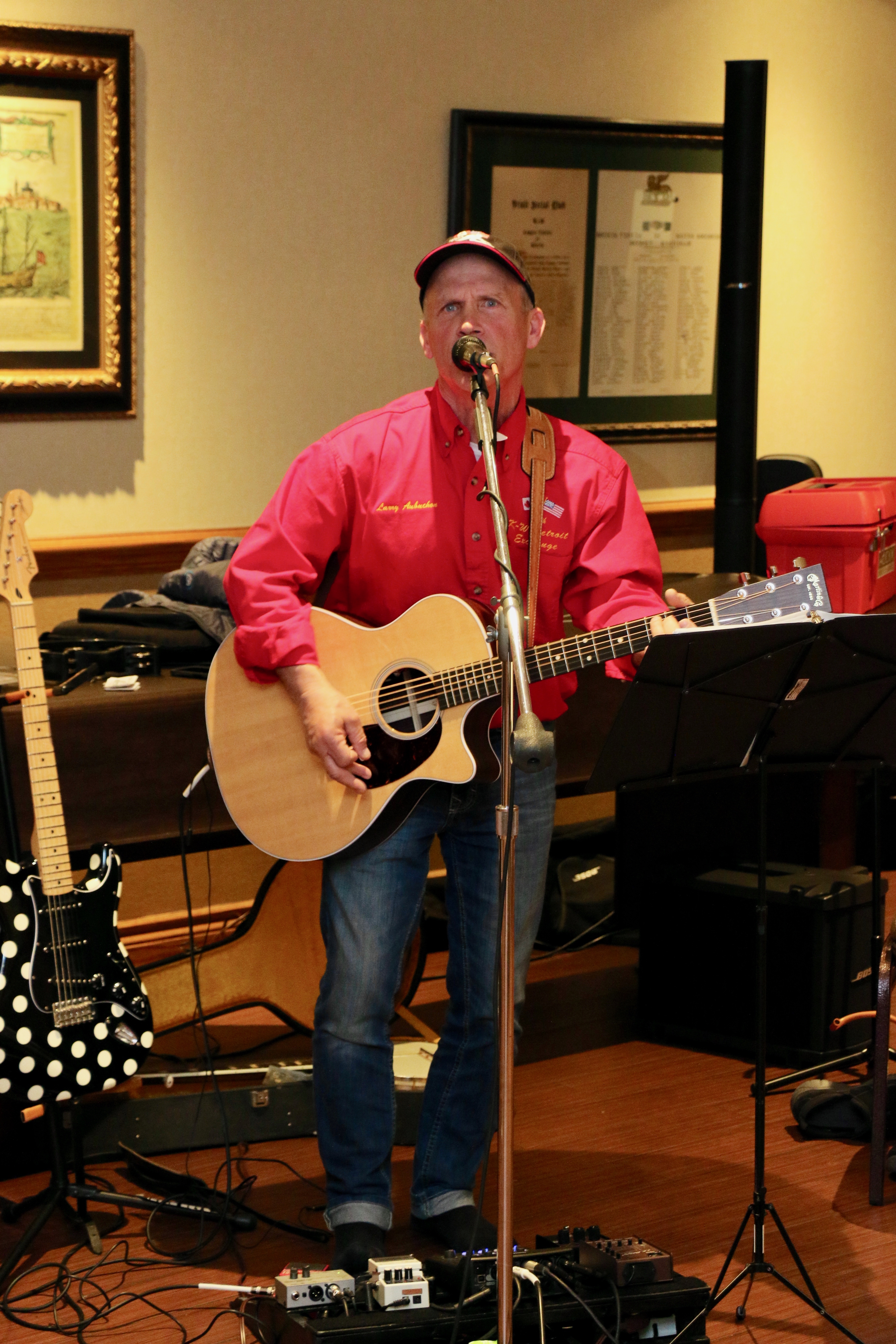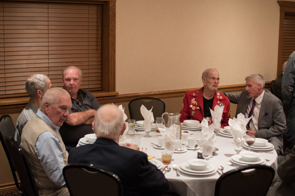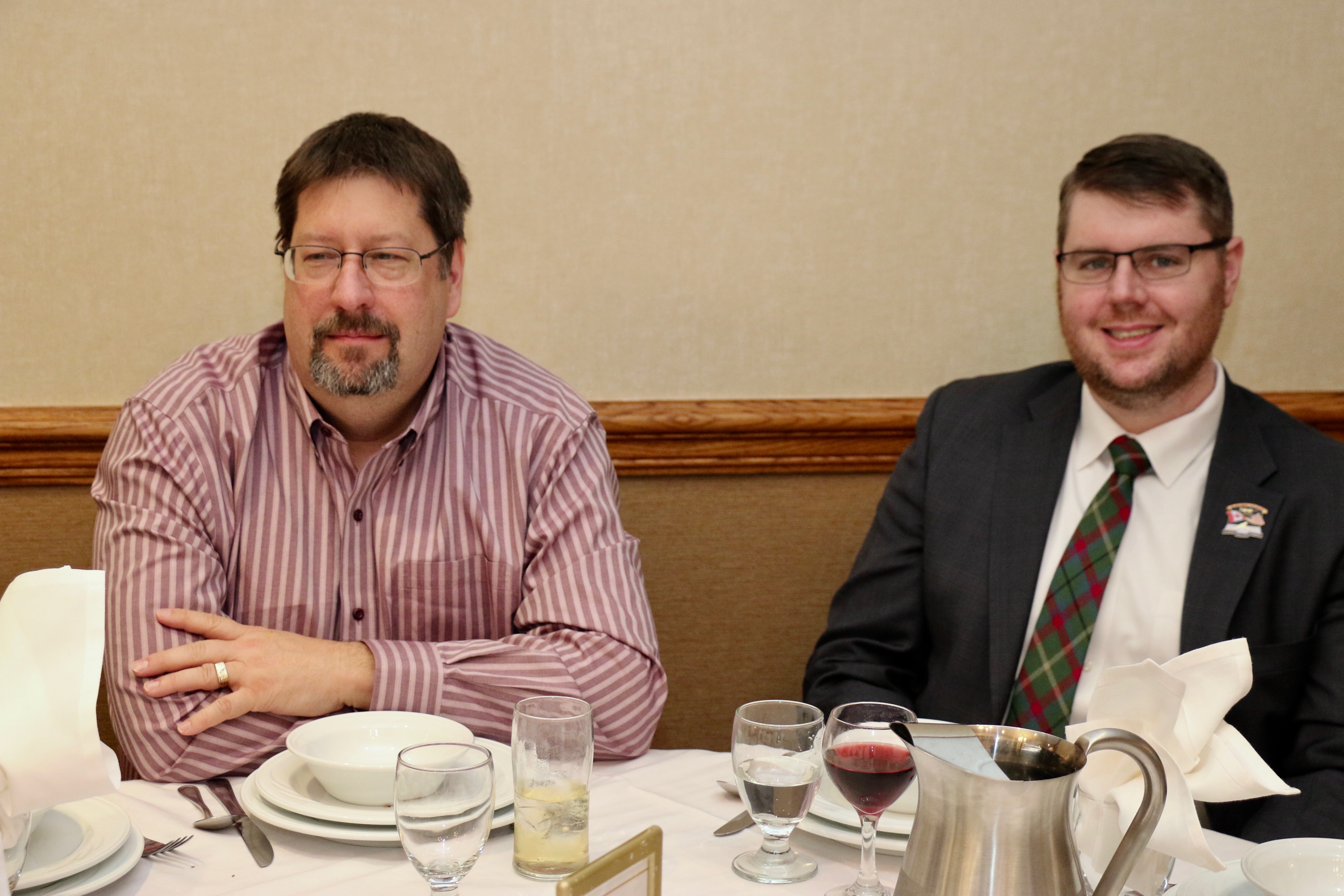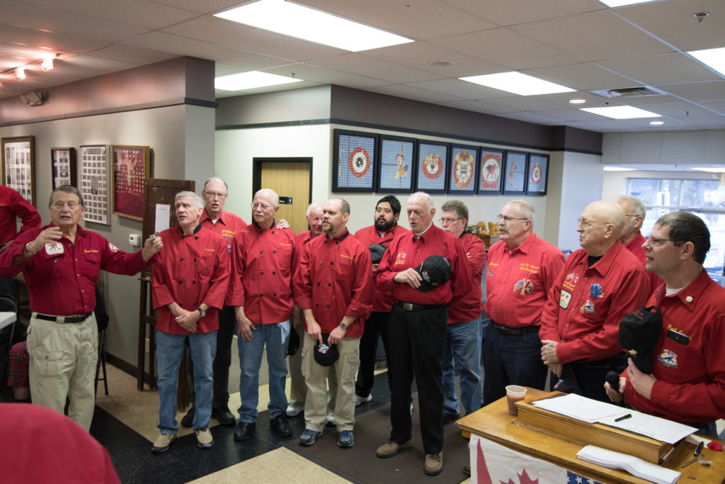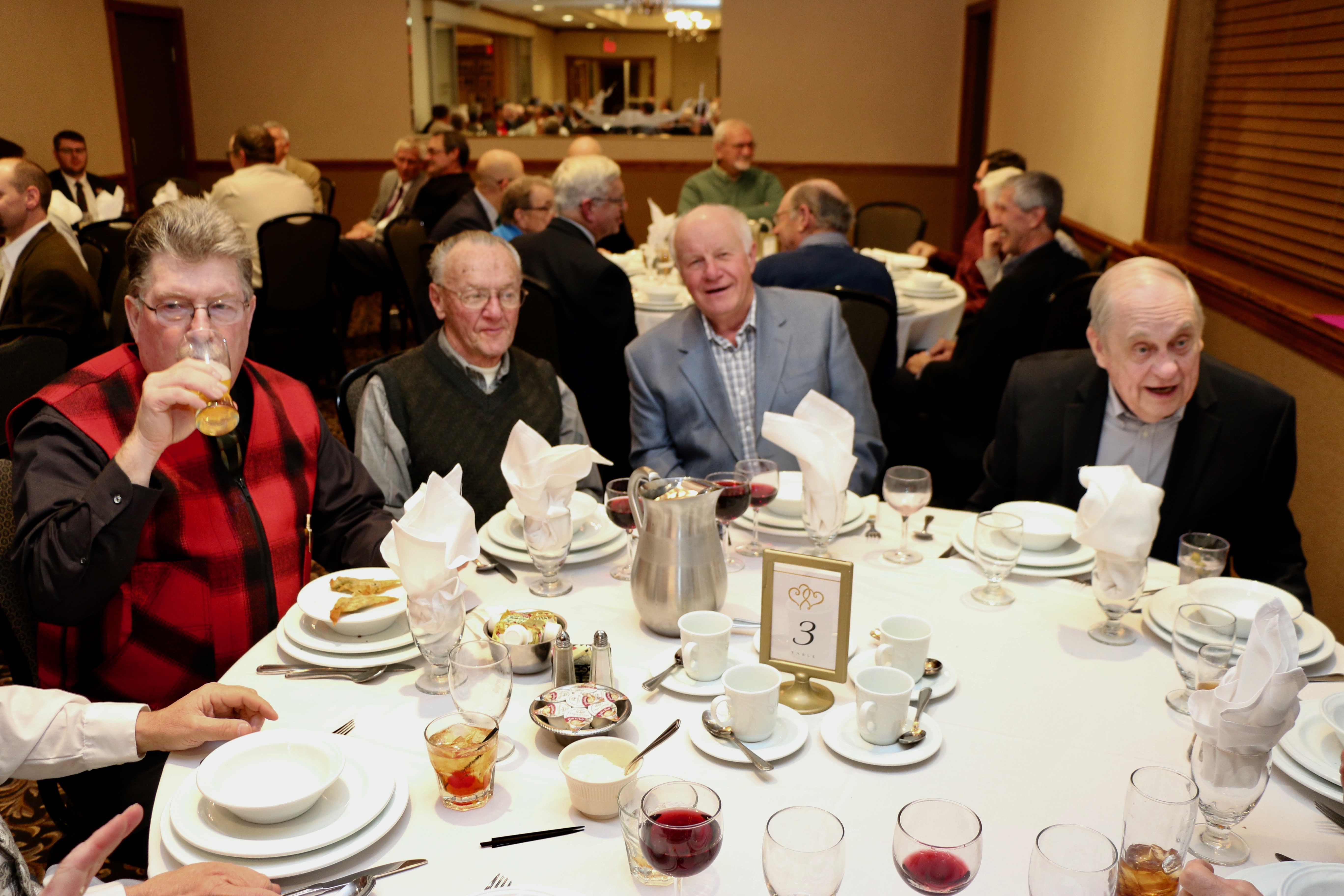 Cec & Dan enjoy the great corned beefClockwise from bottom left: Don Sloat, Dave Turner, John Danckeart, Peter Hartill, Herb Millard, and Brian Gleiser.Joe Bonfoey trying to make a point!Clockwise from bottom left: John Martin, Marcus Baker, Dallas Schneider, Paul Sandford, Bob Kennedy, Ken Zyrd and Marty VerhoevenDave Cain makes up teams.Clockwise from bottom left: Frank, Vack, Doug, John and Hugh.Josh and Duncan have a private chat.Sitting with Joe are Kevin, Luc and Matt.In Front: Kevin, Luc and Matt. Behind are Cec and Dan.Pat, Joe and BillGordy keeps Chuck and Leroy interested.Ron with Peter and DonVac is being introduced by Doug.It looks like Dallas is watching the footbal game.These guys don’t seem to be interested in the football game.Paul Gaines our master of ceremonies laughs at one of his jokesLuc another new exchange member is introduced by MattBob tells another storyGreat shoes Rick!