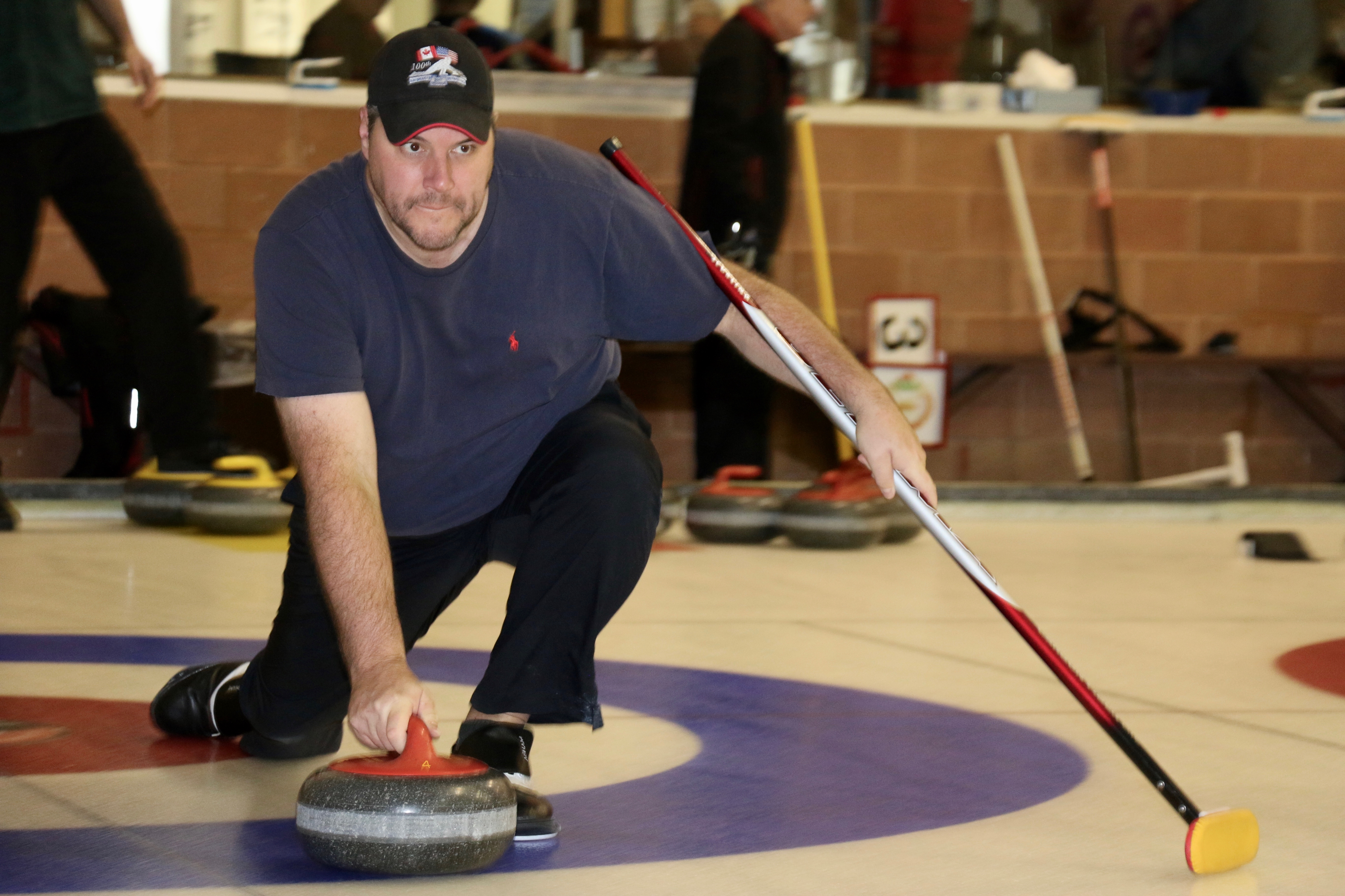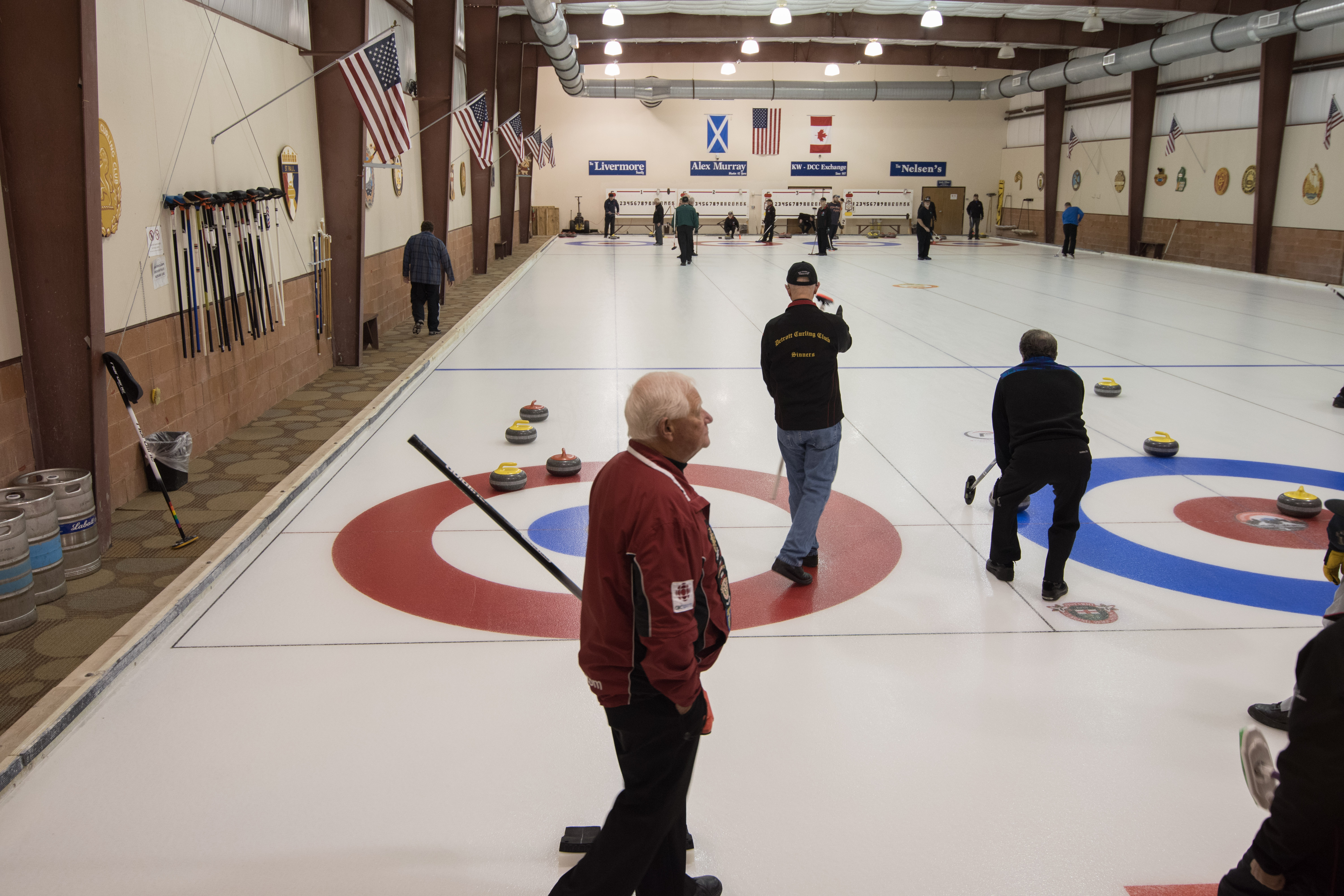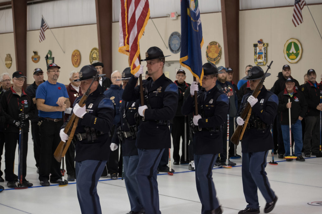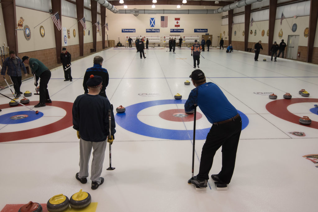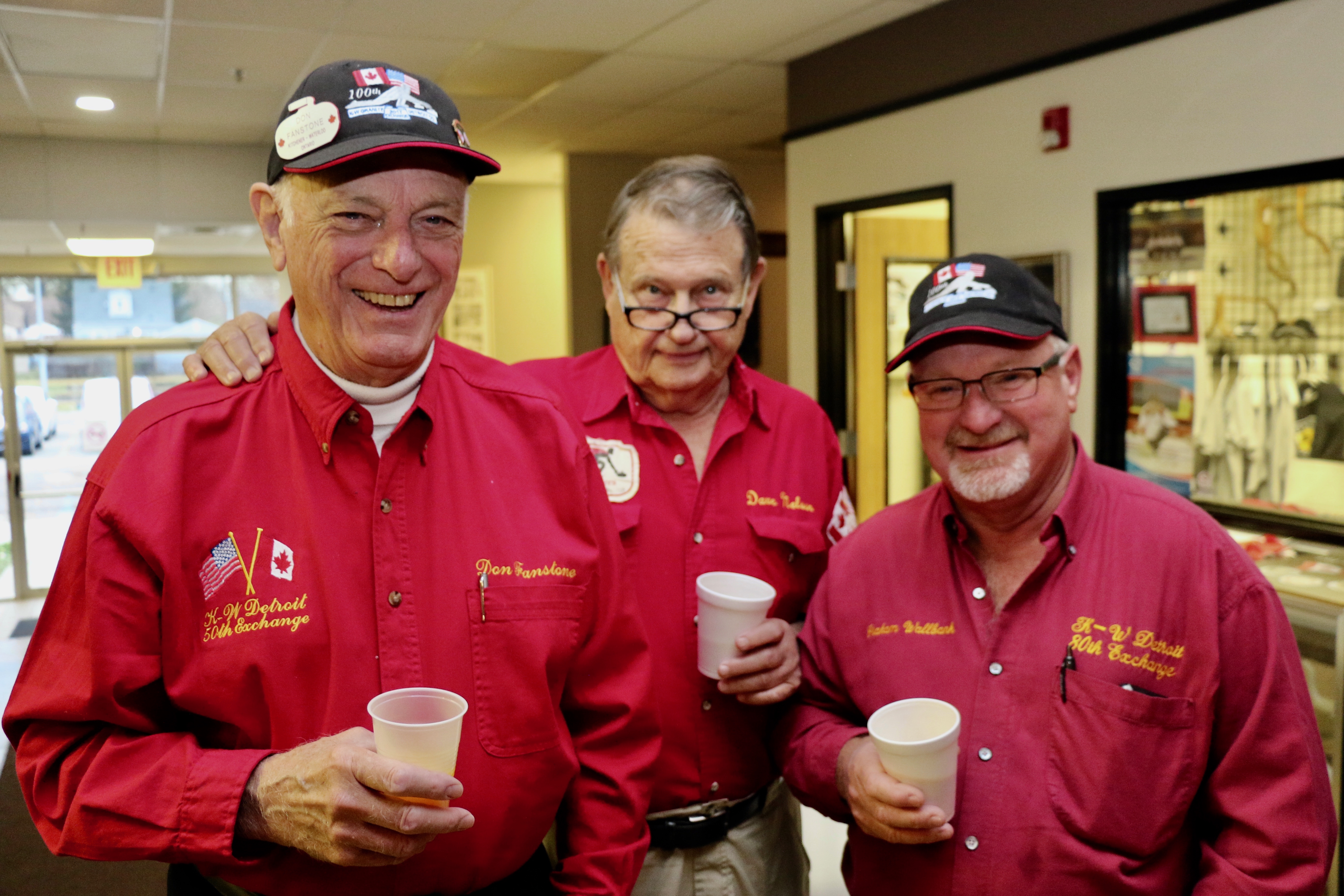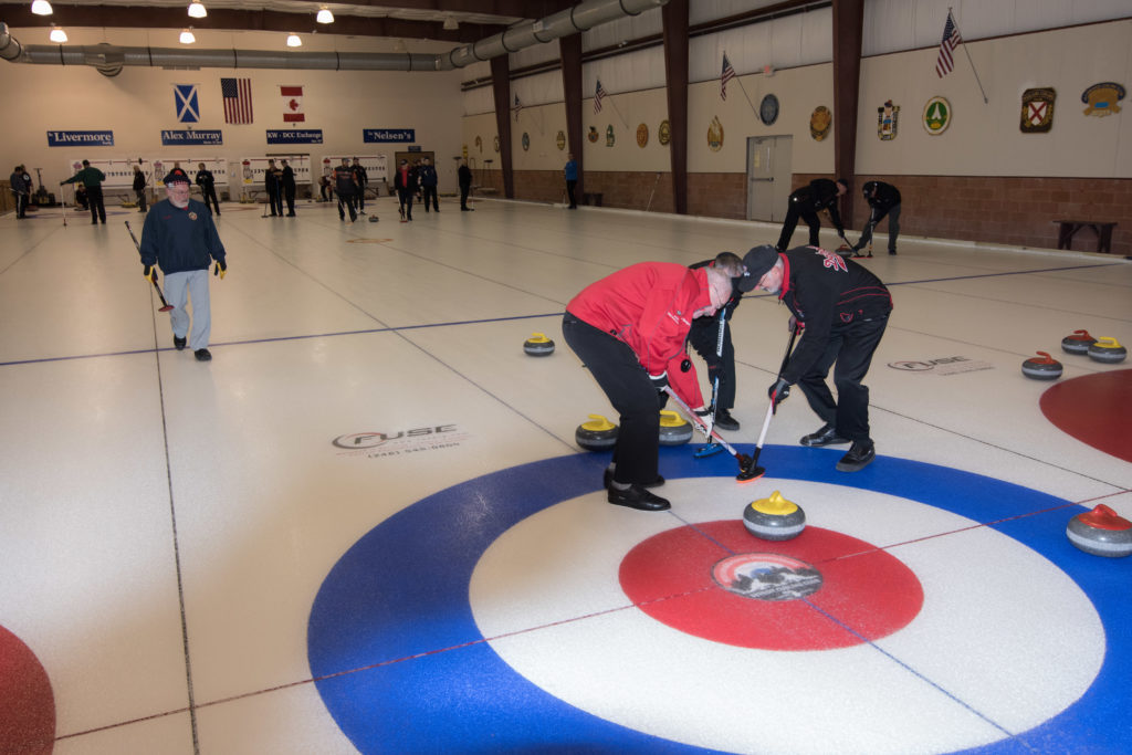 Jim Morris, President Detroit Curling Club; Douglas George, Consul General of Canada; Richard Lepping, Chairman, USCA; Richard Wittenberg, State Reresentative and David Coulter, Mayor of FerndaleIs everyone paying attention?Douglas George, Consul General of Canada brings greetings from Canada. He apologized on behalf of Justin Trudeau who was holidaying in the Bahamas.Richard Lepping, Chairman, USCA encouraging the gathered to continue this event for another 100 years!Bret Jackson, Joe Livermore and Damien BuchowskiRichard Wittenberg, State Representative presents a certificate celebrating the 100th to Jim Morris President of the Detroit Curling ClubDavid Coulter, Mayor of Ferndale brings greetings from the city.Bob MacMillan chair of the KW Granite exchange team gets a laugh from the attendees.The pipers play to end the ceremonies.The State Troopers lead the curlers off the ice.Bob MacMillan holds the broom for the KW Granite ceremonial rock throw.Ian Anderson prepares to throw the KW Granite ceremonial rock, as Graham Wallbank and Paul Sandford get ready to sweep.Ian is a little wobbly on the delivery. Where is his stick?Somehow Ian’s rock ended up over the button?Joe Livermore holds the broom for the Detroit ceremonial rock throw.Dave Nelsen delivers the Detroit ceremonial rock, with sweepers Dallas Schneider and Dave Hesse.Not to be outdone the Detroit rock covered more of the button!A fine group for the 100th!