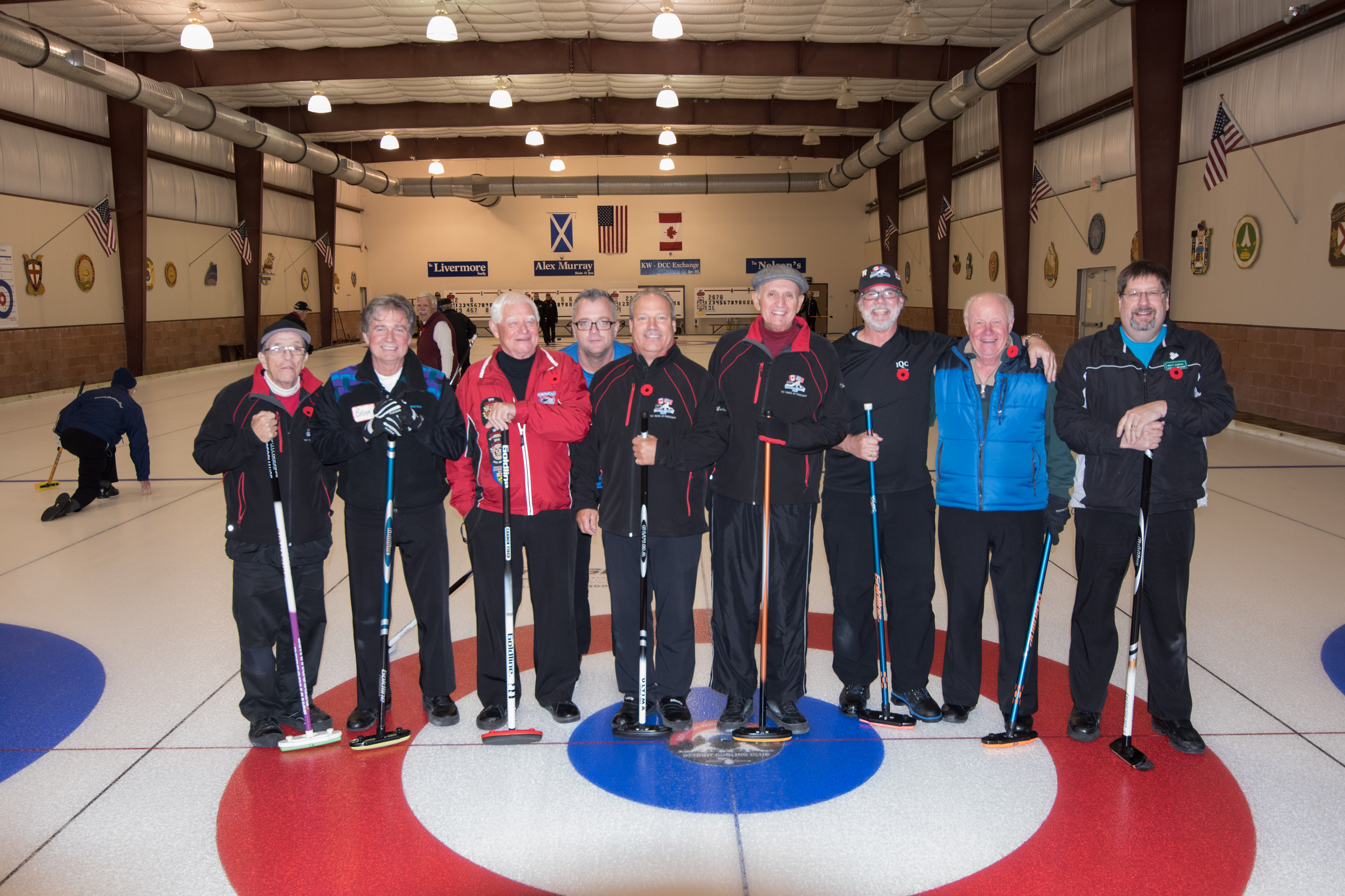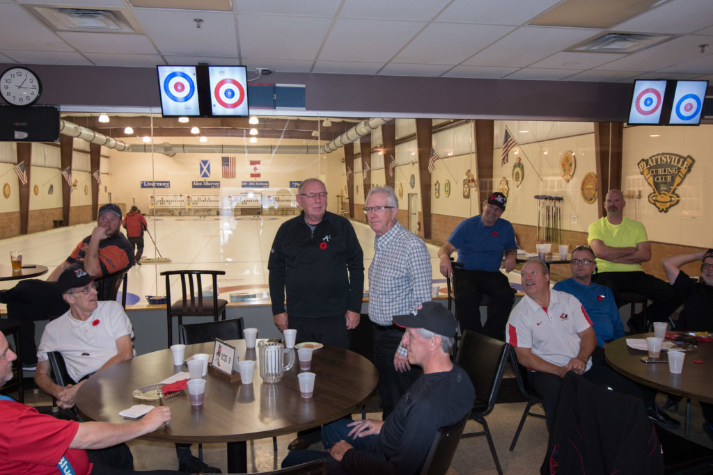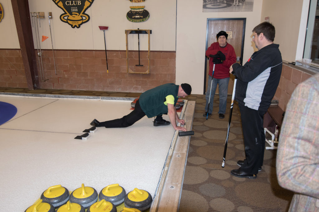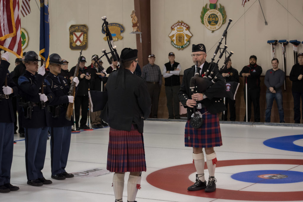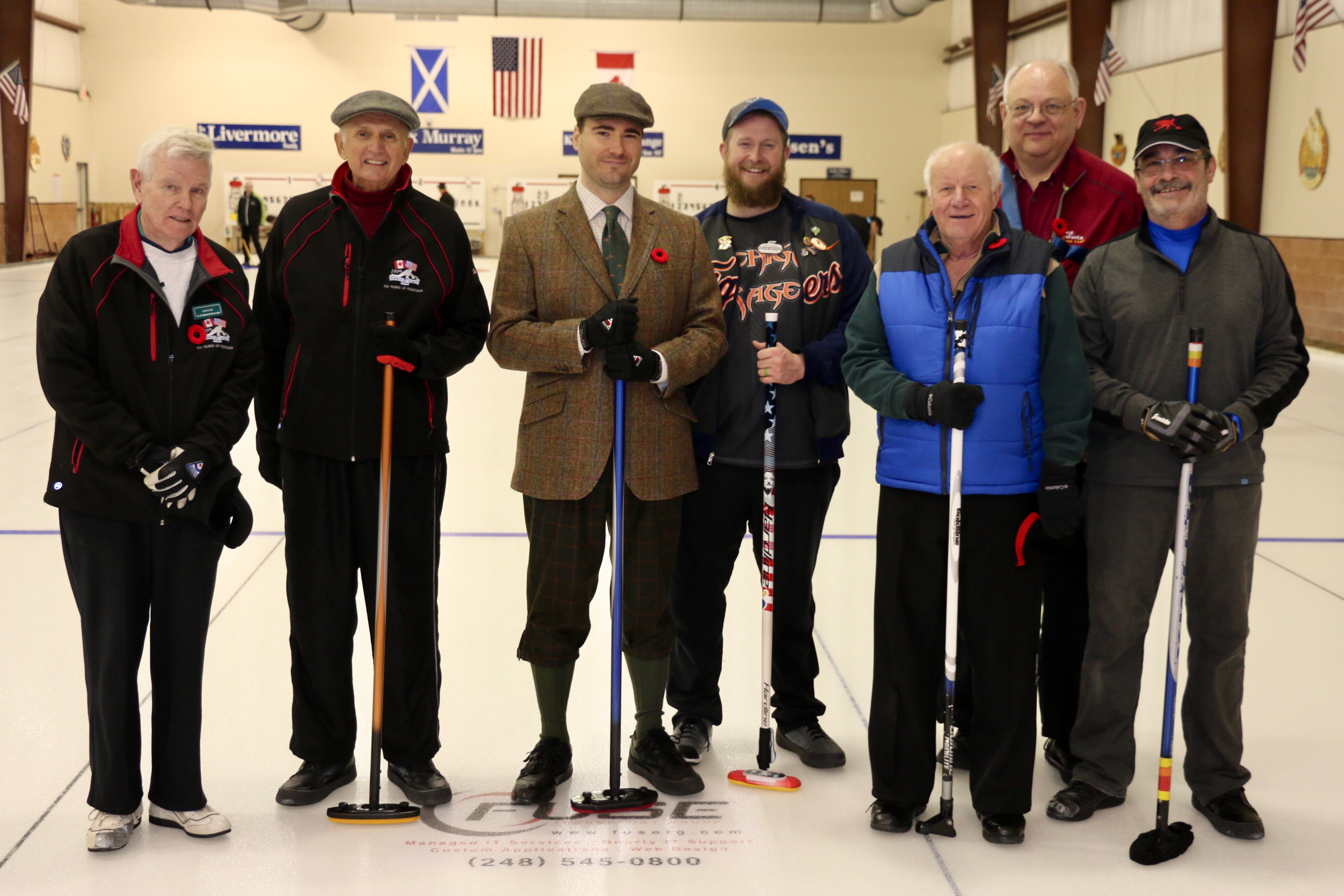 On Ice #1: Hugh Smith, Dallas Schneider, Ian Anderson, John Martin, Norm Green, Gordy Loud, Paul Sandford, Paul Carmouche and Mike RogalaOn Ice #2: Cec Hofstetter, Paul Badgero, Herb Millard, John Danckaert, Sam Kilby, Brian Gleiser, Pat Cannon and Peter HartillOn Ice #3: Matt Schumacher, Dave Hesse, Marcus Baker, Duncan Whitmore, Nate Glitman, Frank Duffey, Marty Verhoeven and Pete SylvainOn Ice #4: Luc Cormier, Kevin Bradley, Dave Nelsen, Graham Wallbank, Kevin Ingraham, Ron Boehmer, Dave Urbiel and Rick HarrisonIan Anderson wonders where his sweepers are?Showing fine form is Paul Sandford,while John Martin is ready to sweep.John Martin and Hugh Smith trying to decide whether to sweep.Sam Kilby and Pat Cannon figure this rock does not need sweeping.Will the rock curl that much Dallas?Frank Duffey with Marty Verhoeven behind.Graham Wallbank is not giving much broom for this takeout as Dave Nelsen looks on.Marcus Baker shows great form as Matt Schumacher is ready to pounce. Pete Sylvain is a little more patient.Marty reaches out to Dave NelsenNate Glitman delivers as Duncan Whitmore and Dave Hesse sweep.Luc Cormier follows the rock down the ice while Kevin Bradley and Dave Urbiel wait.Waiting behind the glassDouglas George chats with Dave CainAppropriately near the bar are the pipers and Larry AubuchonIan Anderson delivers better using a stick. Gordy Loud and Norm Green look on.Paul Badgero is telling Brian Gleiser not to sweep yet.Are you sure you want the rock there Cec?Looks like a narrow port to go through John!Big sweeping from Matt and Marcus.Did Pat and Peter sweep hard enough to make the double for Cec?Everyone is sweeping this one!A good use for a broom Cec!Ian wonders what is going on – over there?Certificate from Gov’t of Canada signed by TrudeauState of Michigan certificateDan Glendinning, Leroy Bliven, John MacDonald and Jim RenaudBob MacMillan and Nick YamburaI see you too Jerry!Don Sloat and Ken ZyrdJoe Livermore and John SpencerJim Morris being interviewed by Fox Sports – see video clipRichard Lepping being interviewed.Is that stick hollow Bob?Bret and John in front 100th bannerTeams getting ready for the second draw in the morningDave Cain, Mike Rogala, Nick Yambura, Duncan Whitmore, Gerry Dolff, Ken Romanik and Kevn Ingraham.At 11am the Last Post was played by boy scout Matthew McDonnell and his father Sean. There wasn’t a dry eye in the clubDallas Schneider with Matthew and SeanYou are supposed to stretch after you exercise Dan!Brett Dubrick ready to deliverDave wonders where all the rocks came from?Duncan is a little shakeySam is focusedDave is determinedGreat style BrettPaul has his eyes on the broomGreat stick delivery from LesKevin rests between shotsJoe is in charge of the houseVac deliversYou are supposed to look at the broom Jim!Kevin & Gerry sweep hardNich has great style in delivery and clothesI guess all that stretching before the game worked for Dan!Unlike his brother, Bill is focused on the broom.He is still focused on the broom!
