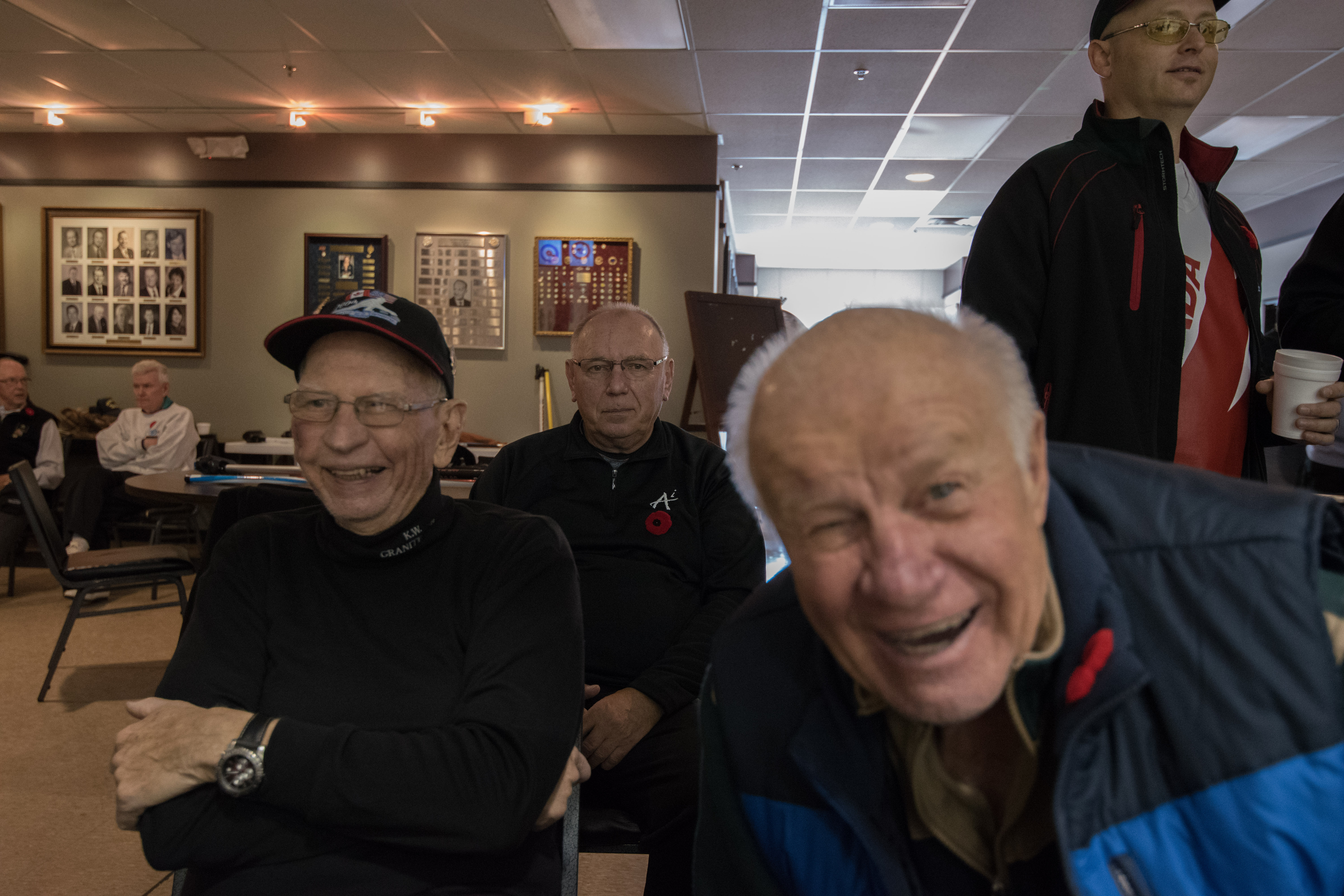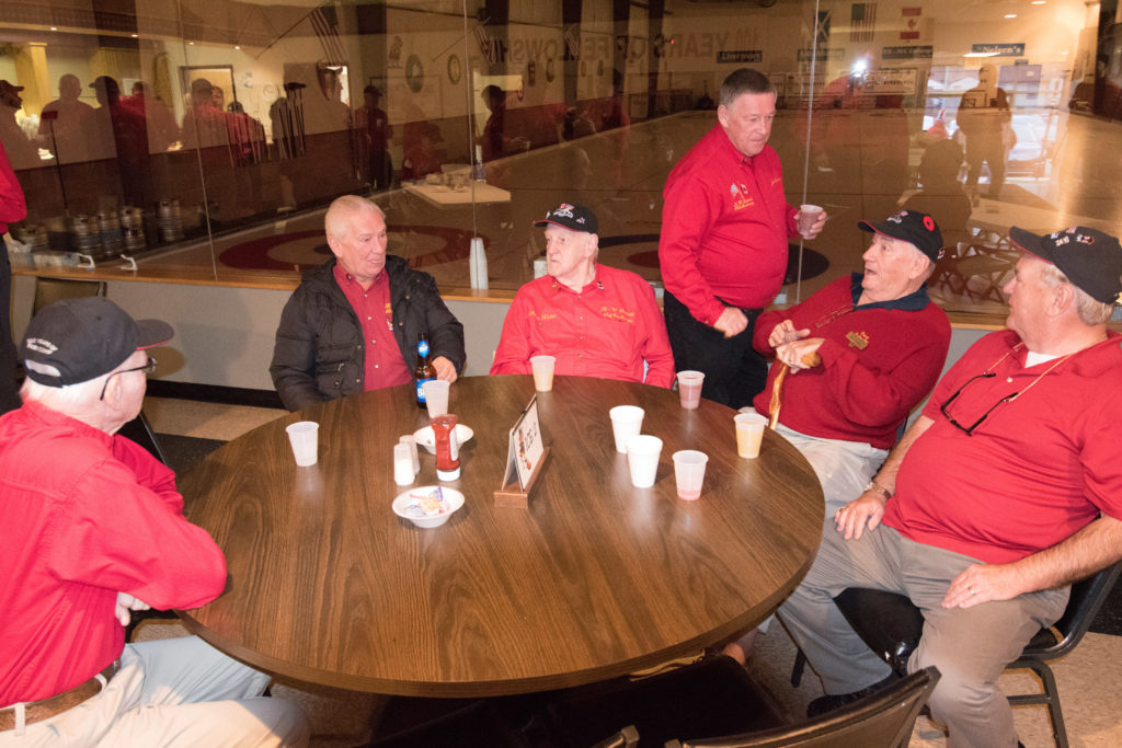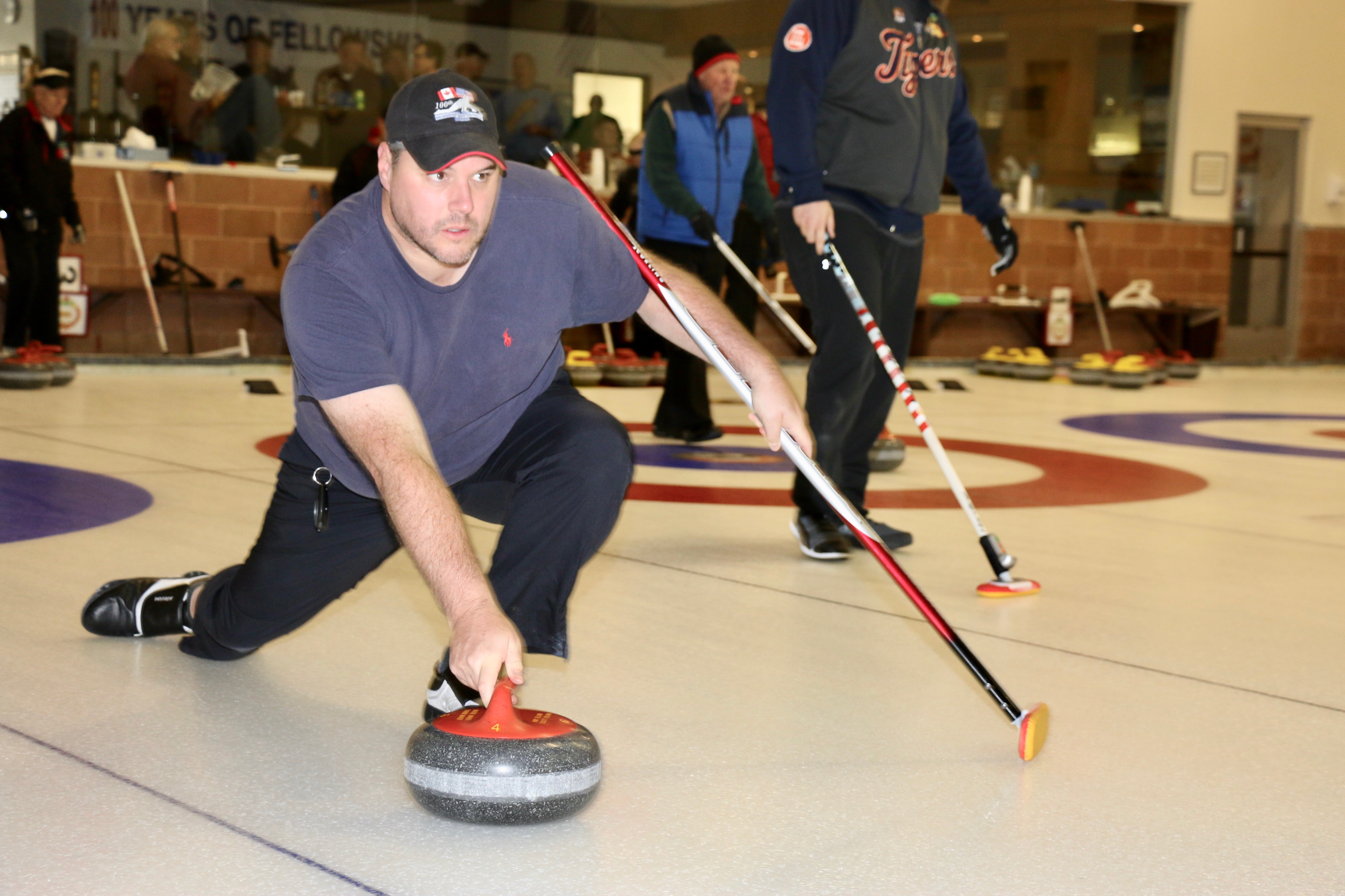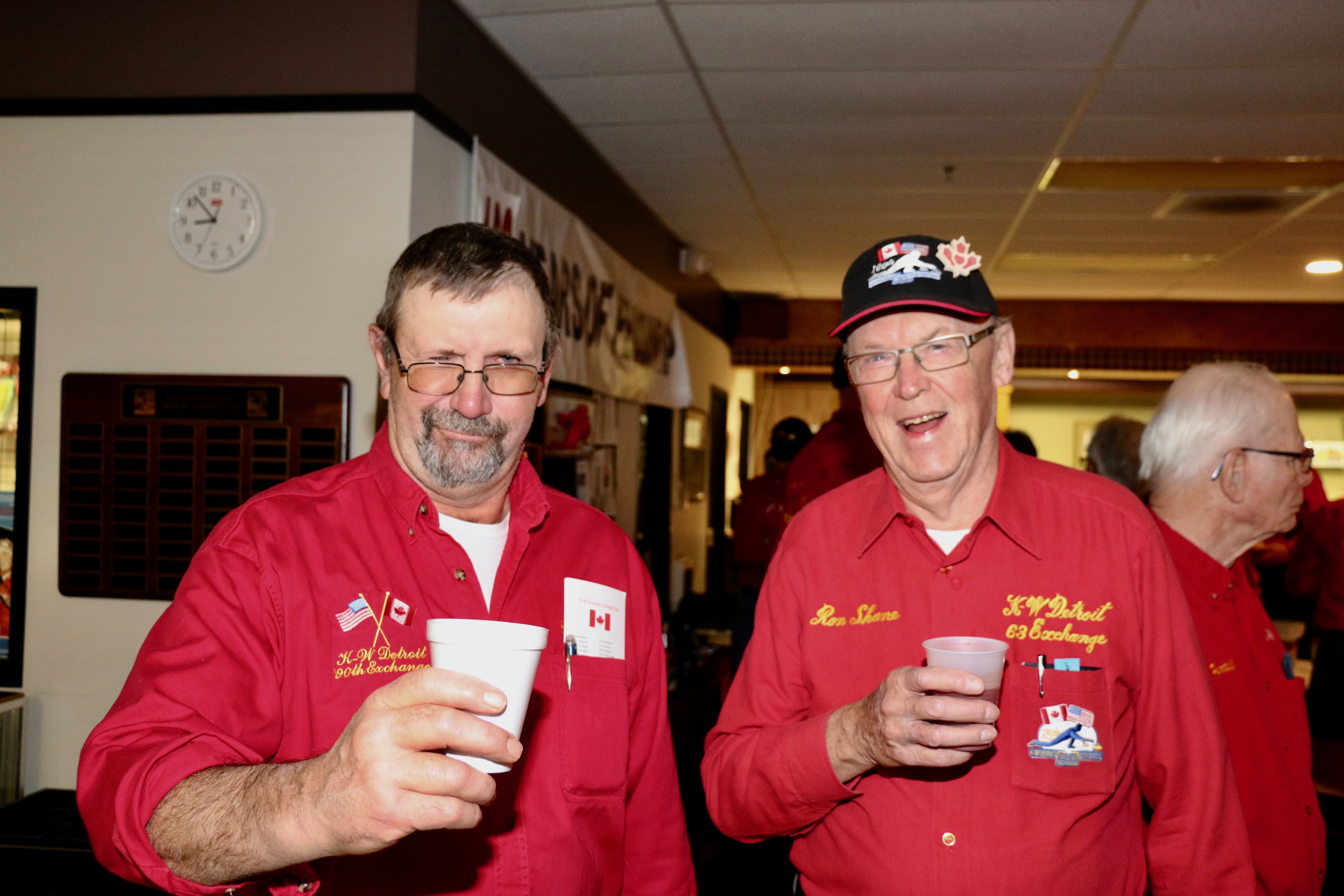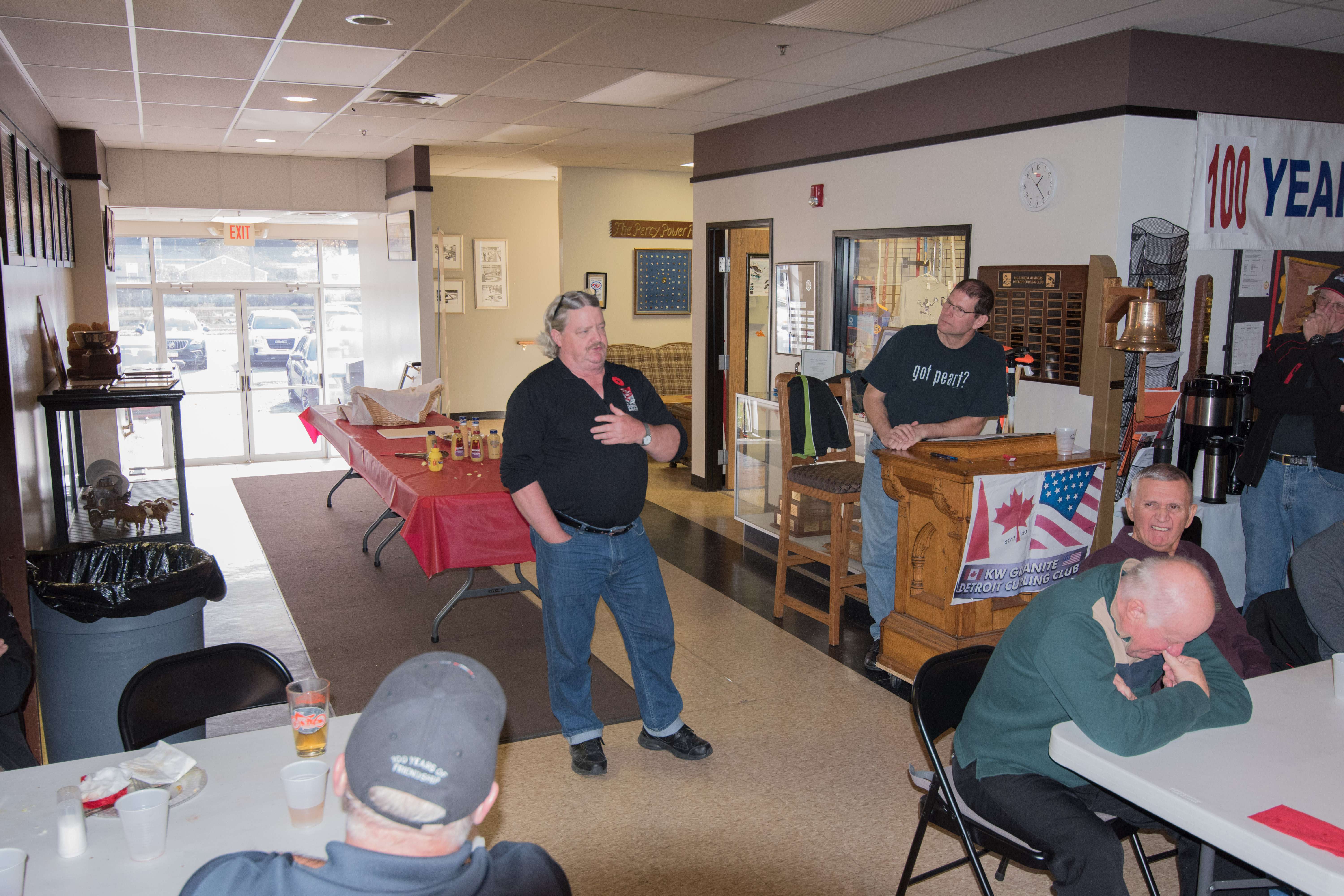 On Ice #1: Hugh Smith, Dallas Schneider, Ian Anderson, John Martin, Norm Green, Gordy Loud, Paul Sandford, Paul Carmouche and Mike RogalaOn Ice #2: Cec Hofstetter, Paul Badgero, Herb Millard, John Danckaert, Sam Kilby, Brian Gleiser, Pat Cannon and Peter HartillOn Ice #3: Matt Schumacher, Dave Hesse, Marcus Baker, Duncan Whitmore, Nate Glitman, Frank Duffey, Marty Verhoeven and Pete SylvainOn Ice #4: Luc Cormier, Kevin Bradley, Dave Nelsen, Graham Wallbank, Kevin Ingraham, Ron Boehmer, Dave Urbiel and Rick HarrisonIan Anderson wonders where his sweepers are?Showing fine form is Paul Sandford,while John Martin is ready to sweep.John Martin and Hugh Smith trying to decide whether to sweep.Sam Kilby and Pat Cannon figure this rock does not need sweeping.Will the rock curl that much Dallas?Frank Duffey with Marty Verhoeven behind.Graham Wallbank is not giving much broom for this takeout as Dave Nelsen looks on.Marcus Baker shows great form as Matt Schumacher is ready to pounce. Pete Sylvain is a little more patient.Marty reaches out to Dave NelsenNate Glitman delivers as Duncan Whitmore and Dave Hesse sweep.Luc Cormier follows the rock down the ice while Kevin Bradley and Dave Urbiel wait.Waiting behind the glassDouglas George chats with Dave CainAppropriately near the bar are the pipers and Larry AubuchonIan Anderson delivers better using a stick. Gordy Loud and Norm Green look on.Paul Badgero is telling Brian Gleiser not to sweep yet.Are you sure you want the rock there Cec?Looks like a narrow port to go through John!Big sweeping from Matt and Marcus.Did Pat and Peter sweep hard enough to make the double for Cec?Everyone is sweeping this one!A good use for a broom Cec!Ian wonders what is going on – over there?Certificate from Gov’t of Canada signed by TrudeauState of Michigan certificateDan Glendinning, Leroy Bliven, John MacDonald and Jim RenaudBob MacMillan and Nick YamburaI see you too Jerry!Don Sloat and Ken ZyrdJoe Livermore and John SpencerJim Morris being interviewed by Fox Sports – see video clipRichard Lepping being interviewed.Is that stick hollow Bob?Bret and John in front 100th bannerTeams getting ready for the second draw in the morningDave Cain, Mike Rogala, Nick Yambura, Duncan Whitmore, Gerry Dolff, Ken Romanik and Kevn Ingraham.At 11am the Last Post was played by boy scout Matthew McDonnell and his father Sean. There wasn’t a dry eye in the clubDallas Schneider with Matthew and SeanYou are supposed to stretch after you exercise Dan!Brett Dubrick ready to deliverDave wonders where all the rocks came from?Duncan is a little shakeySam is focusedDave is determinedGreat style BrettPaul has his eyes on the broomGreat stick delivery from LesKevin rests between shotsJoe is in charge of the houseVac deliversYou are supposed to look at the broom Jim!Kevin & Gerry sweep hardNich has great style in delivery and clothesI guess all that stretching before the game worked for Dan!Unlike his brother, Bill is focused on the broom.He is still focused on the broom!