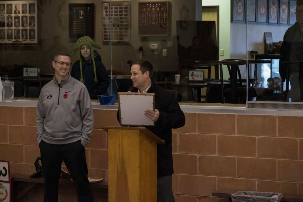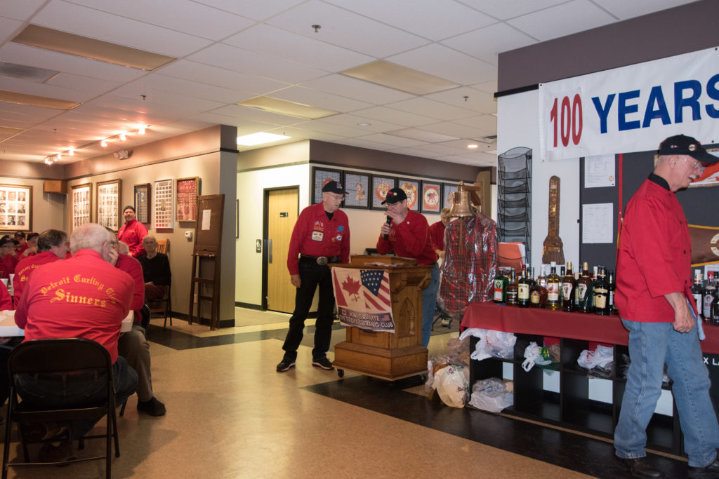 The second half of the 100th anniversary celebrations took place at the Detroit Curling club November 10-12, 2017. The curlers from the Kitchener – Waterloo area came down by bus. It had been a number of years since a bus had been chartered. It was a relaxing way to travel, not having to worry about the driving. Our driver, Hannah did a great job. Many thanks to the crew who provided the lunch and beverages on the bus. The Detroit Curling club members hosted a fine weekend. The shuttle buses on Friday night to the hospitality location and to the dinner on Saturday night were much appreciated.