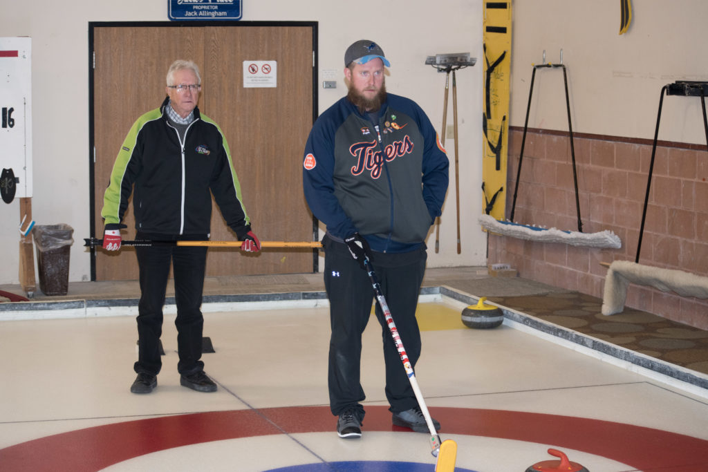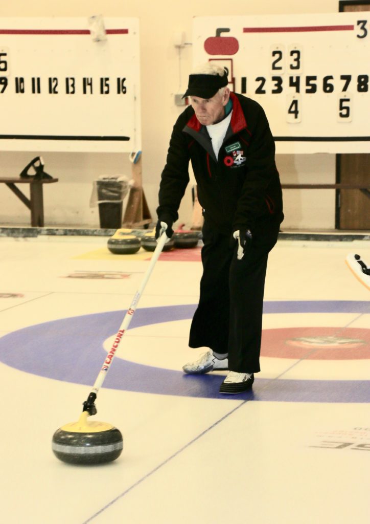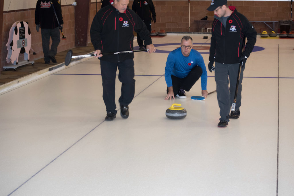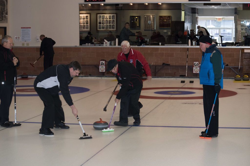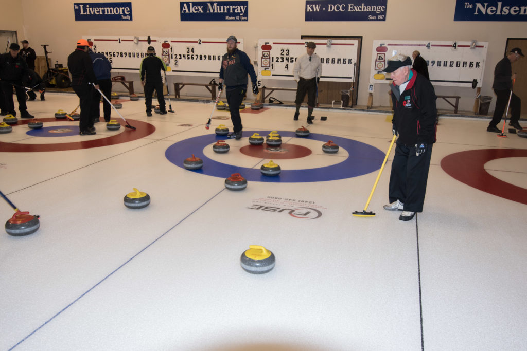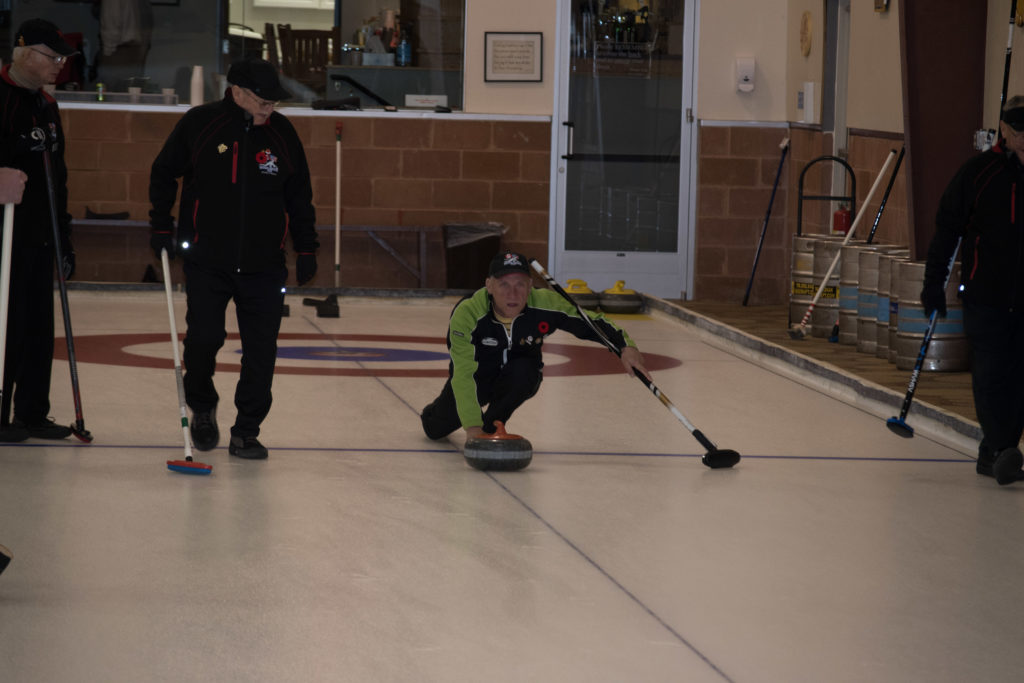 On sheet 1: Dan Glendinning, Dave Turner, Chuck Thomas, Rick Harrison, Larry Aubuchon, Peter Hartill, Herb Millard and Cec HofstetterOn Sheet 2: Joe Buchanan, John Spencer, Joe Mulheron, Jim Morris, Marcus Baker, Les Houston, Luc Cormier and Pete SylvainNorm Green, Brian Gleiser, Ian Anderson, Luc Cormier, Kevin Bradley, Mike Rogala, Matt Schumacher, Gerry Dolff and Brett DubrickDoug Adams, John Macdonald, Gordy Loud, Nate Glitman, Duncan Whitmore, Dave Urbiel, Vac Trebacz and John MartinDid Larry let go of the rock before the hog line?Great follow through Marcus!Looks like Norm’s rock is going to need sweeping.Duncan holds the broom while Doug keeps an eye on things.Cant you get any lower Matt? Gerry has the right idea.John keeps his balance with a stick delivery.Matt delivers!Good form Jim.Unlike Ian to throw it light!