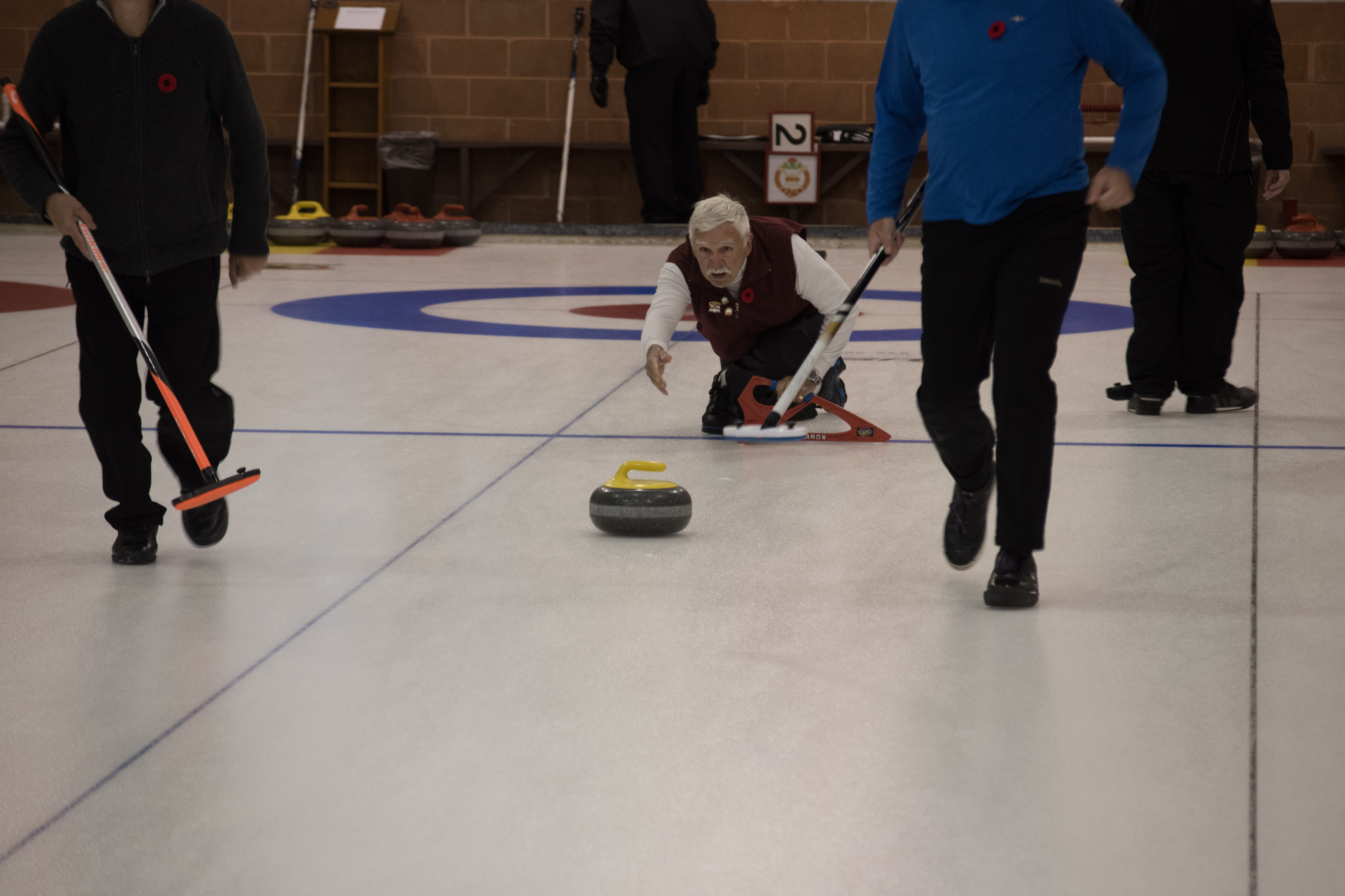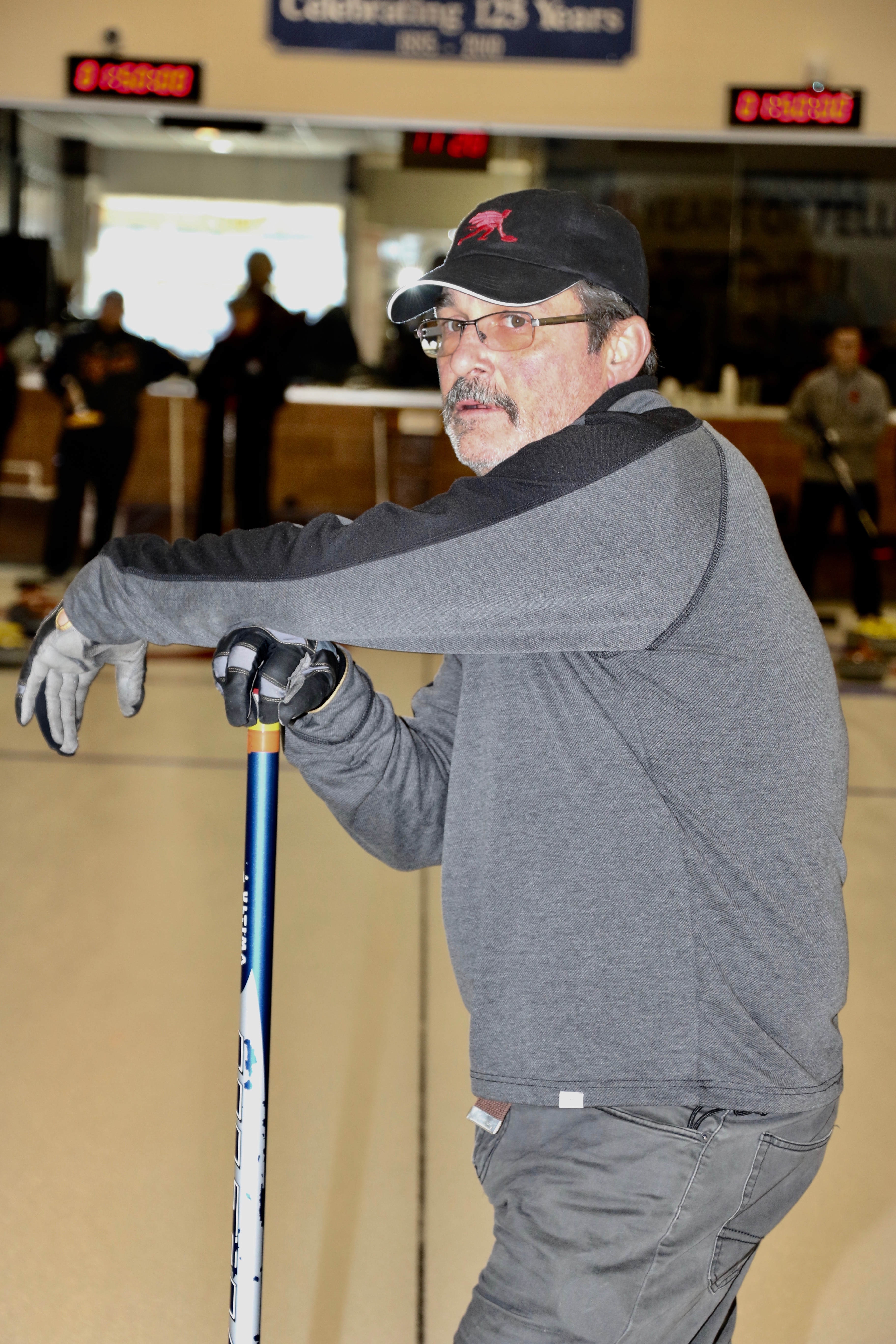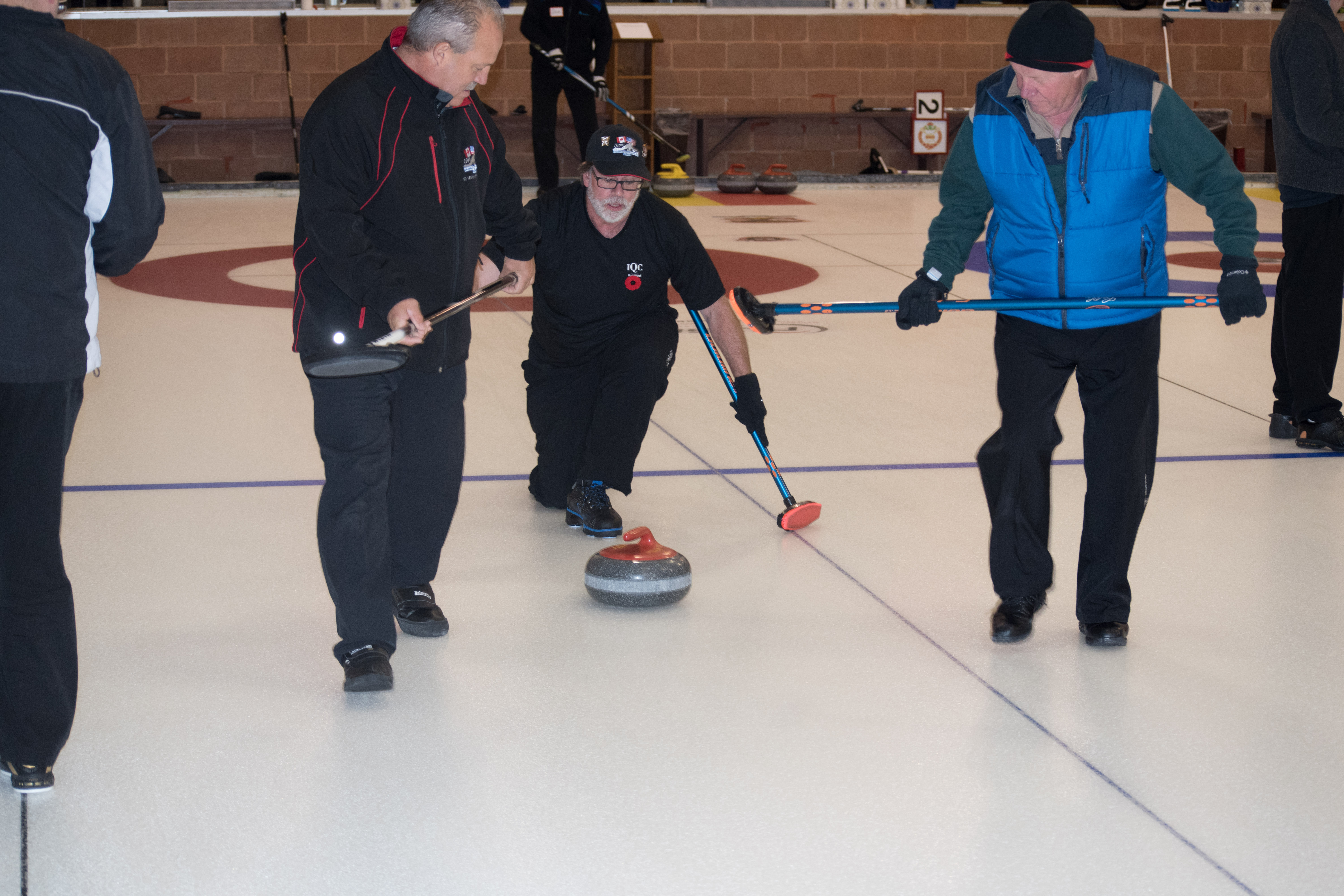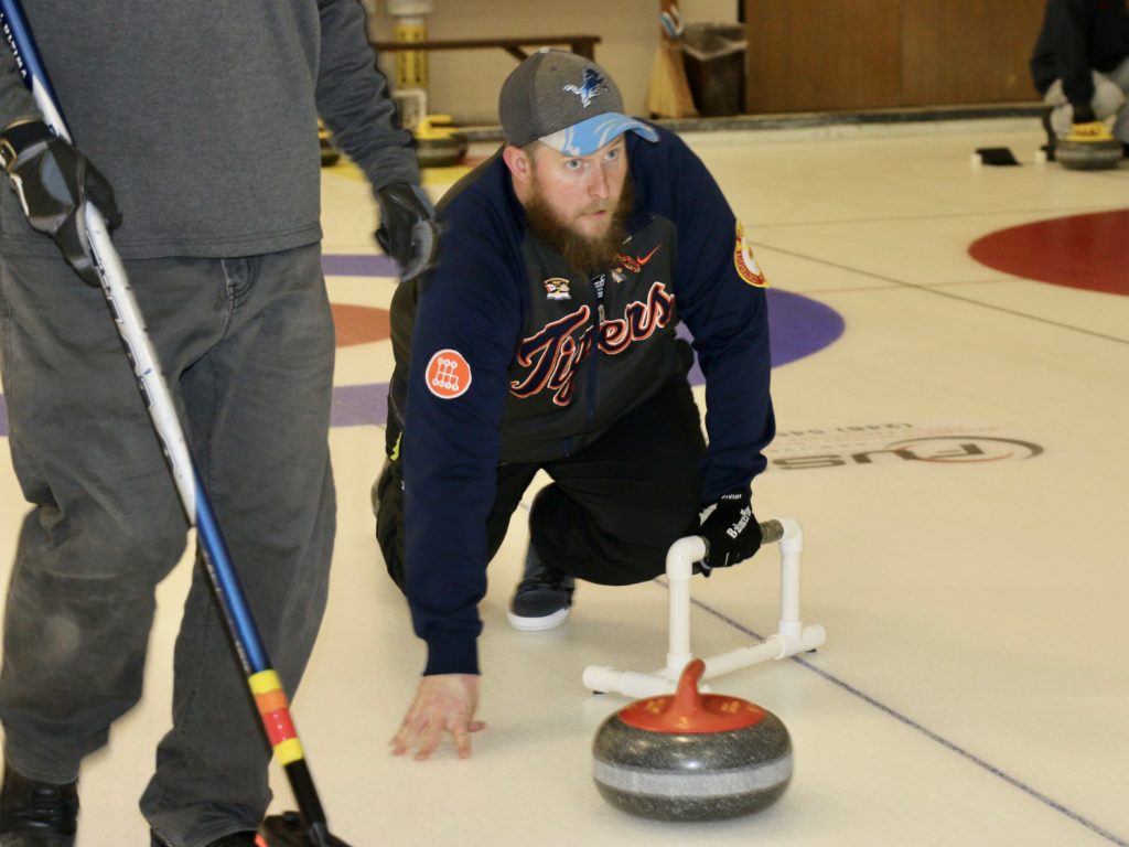 On sheet 1: Dan Glendinning, Dave Turner, Chuck Thomas, Rick Harrison, Larry Aubuchon, Peter Hartill, Herb Millard and Cec HofstetterOn Sheet 2: Joe Buchanan, John Spencer, Joe Mulheron, Jim Morris, Marcus Baker, Les Houston, Luc Cormier and Pete SylvainNorm Green, Brian Gleiser, Ian Anderson, Luc Cormier, Kevin Bradley, Mike Rogala, Matt Schumacher, Gerry Dolff and Brett DubrickDoug Adams, John Macdonald, Gordy Loud, Nate Glitman, Duncan Whitmore, Dave Urbiel, Vac Trebacz and John MartinDid Larry let go of the rock before the hog line?Great follow through Marcus!Looks like Norm’s rock is going to need sweeping.Duncan holds the broom while Doug keeps an eye on things.Cant you get any lower Matt? Gerry has the right idea.John keeps his balance with a stick delivery.Matt delivers!Good form Jim.Unlike Ian to throw it light!
