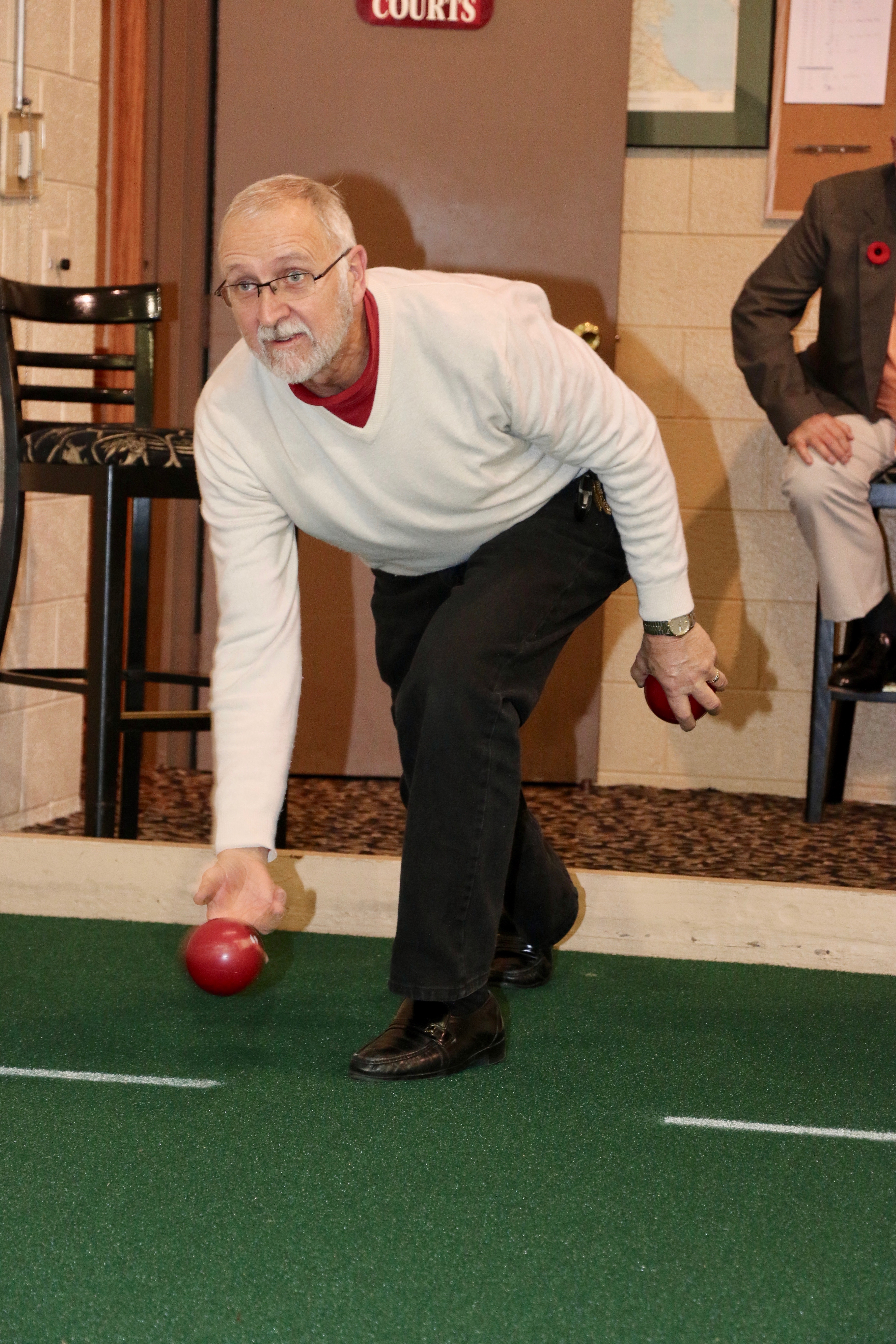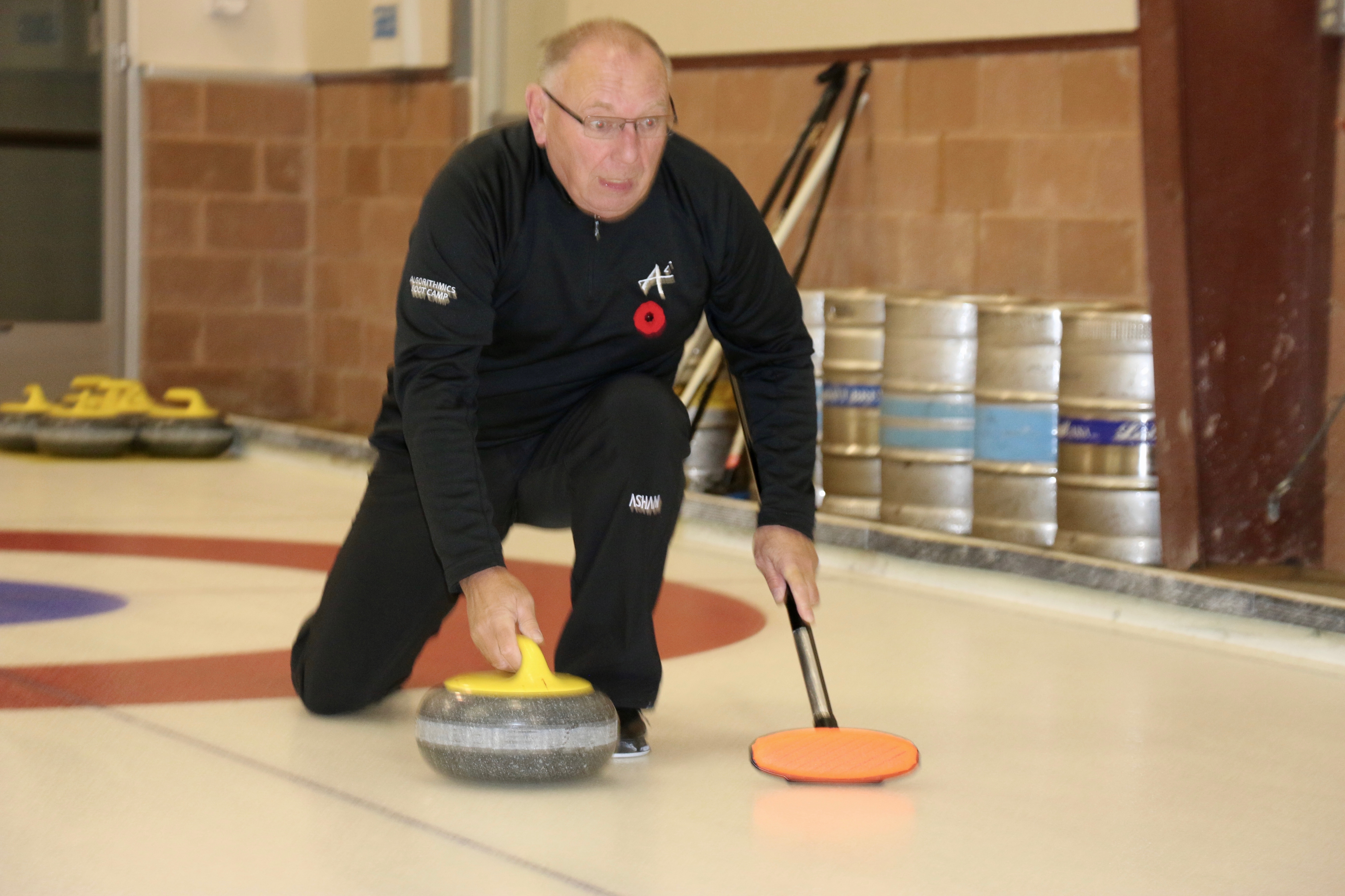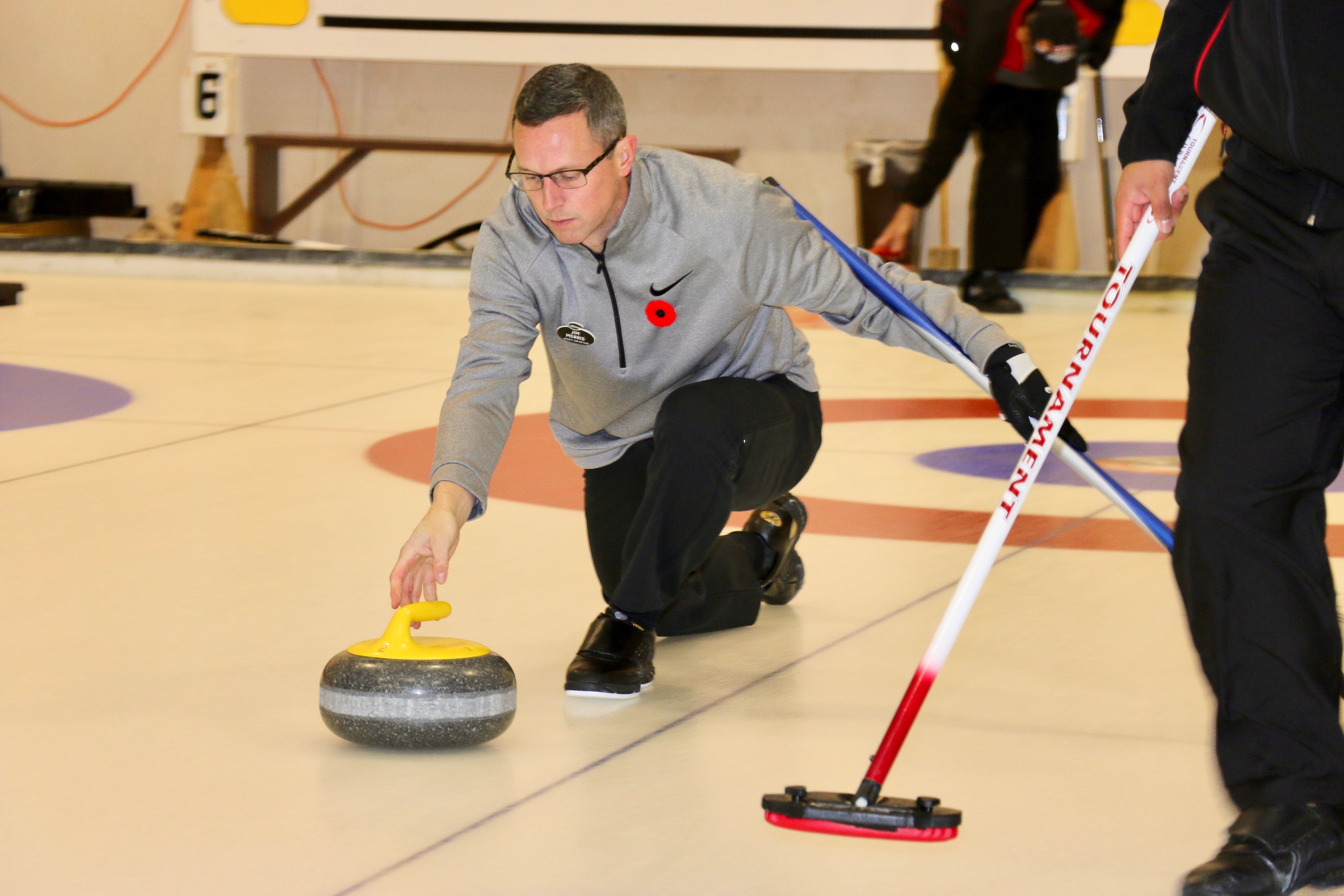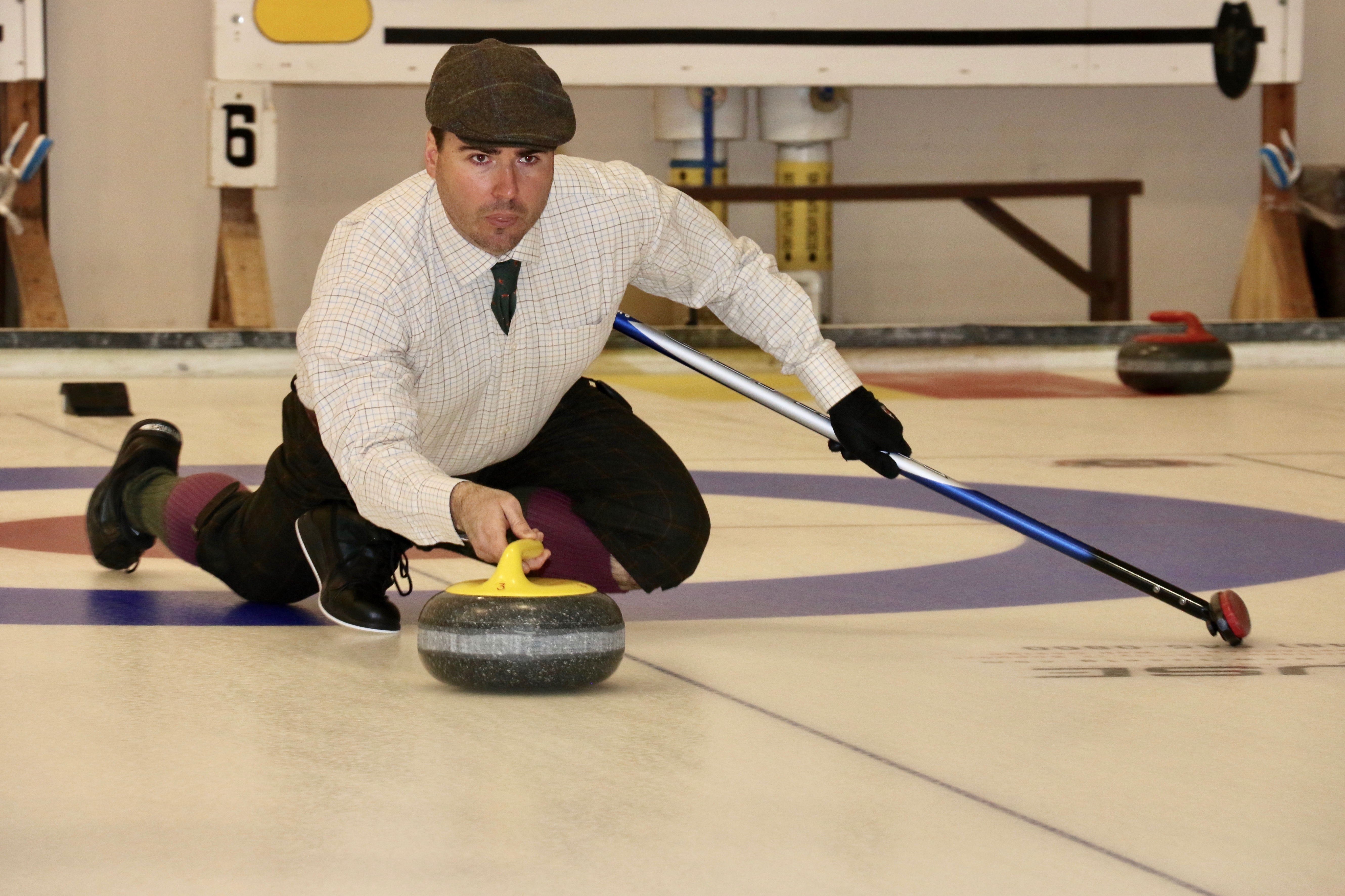On sheet 1: Dan Glendinning, Dave Turner, Chuck Thomas, Rick Harrison, Larry Aubuchon, Peter Hartill, Herb Millard and Cec HofstetterOn Sheet 2: Joe Buchanan, John Spencer, Joe Mulheron, Jim Morris, Marcus Baker, Les Houston, Luc Cormier and Pete SylvainNorm Green, Brian Gleiser, Ian Anderson, Luc Cormier, Kevin Bradley, Mike Rogala, Matt Schumacher, Gerry Dolff and Brett DubrickDoug Adams, John Macdonald, Gordy Loud, Nate Glitman, Duncan Whitmore, Dave Urbiel, Vac Trebacz and John MartinDid Larry let go of the rock before the hog line?Great follow through Marcus!Looks like Norm’s rock is going to need sweeping.Duncan holds the broom while Doug keeps an eye on things.Cant you get any lower Matt? Gerry has the right idea.John keeps his balance with a stick delivery.Matt delivers!Good form Jim.Unlike Ian to throw it light!