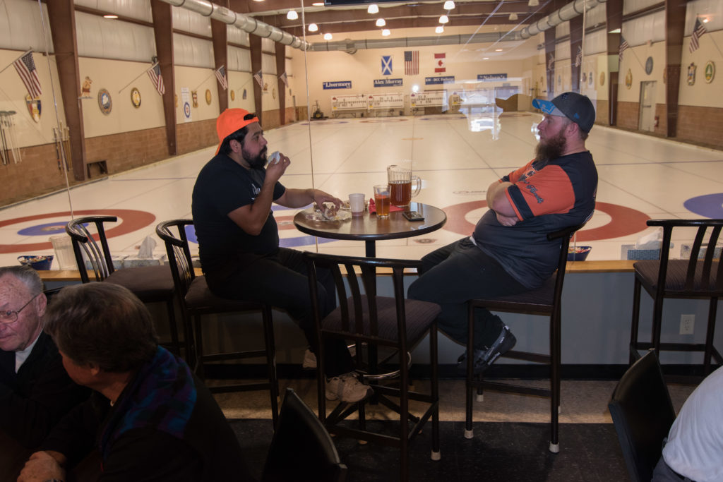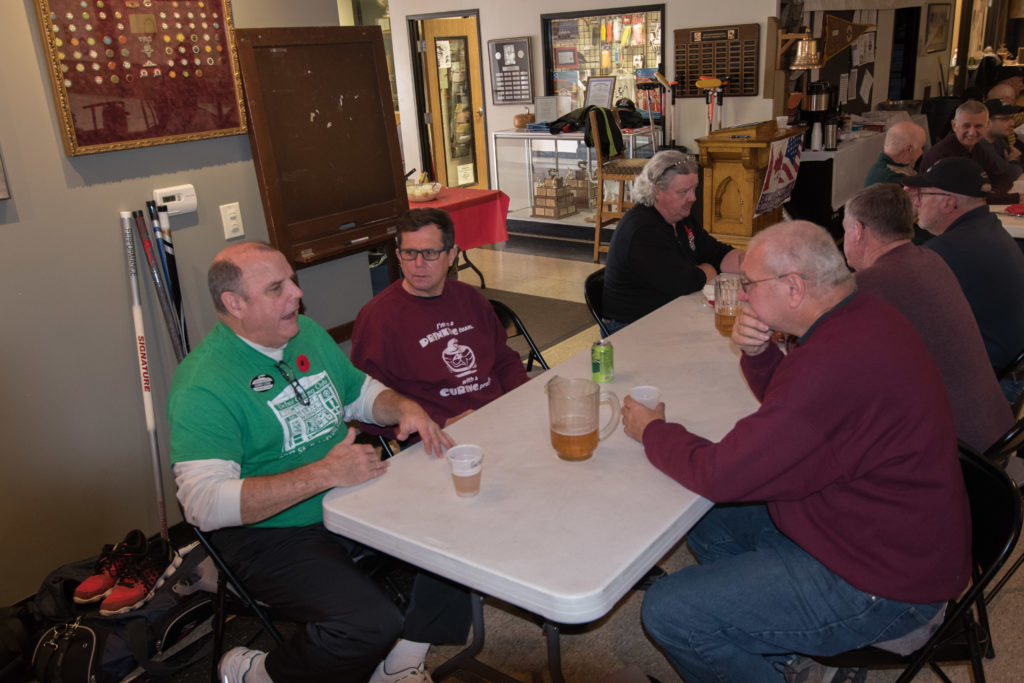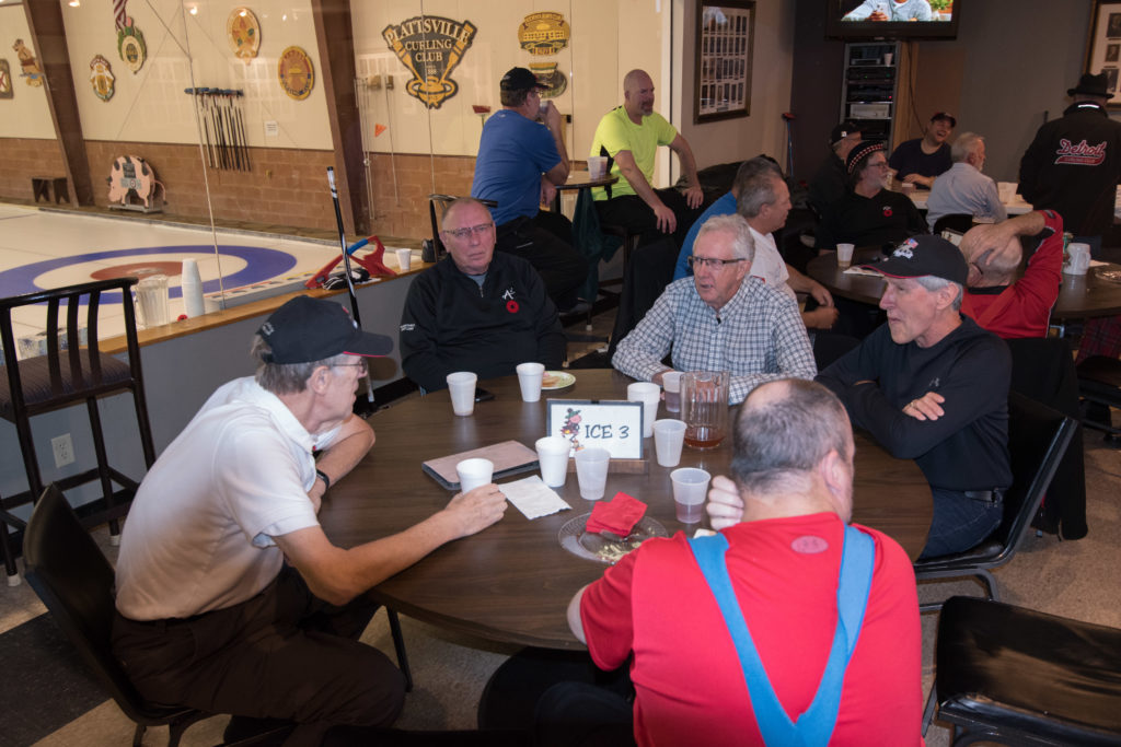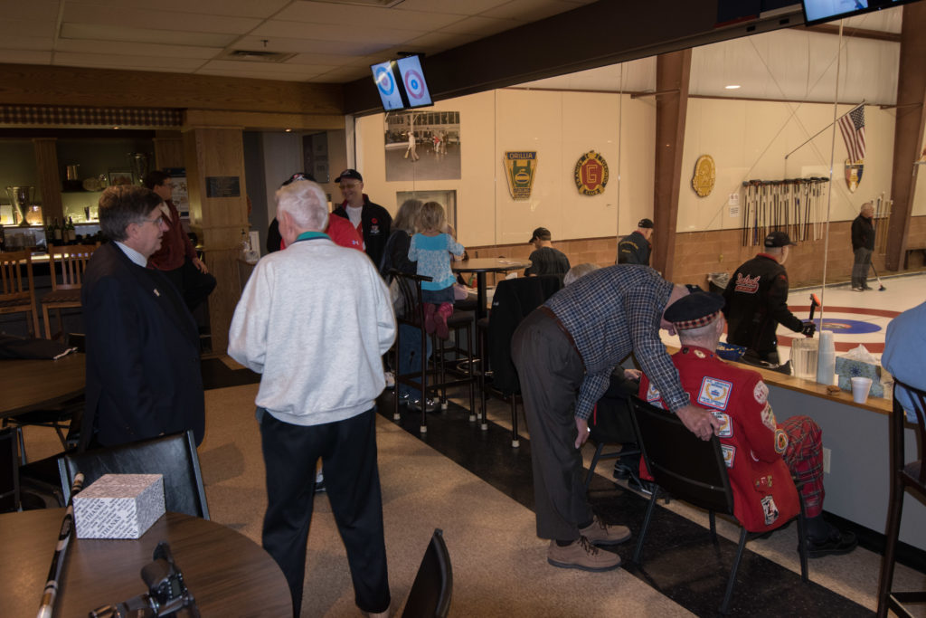 Enjoying the food are clockwise from the bottom: Dave Urbiel, Duncan Whitmore, Les Houston, Norm Green, Gerry Dolff and Marty Verhoeven (who has something caught in his teeth)On the left: Kevin Bradley and Peter Knipfel have an early in the evening serious conversation while Steve Rietz and Dave Cain work out teams for the next day.Don Sloat, Peter Hartill, Don Fanstone and Ron Shane.At the bar: Ian Anderson, Matt Schumacher and Ron BoehmerRick Harrison, John Martin and John SpencerA happy Cec Hofstetter returns with some food and a drink. At the table Jeff DeNeen listens intently to Doug Adams.In the foreground Dave Cain and Steve Rietz make revisions to the teams for tomorrow’s games. Herb Millard, Brian Gleiser, Joe Buchanan and Marcus Baker.Clockwise from bottom are: Jim Renaud, Ken Zyrd, Paul Sandford, Jim Dennison and Dave Hesse.Clockwise from bottom: Duncan Whitmore, Rick Harrison, Norm Green, Gerry Dolff, Marty Verhoeven, Dave Urbiel and Alex Sanchez.Dave Nelsen tries to make friends with Jim Morris and Larry AubuchonMike Rogala, Sam Kilby listen to the laid back Damien BuchkowskiAt the bar are: Dallas Schneider, Rick Harrison, Paul Gaines and the lean Frank DuffeyCec Hofstetter and Doug AdamsIan Anderson being introduced to the chairman of the US Curling Association Richard LeppingGraham Wallbank, Dallas Schneider and Rick HarrisonPaul Gaines attempts to inform those gathered about the schedule for the following day.A very happy Dallas SchneiderChris Zahorec chats with Steve Rietz.Hovering around the bar are: Doug Adams, Keven Bradley, Jim Dennison, Brett Dubrick, Matt Schumacher and Rick Harrison.These guys must have just passed the bar exam! Doug Adams, Kevin Bradley, Jim Dennison and Matt SchumacherBrett Dubrick, Rick Harrison, Graham Wallbank and Doug AdamsDallas Schneider is either leaving or cold as he talks to Peter KnipfelJoe Bonfoey and Ian AndersonChris Zahorec and Steve Rietz