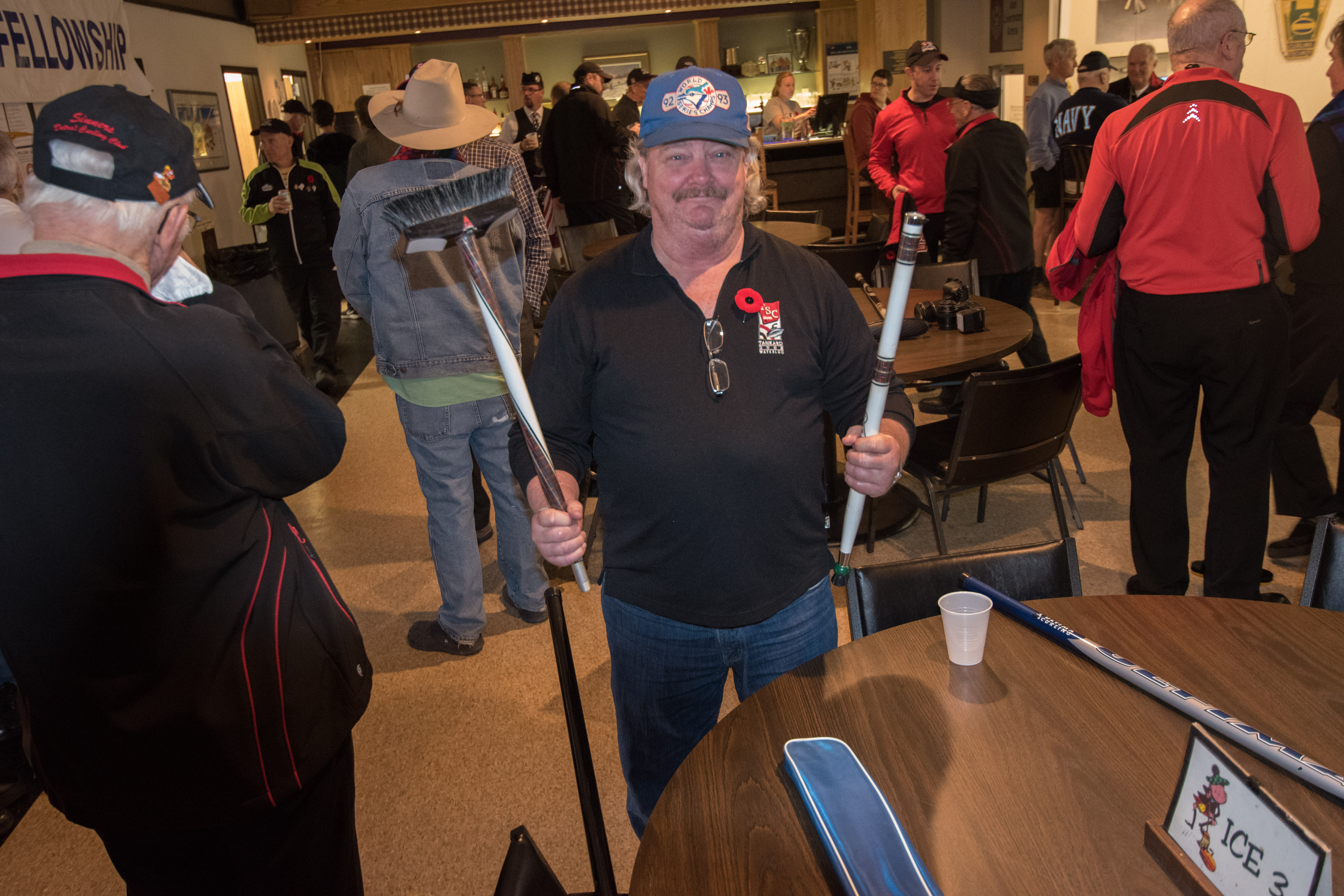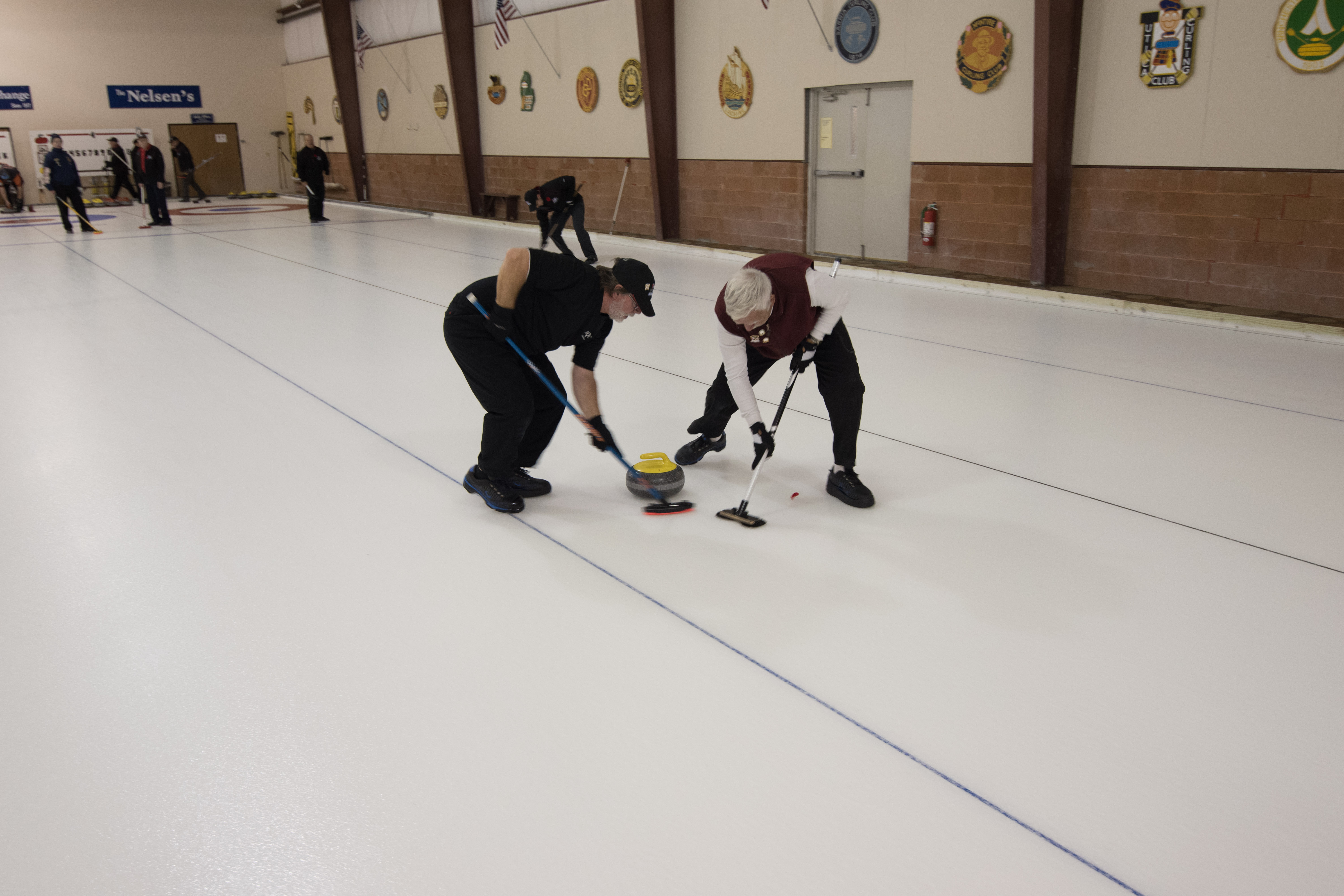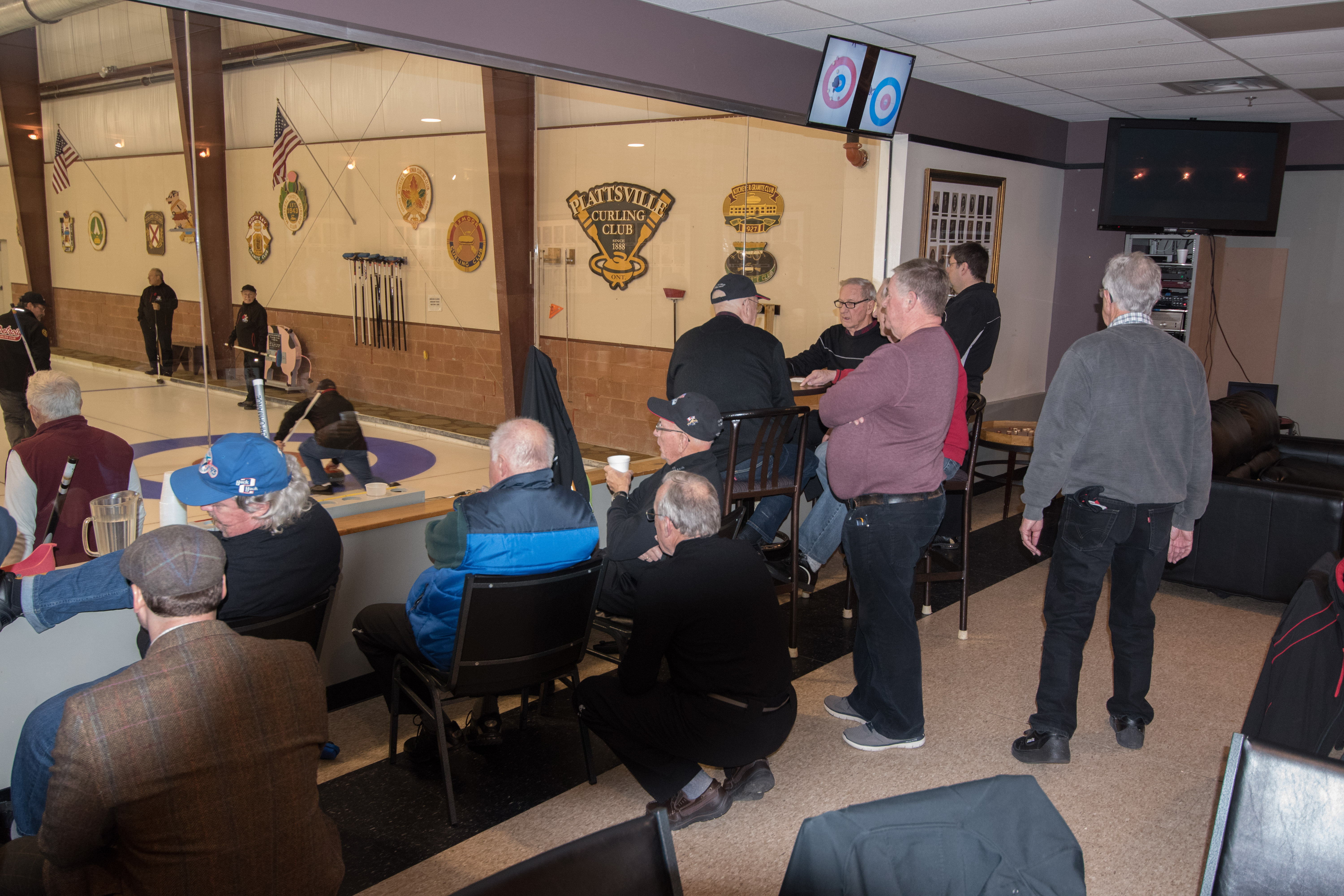 Enjoying the food are clockwise from the bottom: Dave Urbiel, Duncan Whitmore, Les Houston, Norm Green, Gerry Dolff and Marty Verhoeven (who has something caught in his teeth)On the left: Kevin Bradley and Peter Knipfel have an early in the evening serious conversation while Steve Rietz and Dave Cain work out teams for the next day.Don Sloat, Peter Hartill, Don Fanstone and Ron Shane.At the bar: Ian Anderson, Matt Schumacher and Ron BoehmerRick Harrison, John Martin and John SpencerA happy Cec Hofstetter returns with some food and a drink. At the table Jeff DeNeen listens intently to Doug Adams.In the foreground Dave Cain and Steve Rietz make revisions to the teams for tomorrow’s games. Herb Millard, Brian Gleiser, Joe Buchanan and Marcus Baker.Clockwise from bottom are: Jim Renaud, Ken Zyrd, Paul Sandford, Jim Dennison and Dave Hesse.Clockwise from bottom: Duncan Whitmore, Rick Harrison, Norm Green, Gerry Dolff, Marty Verhoeven, Dave Urbiel and Alex Sanchez.Dave Nelsen tries to make friends with Jim Morris and Larry AubuchonMike Rogala, Sam Kilby listen to the laid back Damien BuchkowskiAt the bar are: Dallas Schneider, Rick Harrison, Paul Gaines and the lean Frank DuffeyCec Hofstetter and Doug AdamsIan Anderson being introduced to the chairman of the US Curling Association Richard LeppingGraham Wallbank, Dallas Schneider and Rick HarrisonPaul Gaines attempts to inform those gathered about the schedule for the following day.A very happy Dallas SchneiderChris Zahorec chats with Steve Rietz.Hovering around the bar are: Doug Adams, Keven Bradley, Jim Dennison, Brett Dubrick, Matt Schumacher and Rick Harrison.These guys must have just passed the bar exam! Doug Adams, Kevin Bradley, Jim Dennison and Matt SchumacherBrett Dubrick, Rick Harrison, Graham Wallbank and Doug AdamsDallas Schneider is either leaving or cold as he talks to Peter KnipfelJoe Bonfoey and Ian AndersonChris Zahorec and Steve Rietz
