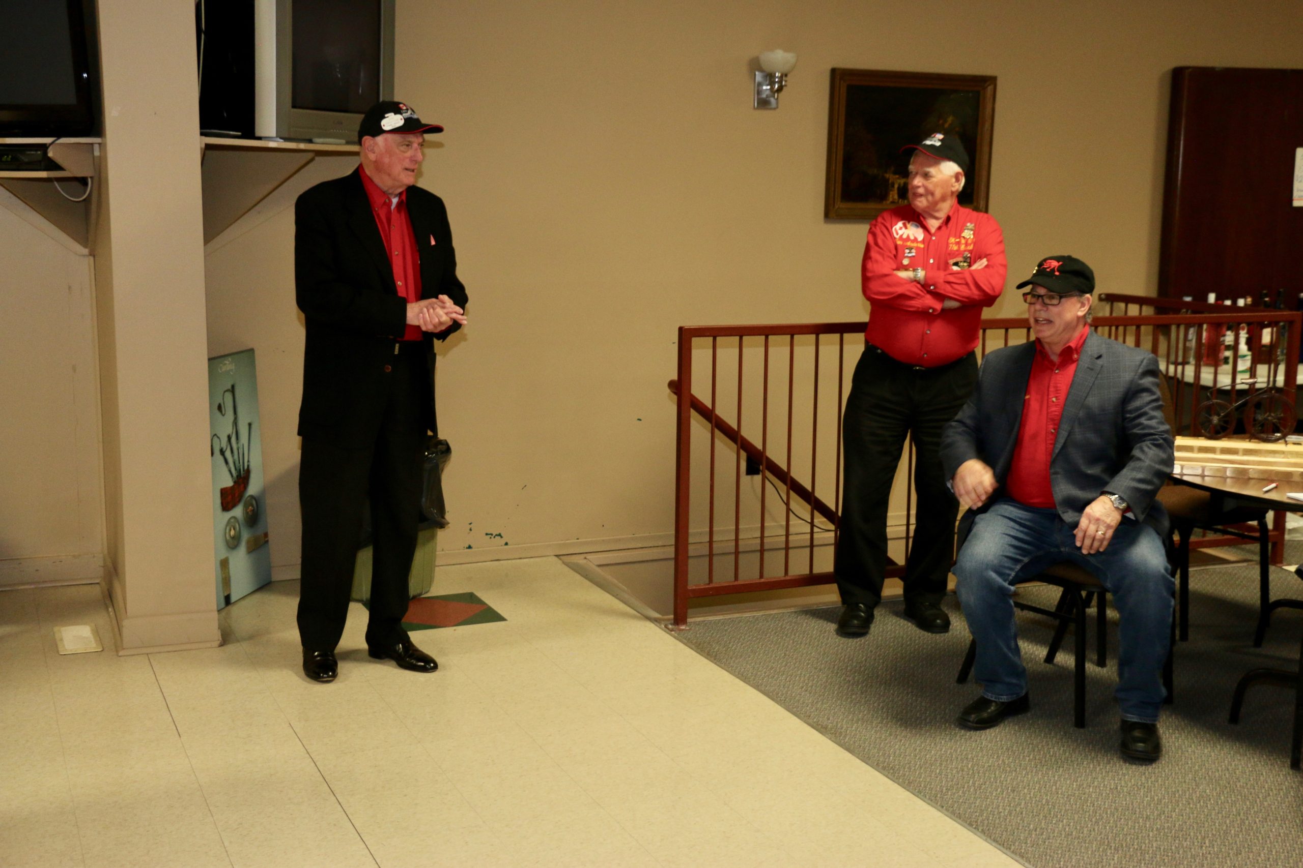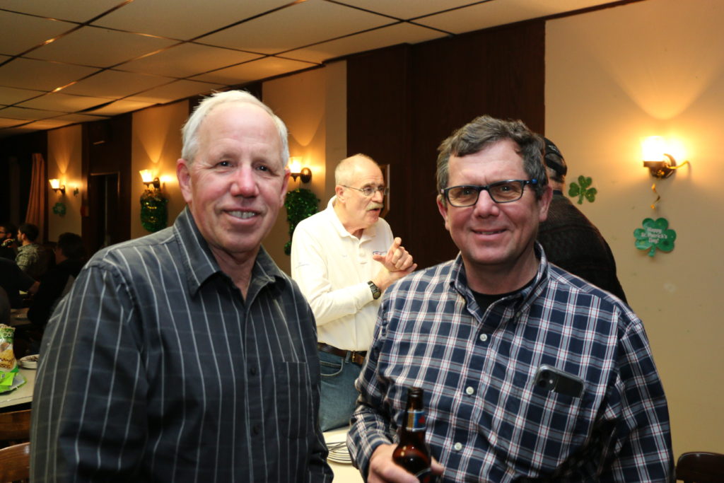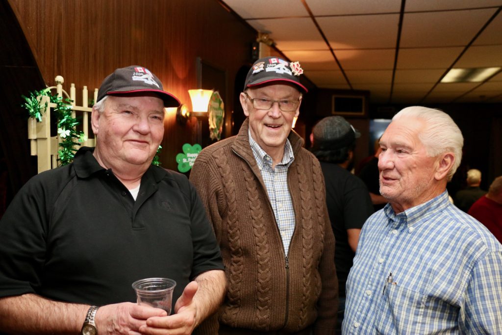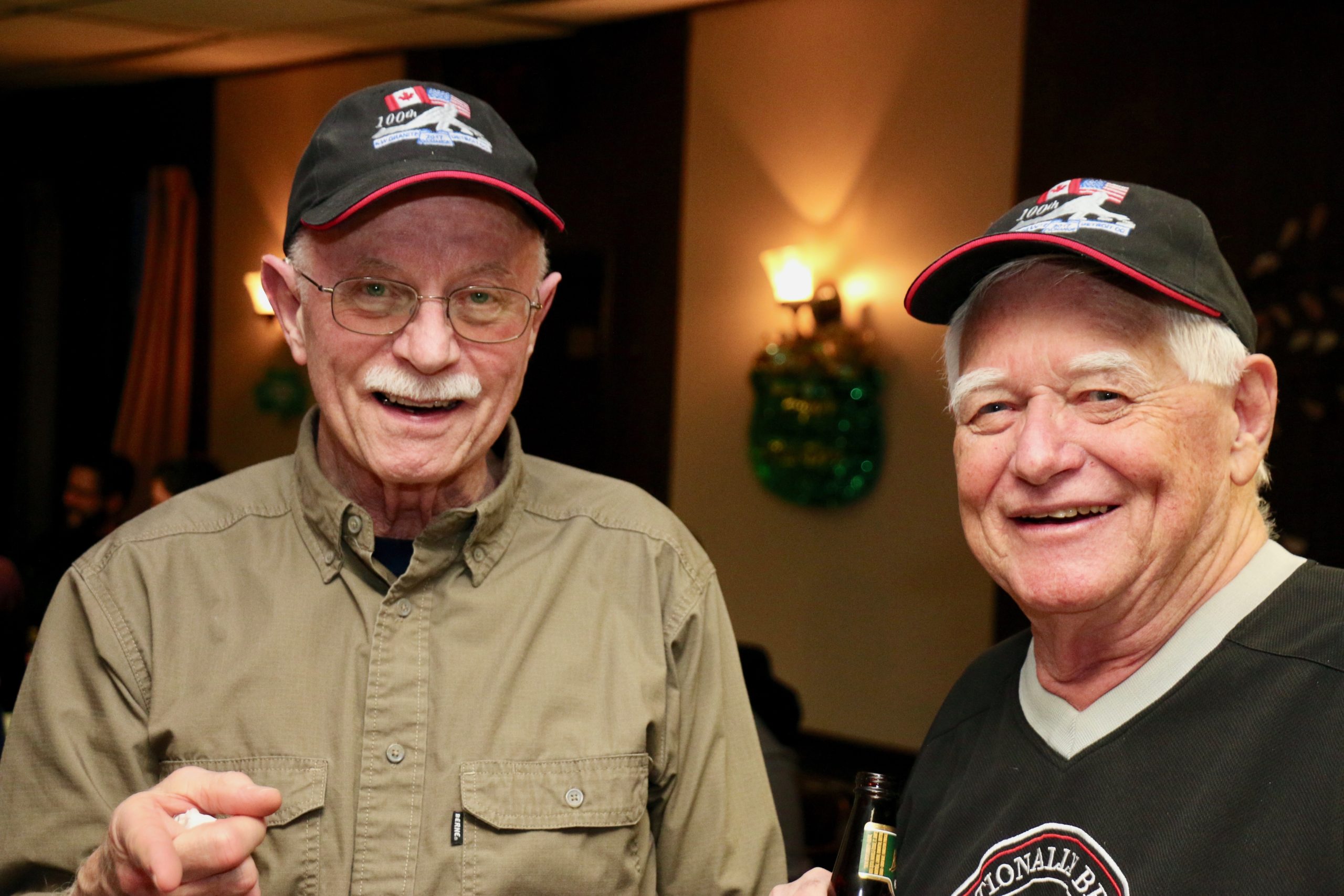 Ed and Harry in 1987Friday Hospitality:This is a touching moment but Paul and John should probably not be touching!Crash Jim joins us from Halifax, in lieu of Super Dave Osborn. Ron & Paul are in awe!Ben & Damien think that they have aiming fluid – wait until the curling tomorrow!A couple of oldtimers – Dallas & Ian – they still have their own teeth – we think!Steve & Duncan sit. Alex, Sam, Larry and Jeff stand. Bring in the clowns!Duncan is making sure the photographer is not up to any dirty tricks while Kevin makes sure he clinks Duncan’s bottle without breaking it!. Jeff & Gordy hang back!Bill (the mouth) with Dave & KW newbies – Cody & Scott – here tonight – gone tomorrow!Les & Jim – here’s the door MattThe Ben he saved or the Ben he urned!Jim, Cec & Bill. – We three kingsJim (one of the fallen), Doug, Kevin & AlexThe two Cs: Carl and what’s upChuckAll smiles are Leroy & more or LesSaturday Curling:Matt, Jeff, Alex, Damien, Duncan, Luc, Paul, Ian and Dave