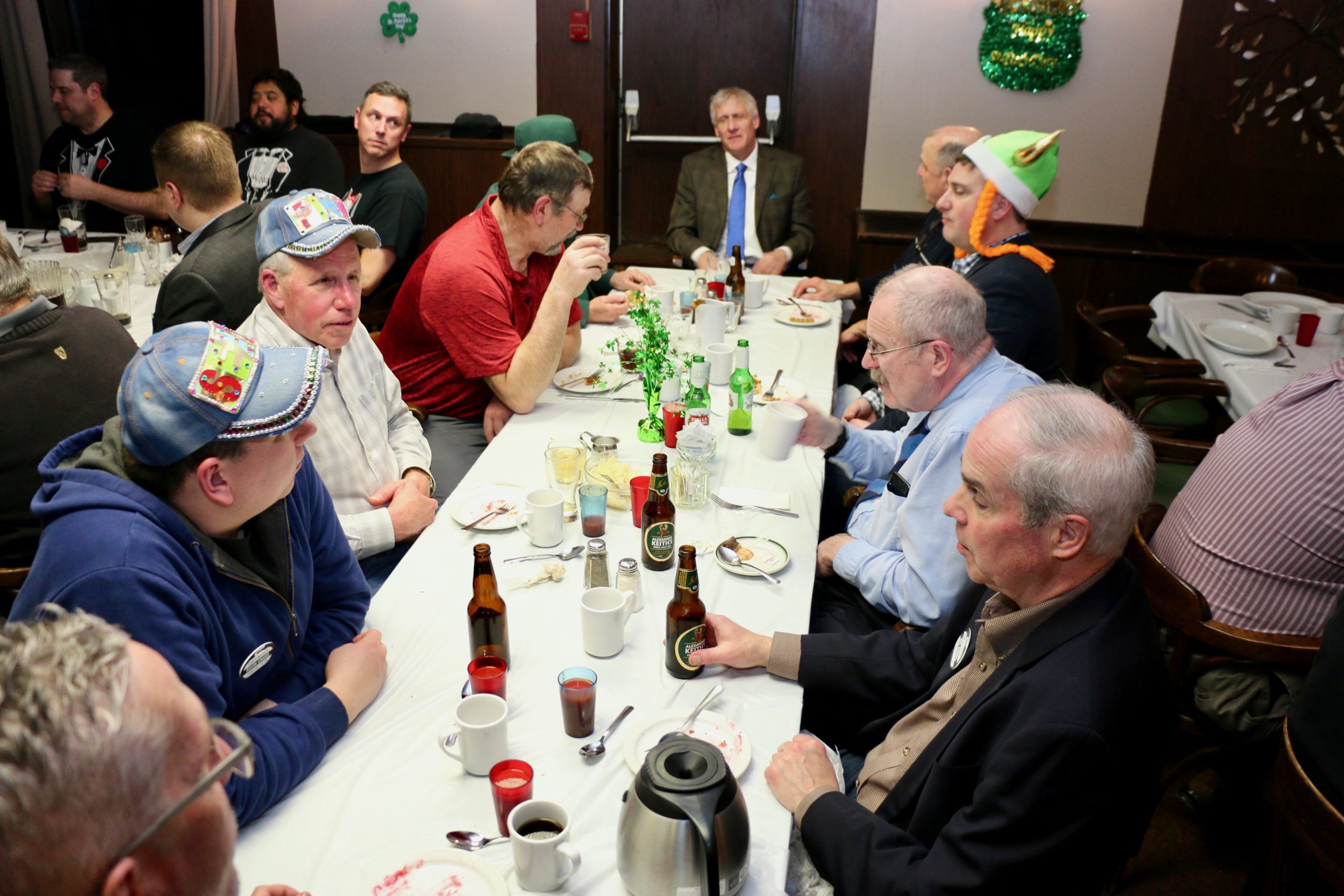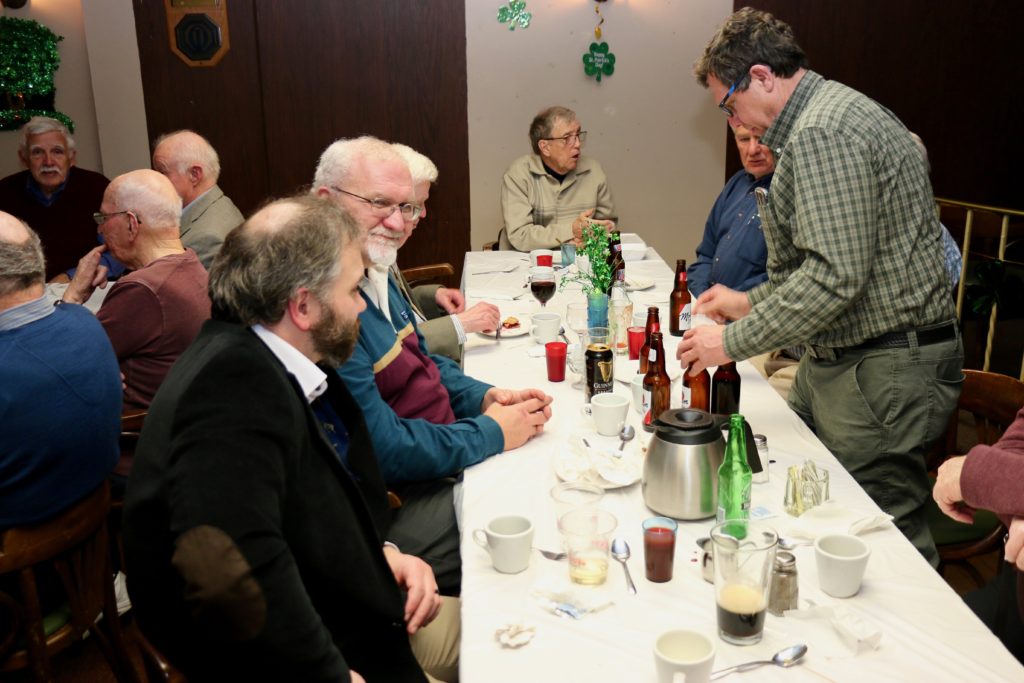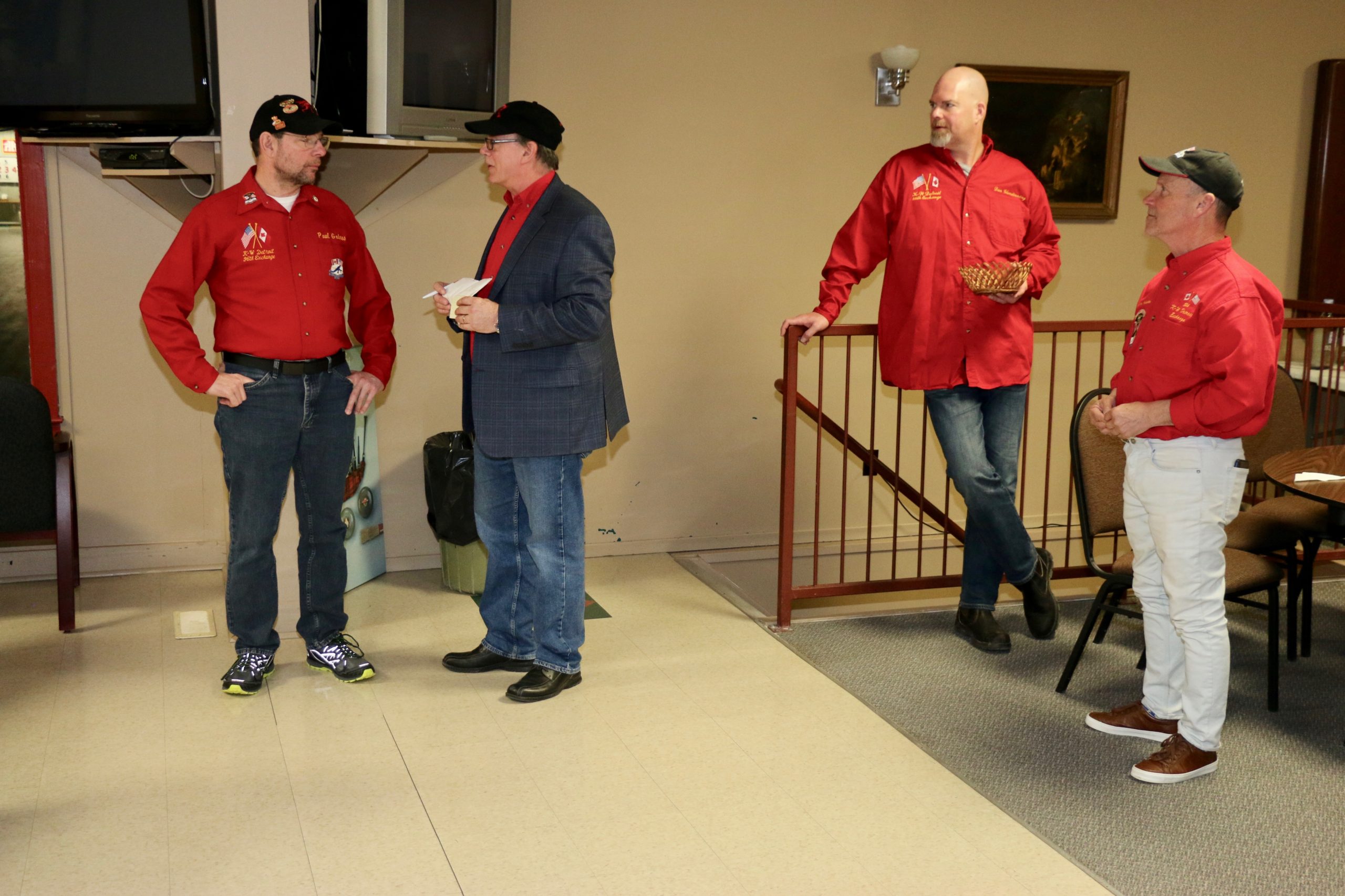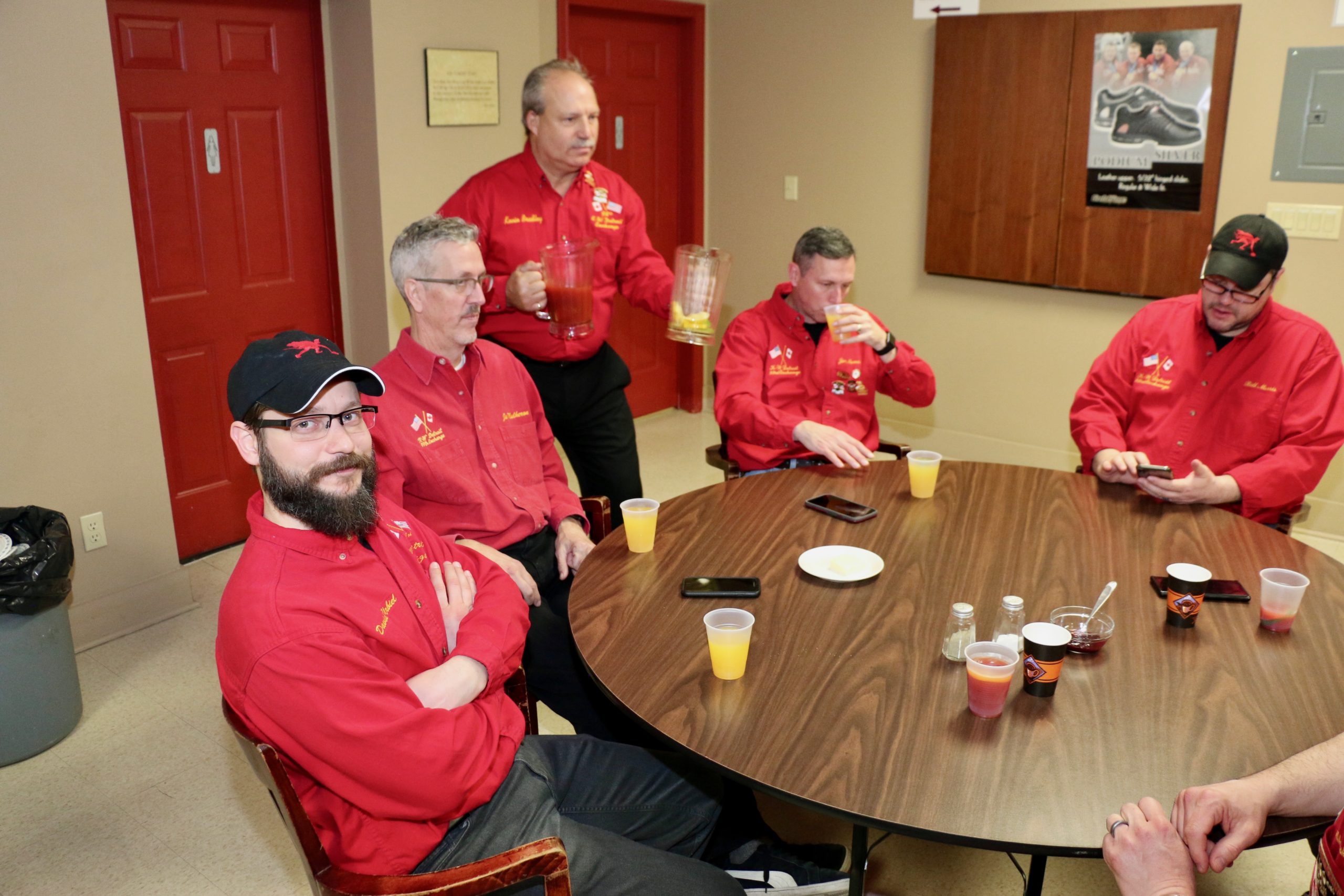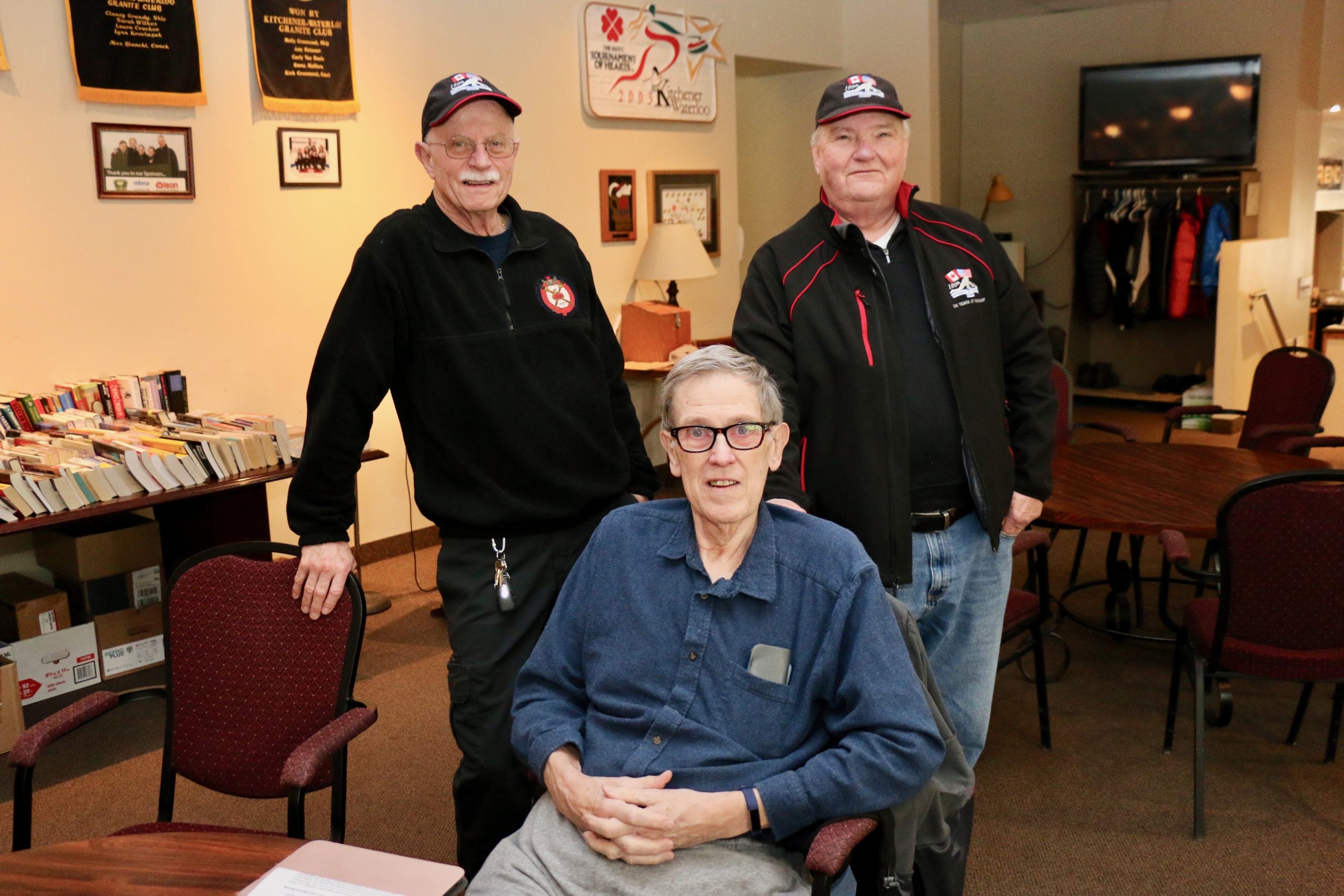 Carl, John, Brett, Bob, Paul, Sam, Joe & SteveCoaching behind the glass were the Dallas Cowboys: Dallas, Frank and JimPaul hacking it.At least they are not using their middle fingers, Ben, Tobby (Braidy bunch) & DamienGerry, Larry, Kevin & Paul (the Gerrycant’s)Cec is hoping for a double – how do I get the stick out?John, Dave (Able to raise Cain) & LeroyIan must be losing as he grits his teeth! Brian, Ian (true grit) and DuncanStack the brooms after 4 ends:Dan explains why Detroit was so far behind after the first four ends. Listening intently are clockwise from Dan: Kevin, Dave, Dave, Ben, Gordy, John & BrianNights of the Round table. Clockwise from bottom left: Gordy, John, Brian, Dan, Kevin, Dave, Dave & BenReal beer time – Cheers!: Clockwise: Paul, Luc, John, Alex, Damien, Bill, Duncan, Ian and half of DaveA happy table: Les, John, Tobby, Ben and Jim – some things come to a head!Alex is not a newby. He just likes Easter hats! PS He flew in from Phoenix and snatched victory from defeat in game 2!Dave, Marcus, Kevin, Gerry, Larry, Paul (practicing social distancing or having an a-Paulling reaction to FUPG)), Leroy & JohnLes laughs as Matt -turbating and Bill do not practice social distancingCec and desist Matt, but Jim seems to like Matt’s shoulder!Heidelberg’s free beer round!: Half of Paul, John, Sam (Diligently pouring), Brett, Joe, Bob, Steve (off to the right) and CarlSaturday Dinner:On the left: Ben & Leroy. On the right: Chuck “this over here” as Paul looks on. Norm is at the end.Frank, Dallas, Ron, Marcus, Gerry, Les and John (This coffee tastes like ….)On the left: Larry, Dave & Brett. On the right: John, Ian (chance to get ahead) and half of Paul’s about face.On the left: Joe’s head, Kevin, Carl, Cec, Sam’s hat. Steve ties one on at the head of the table. On the right: Jeff, Paul, Tobby & GordyBen, Luc, Damien, Dave, Duncan & Dapper Dan (I mean Bill)From the left: Dapper Dan, Alex, Jim (with Sam’s hat!), John, Kevin and BrianThe bar staff looked after us well!Sinner’s Breakfast:Raffle tickets are available for sale by: Dewey, Screwem & Howe. AKA: Bob. Jim & RonBar staff ready for the drinkers – what rhymes with orange?: Jim, Paul, Luc & KevinKitchen chefs get breakfast ready: Cec, Dan (the puck stops here) & BrandonCheers it’s really orange juice! Les, Ian, Steve & LeroyBashful, Happy & Dopey: AKA: Dave, Dave & Dallas4 Js and an N: Jeff, John, John, Norm & JohnSleepy, Doc & Dopey – AKA: John, Carl & BenTobby (Fairy princess), Brett (Snow White), Chuck (Sneezy) & Gordy (Prince Charming)Kevin wonders – You wanted what with that?: John & Ben are listening to someone!Kevin tops up Jim’s drink, Bill is checking the weather, Duncan is laid back and Damien tries to look disgusted!Jim says: “Kevin we don’t need anymore, we are crossing the border!” Dave & Joe have full glasses. Bill must have move on to the news feed!Ian, Sam & Steve. Gerry asks Gordy – “What did Ian say?”2 Daves in front, Chuck talks while Brett, Tobby & Kevin listen.Paul get roasted for the umpteenth time. Les on left, Larry sitting and Paul standing on right.The choir sings: Chuck, Brett, Paul, Ben, Steve, Ben, Ron, Paul, Gordy, Don, Jim & DamienThe new members are welcomed: Kneeling are: Tobby, Carl & Kevin. Behind: Brett, Dan & AlexDon adds a serious note to the gathering: Ian & Matt listenMatt “I will get your shirt by next year”It was Kevin’s phone – it’s fine with me.Paul tries to talk Matt out giving him a fine. Larry on the right was complicit, but staying out of it. Dan keeps an eye on the proceedings.Damien finds out that pleading does not give one relief from a fine from Matt. Dan has the basket ready for collection.Ron, Don, Bob and Carl await the judge’s accusation.Matt stands with the longest exchange members, From Detroit: Dallas & Dave. From KW: Ron & DonDan brings out the most sought after auction items: 1 roll of toilet paper and a bottle of hand sanitizer.We usually drink a toast from the Vince Scherer trophy. John & John show how it was done this year.Sam, Steve, Gordy & Ian do a group elbow bump.Saying goodbye are Larry, Paul & Dave – Safe trip home guys!Jim, Matt and Kevin