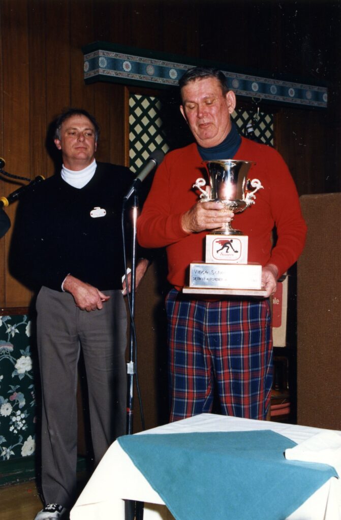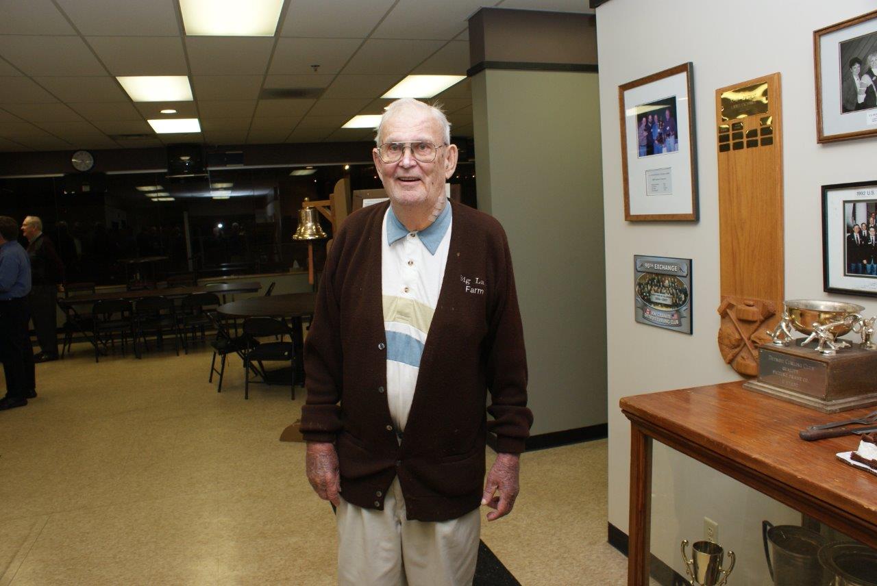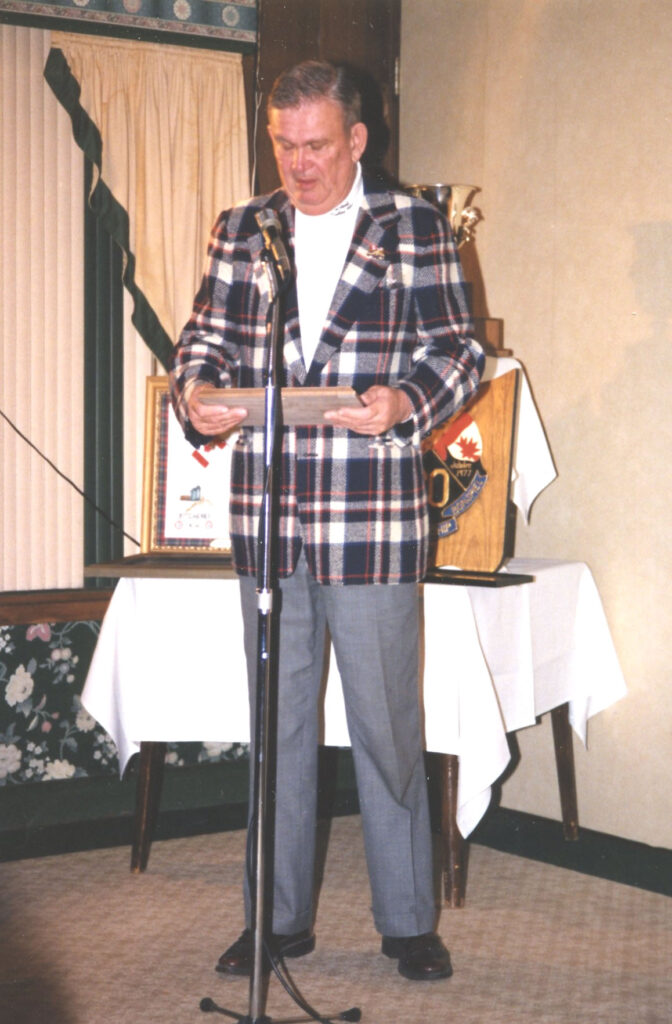 1988 March: Joe presents the Vince Scherer trophy in memory of a long time exchange member