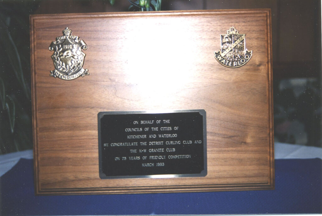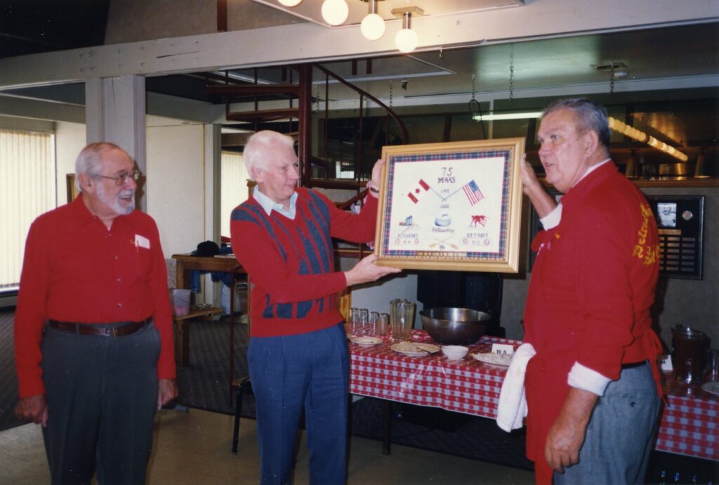 1992 November: Carl Les and Joe. Detroit presented a plaque o celebrate the 75th exchange
